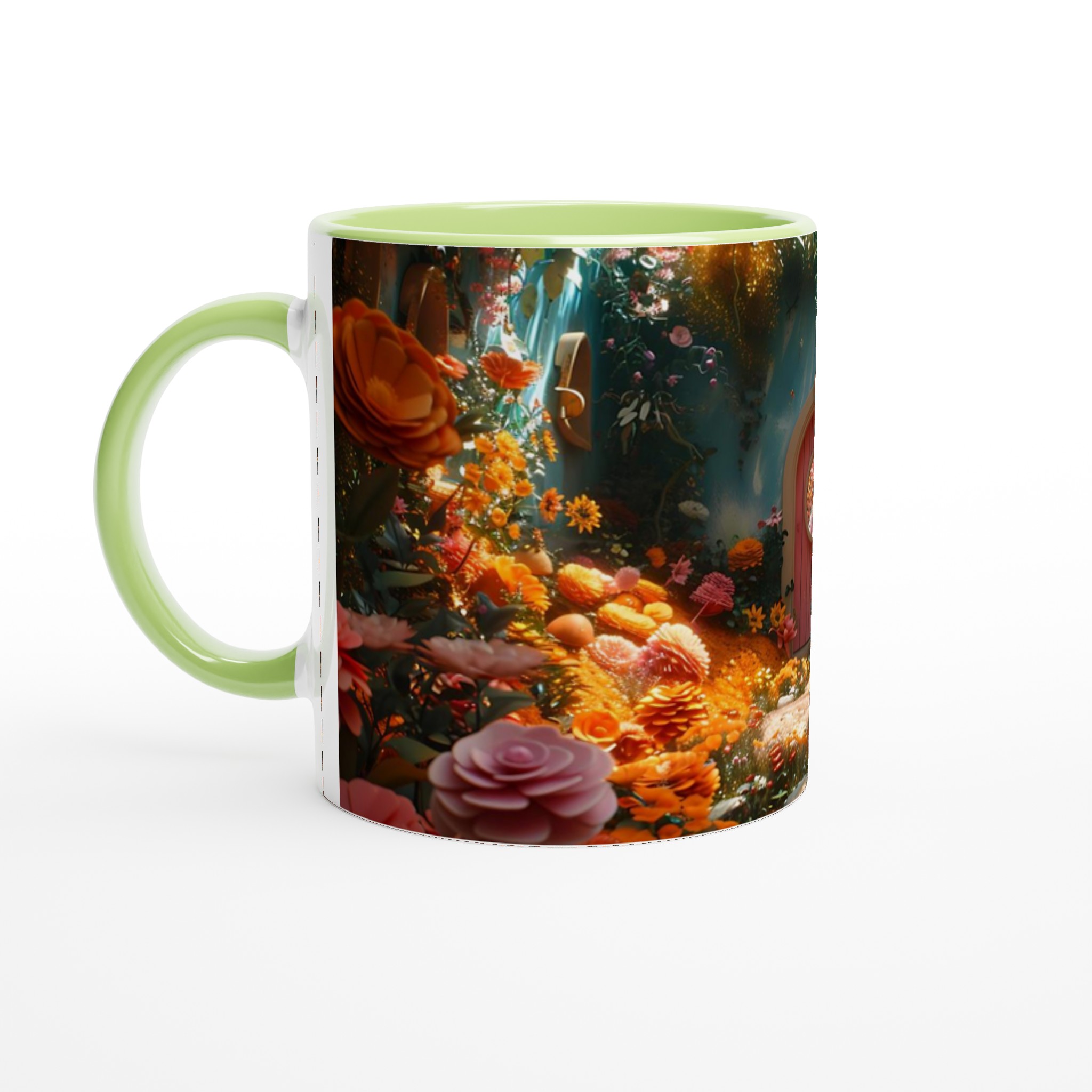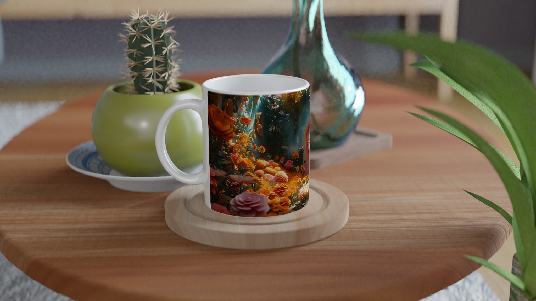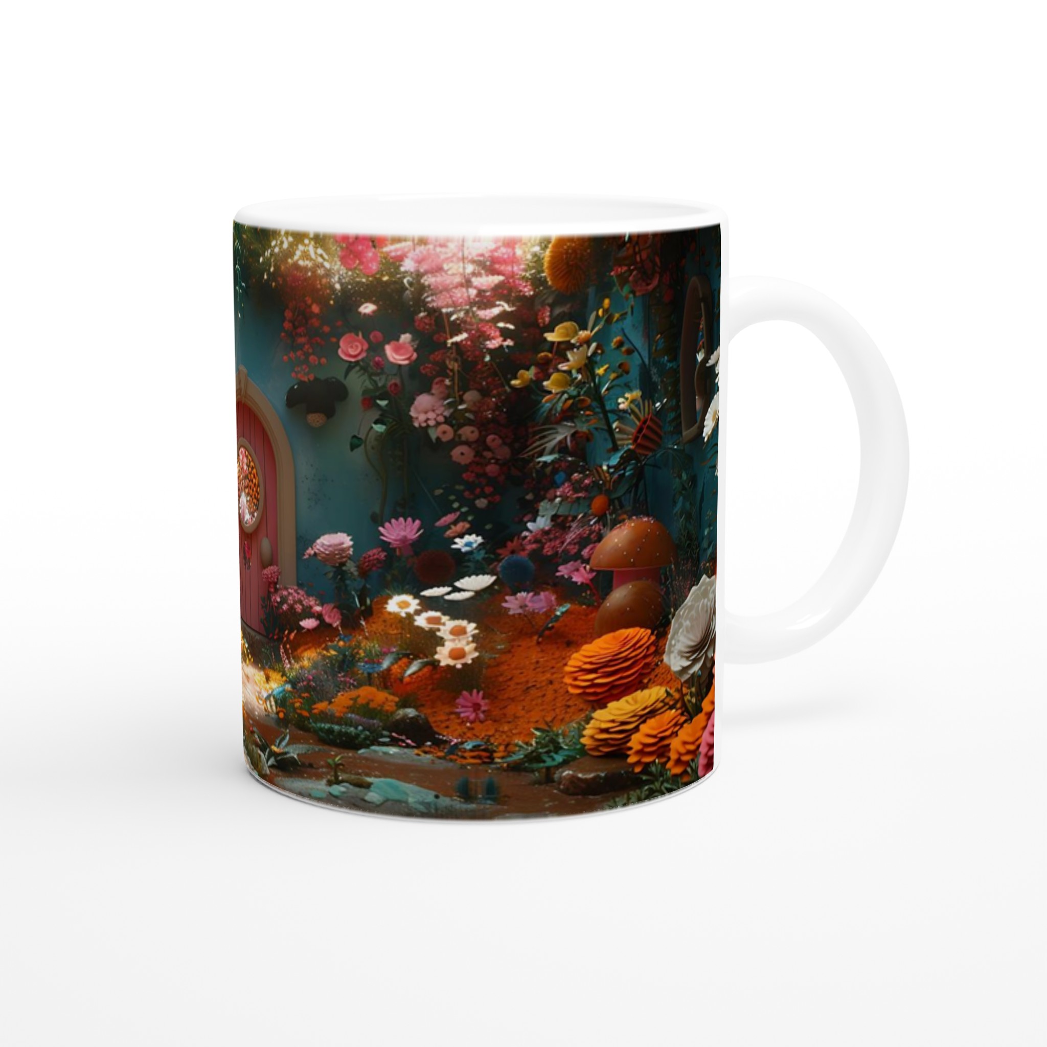 Stig in i en värld av förtrollning med denna magiska keramiska mugg, inspirerad av en hemlig trädgård där fantasins blommor aldrig vissnar. Med sin varma, inbjudande färgpalett och livfulla blomsterprakt blir den snabbt en vardagsfavorit. Perfekt för morgonkaffet, kvällens varma choklad eller när du bara vill njuta av en kopp te i en inspirerande atmosfär. Den blanka vita ytan framhäver trycken med klara och levande färger, som håller sig fina även efter många turer i mikron och diskmaskinen.