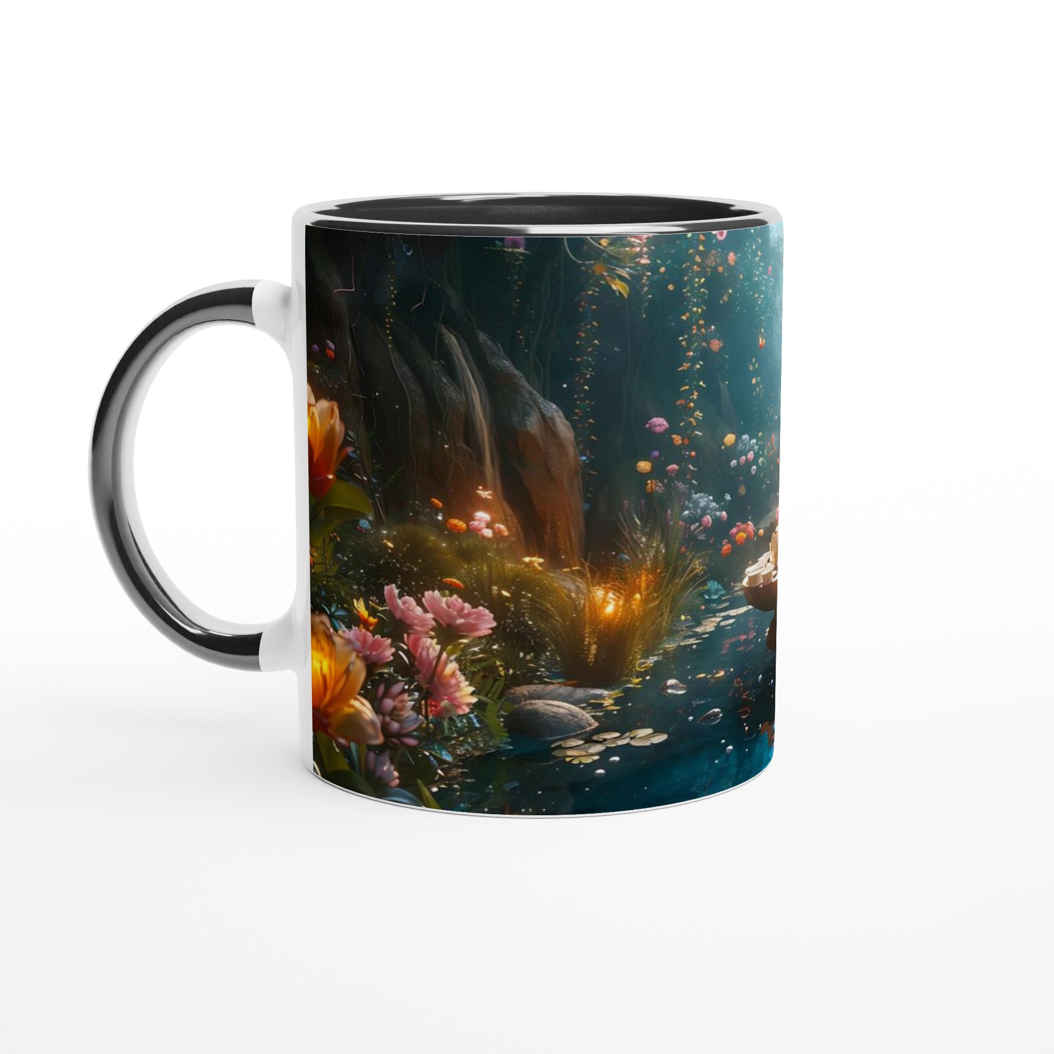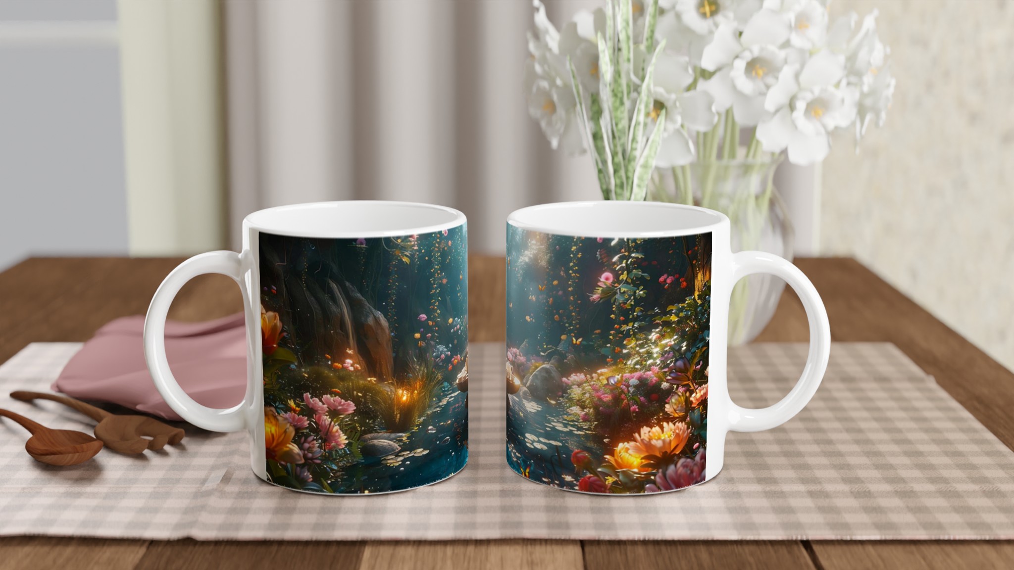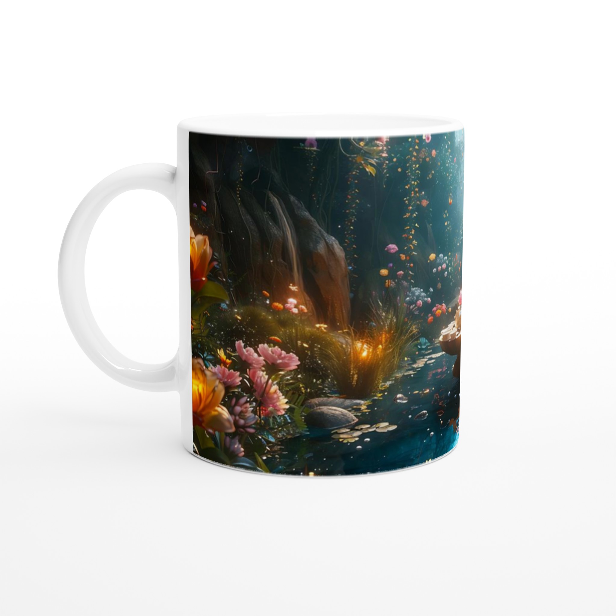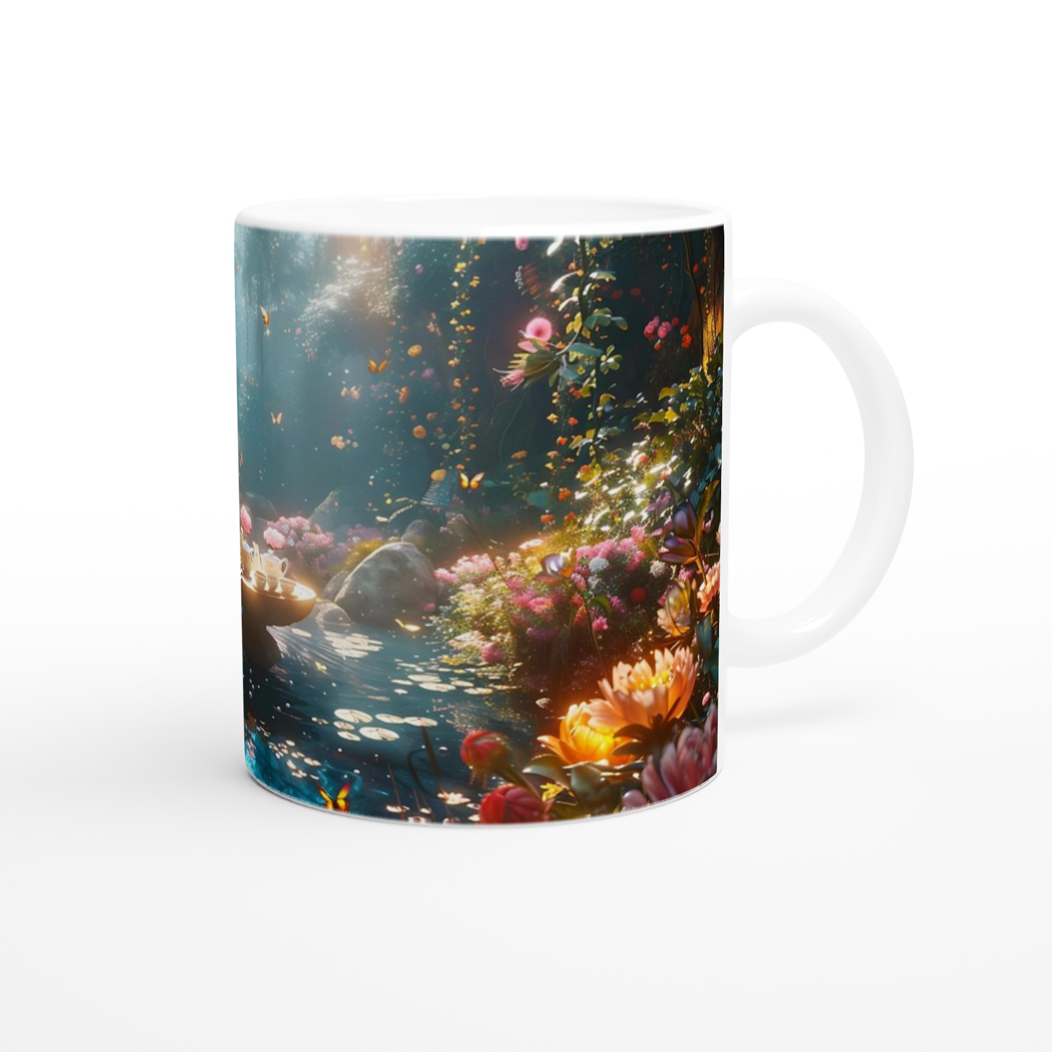 Stig in i en värld av förtrollning med vår keramiska mugg, prydd med ett motiv av en drömsk och magisk trädgård i full blom. Denna mugg är mer än bara en behållare för din dryck; den är en daglig påminnelse om skönhet och fantasi, perfekt för att förgylla ditt morgonkaffe, kvällens varma choklad eller när du bara vill njuta av en kopp te i lugn och ro.