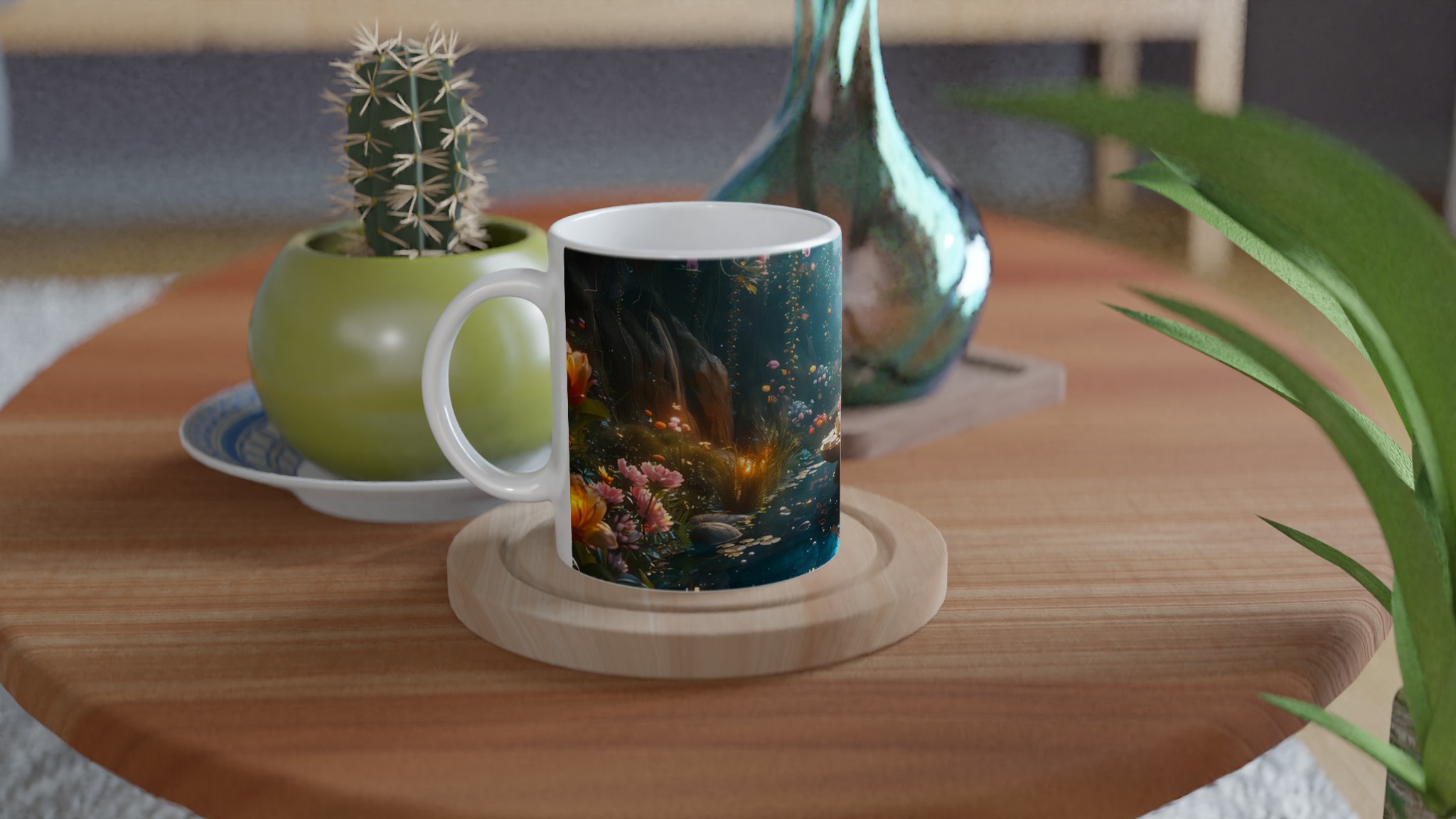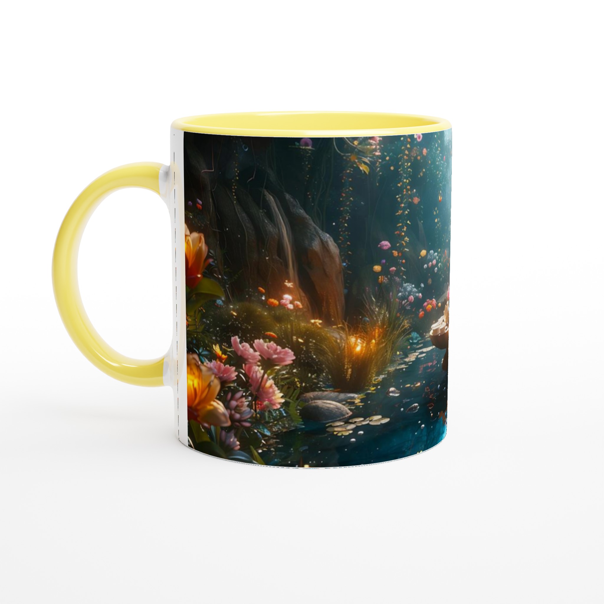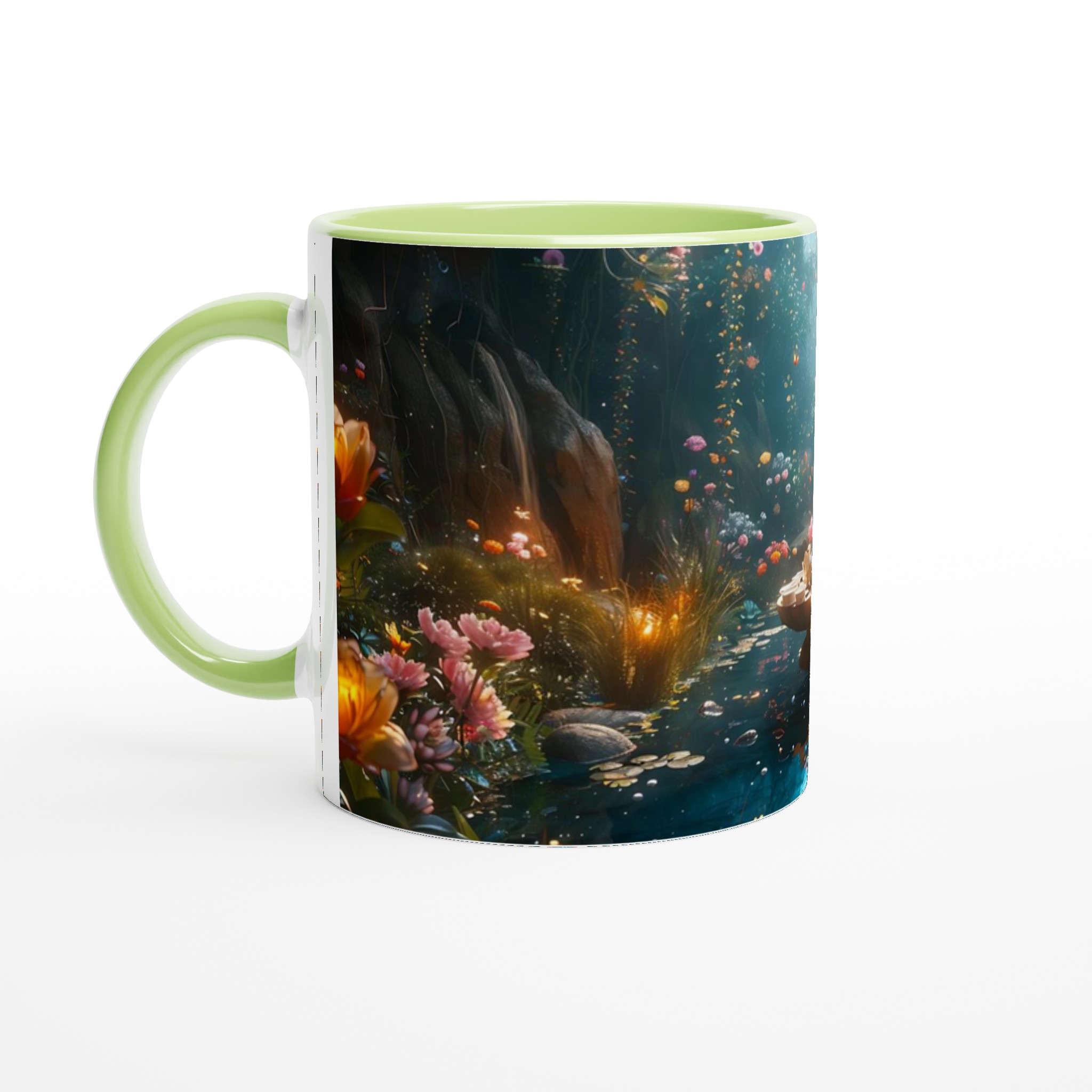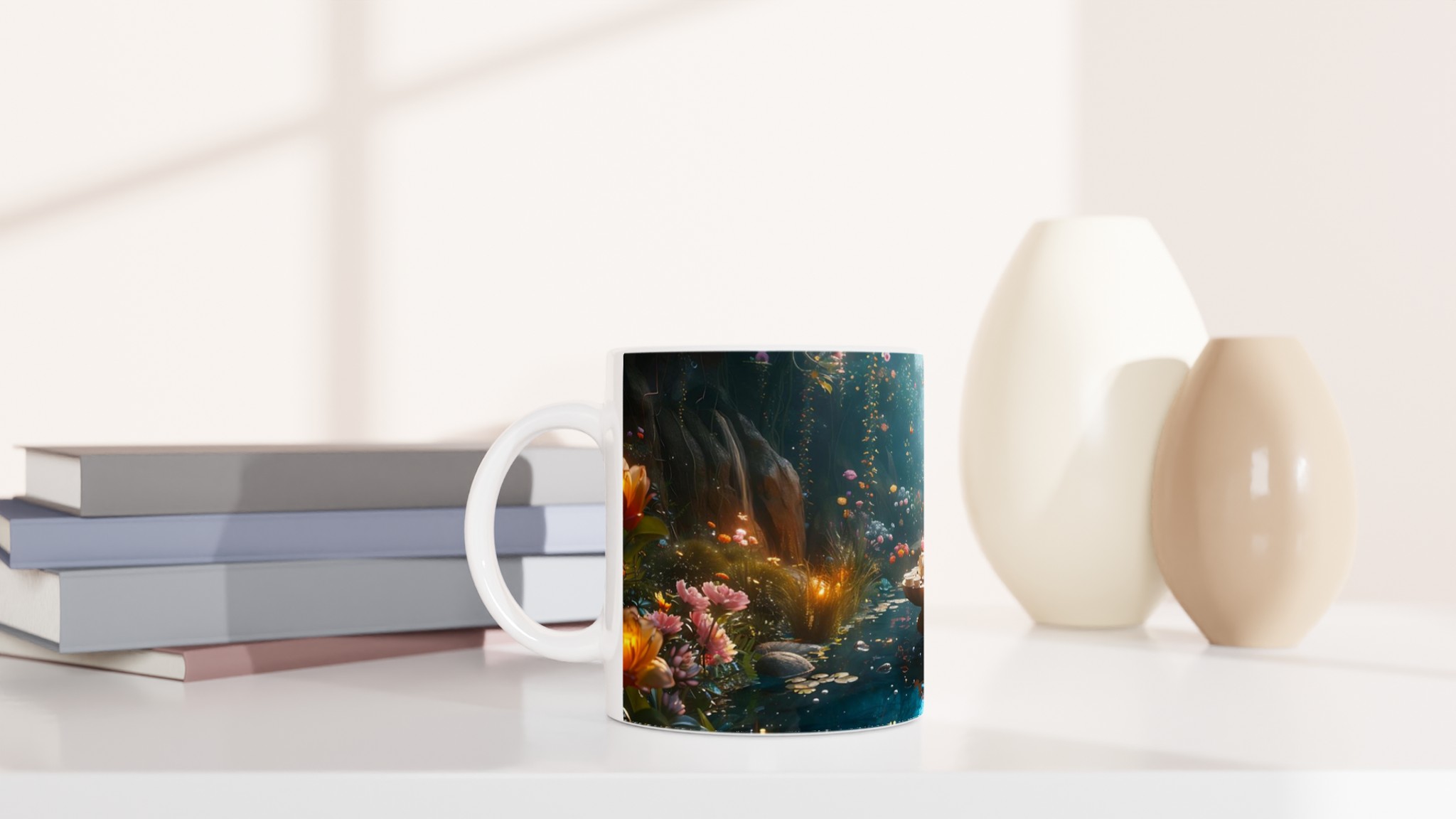 Stig in i en värld av förtrollning med vår keramiska mugg, prydd med ett motiv av en drömsk och magisk trädgård i full blom. Denna mugg är mer än bara en behållare för din dryck; den är en daglig påminnelse om skönhet och fantasi, perfekt för att förgylla ditt morgonkaffe, kvällens varma choklad eller när du bara vill njuta av en kopp te i lugn och ro.