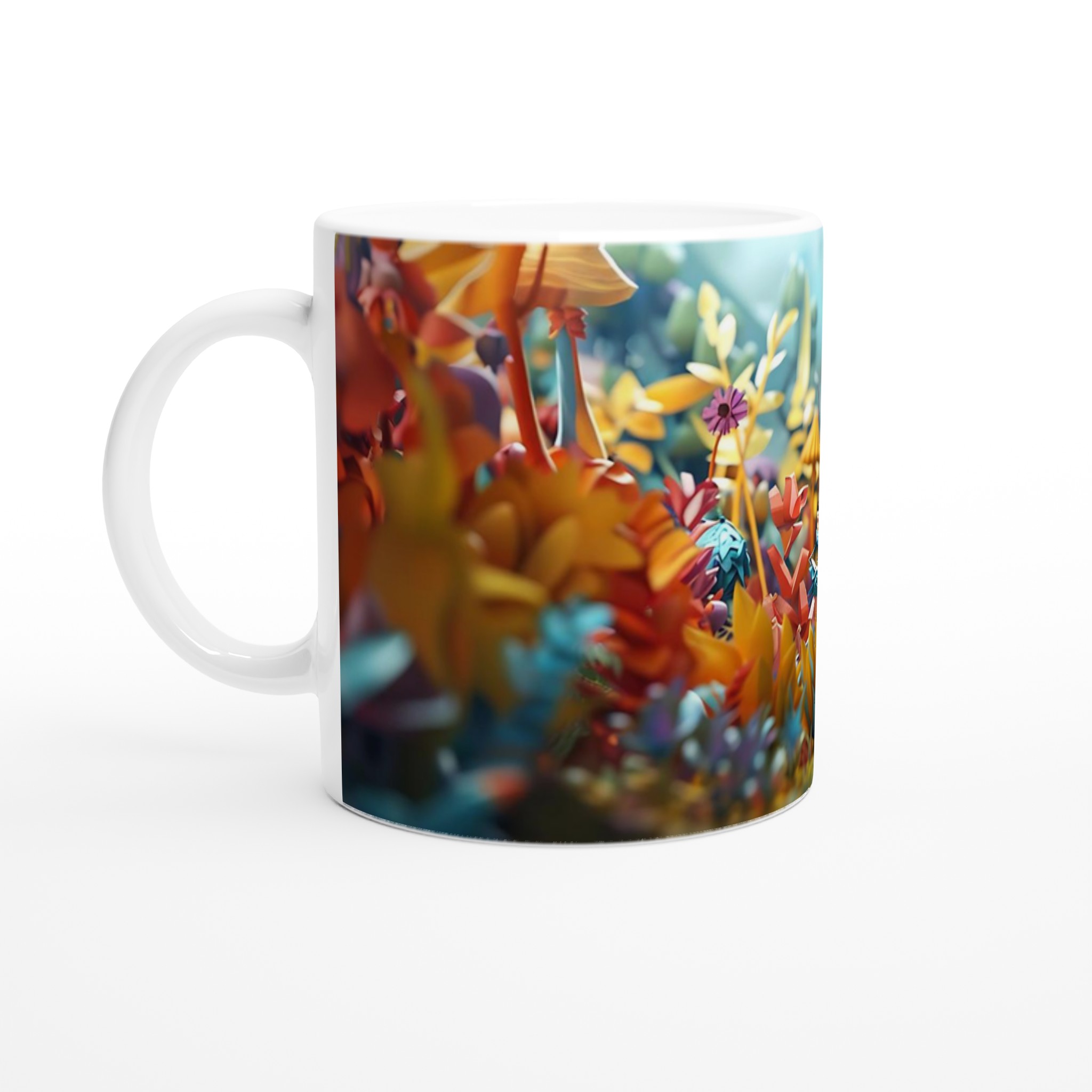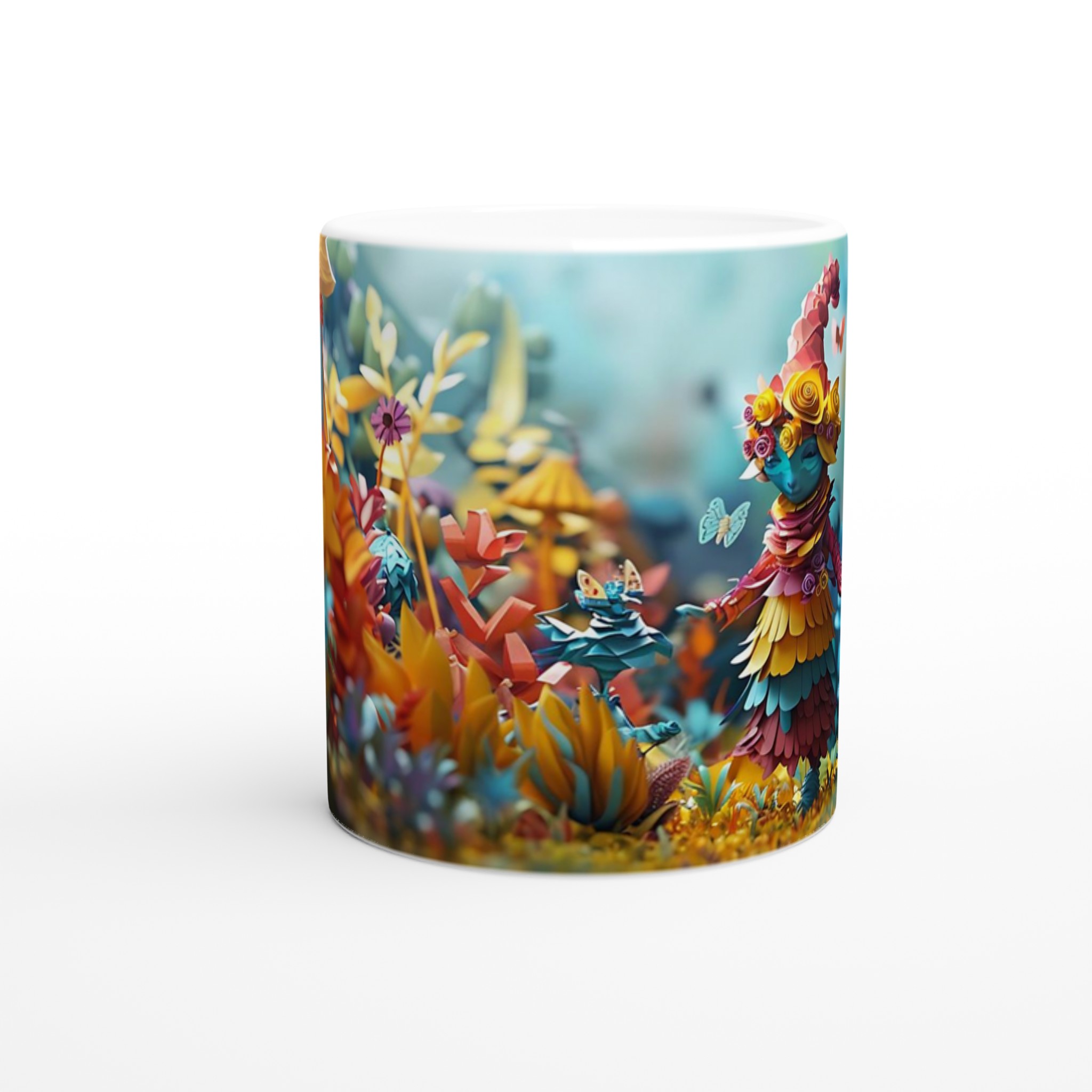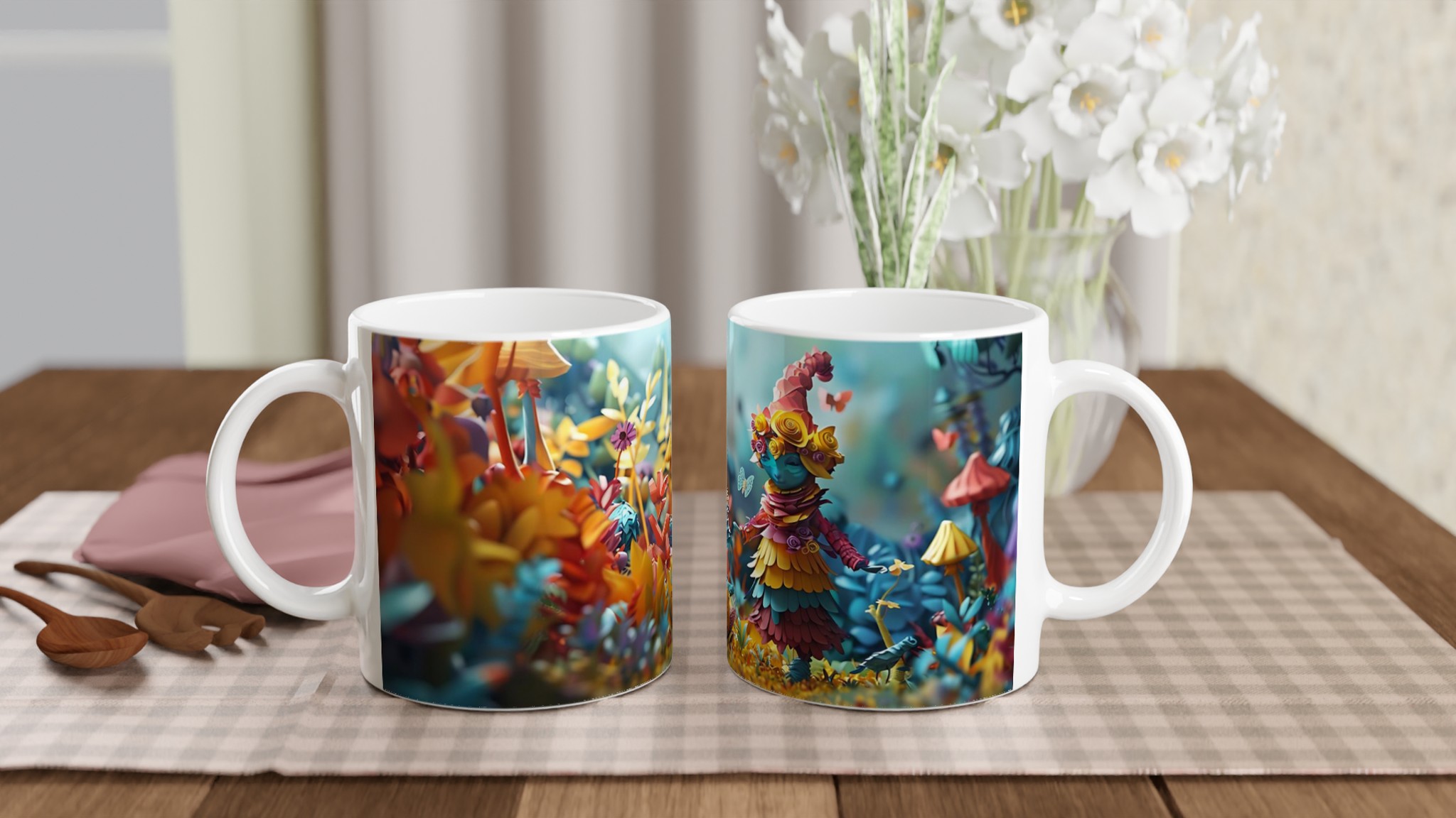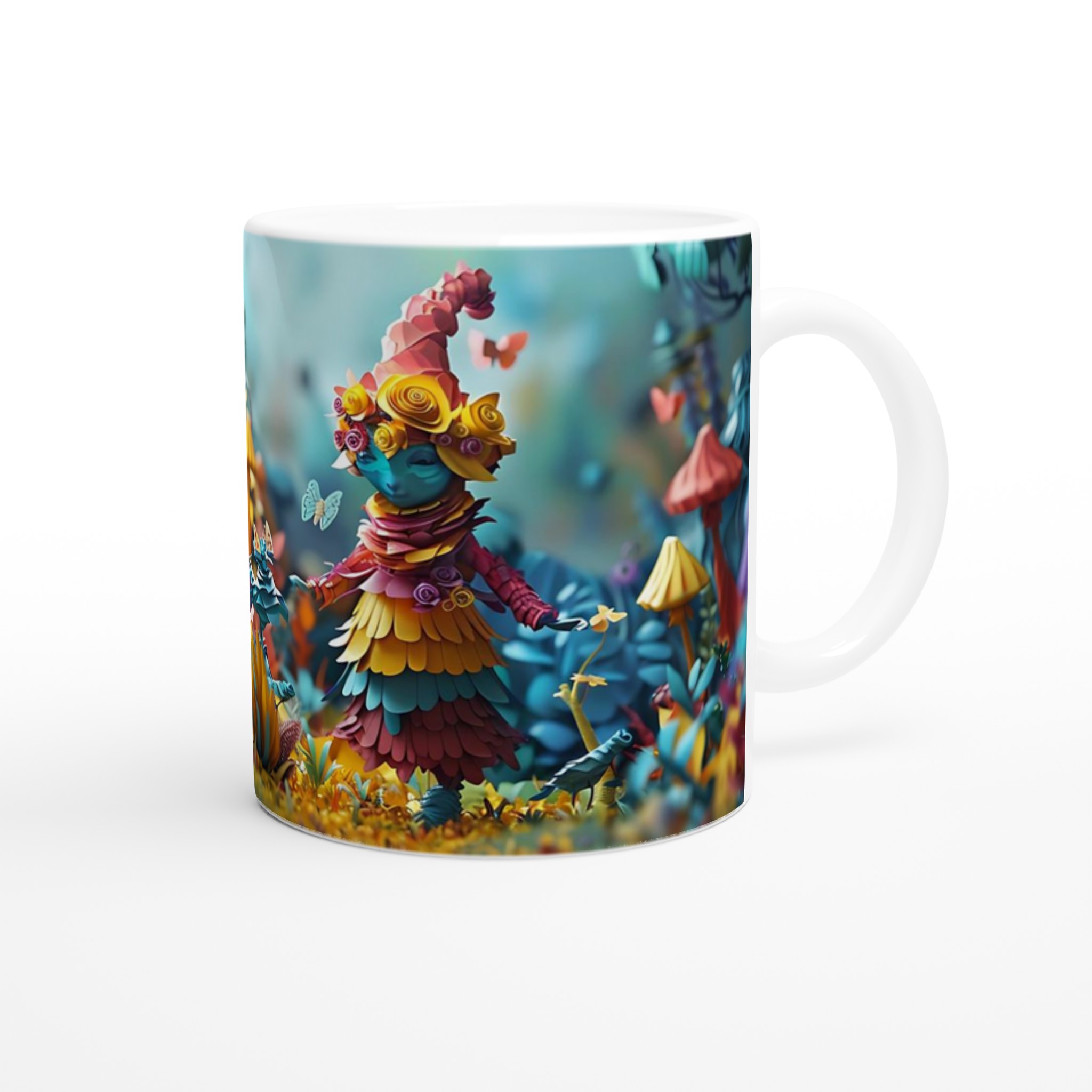 Väck din inre fantasi varje morgon med vår Förtrollad Trädgård keramiska mugg. Låt den levande designen, inspirerad av en sagolik värld fylld med mystiska varelser och frodig flora, förgylla dina stunder. Den här stilrena keramiska muggen blir snabbt en vardagsfavorit. Perfekt för morgonkaffet, kvällens varma choklad eller när du bara vill njuta av en kopp te. Den blanka vita ytan gör att trycken framhävs med klara och levande färger, som håller sig fina även efter många turer i mikron och diskmaskinen.