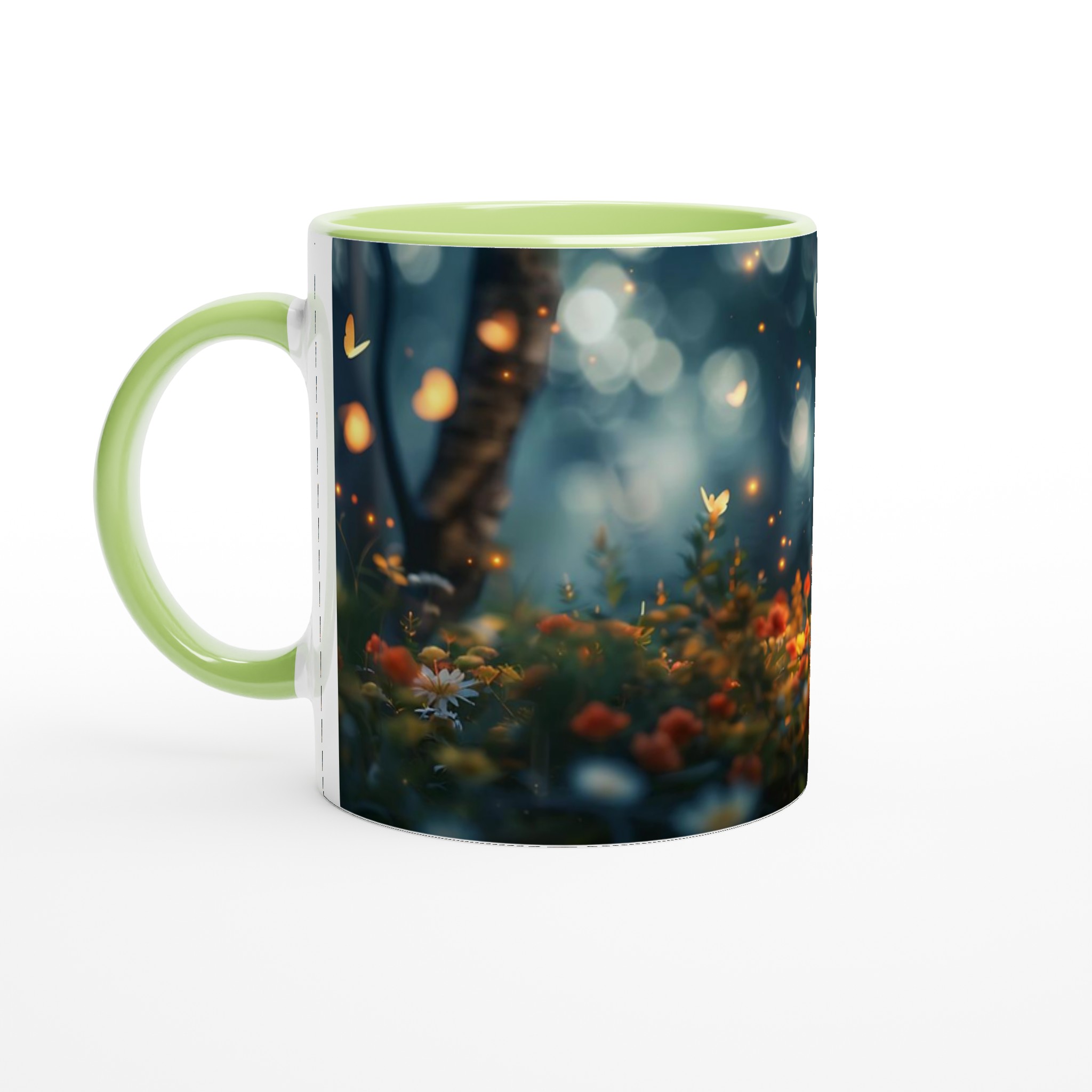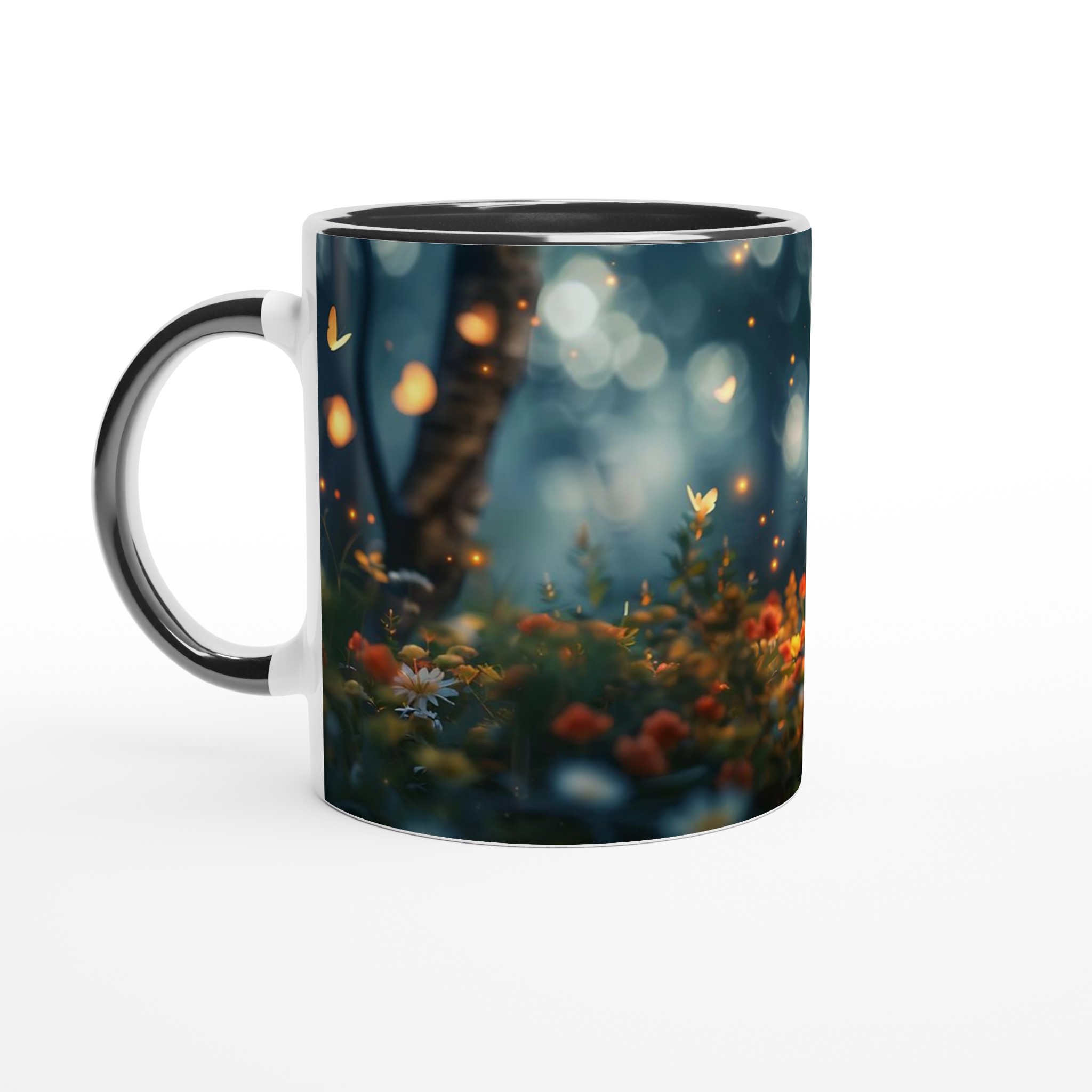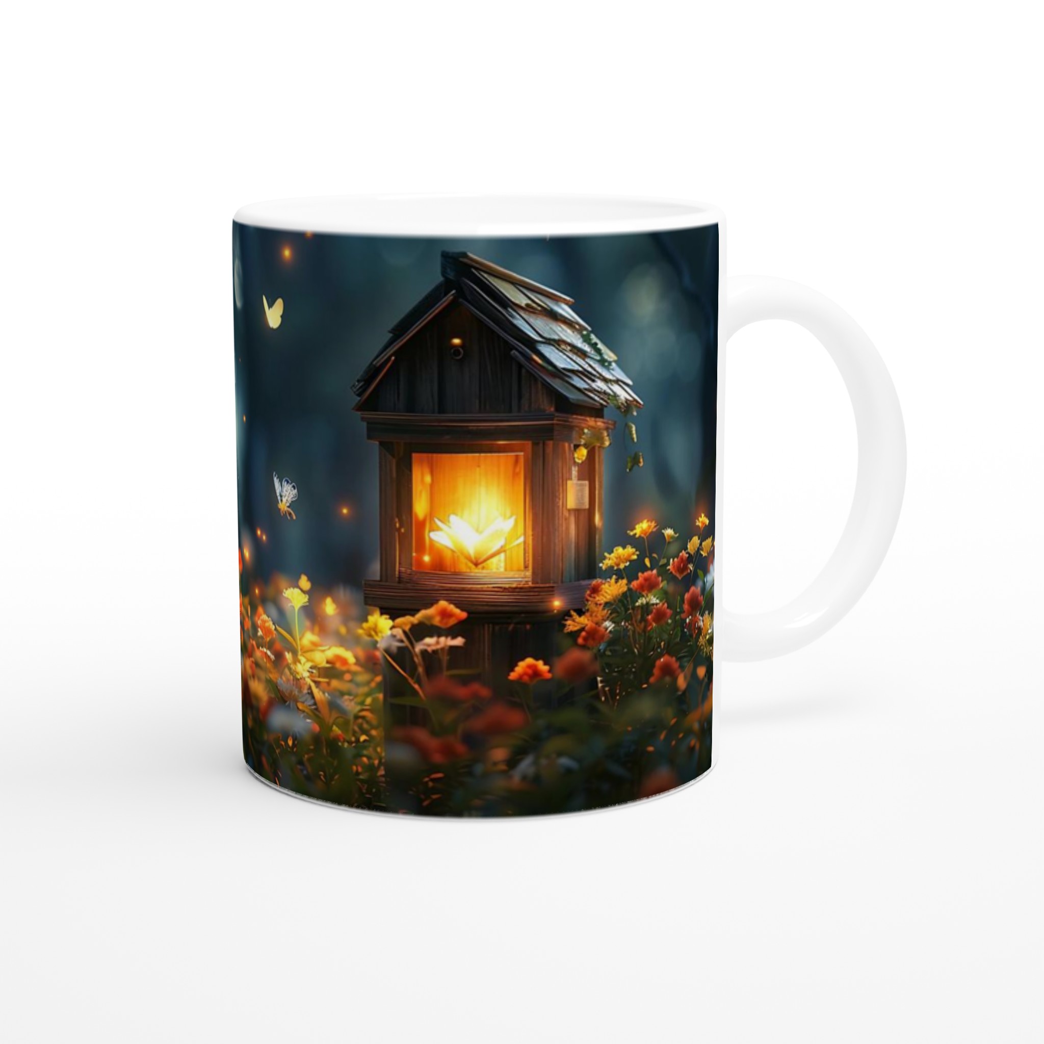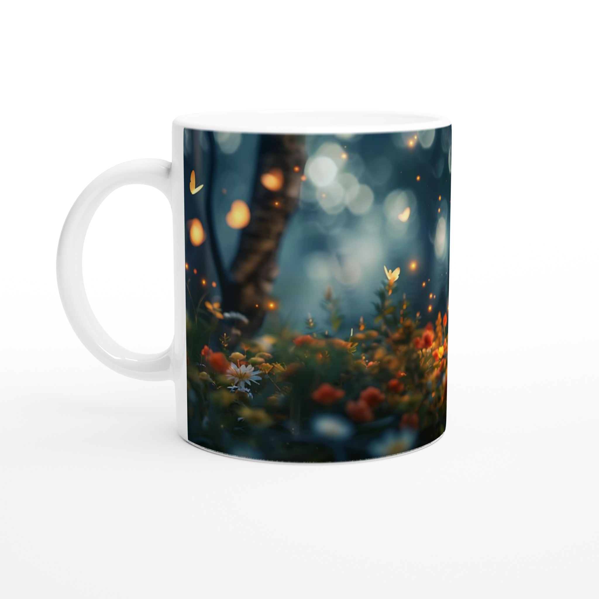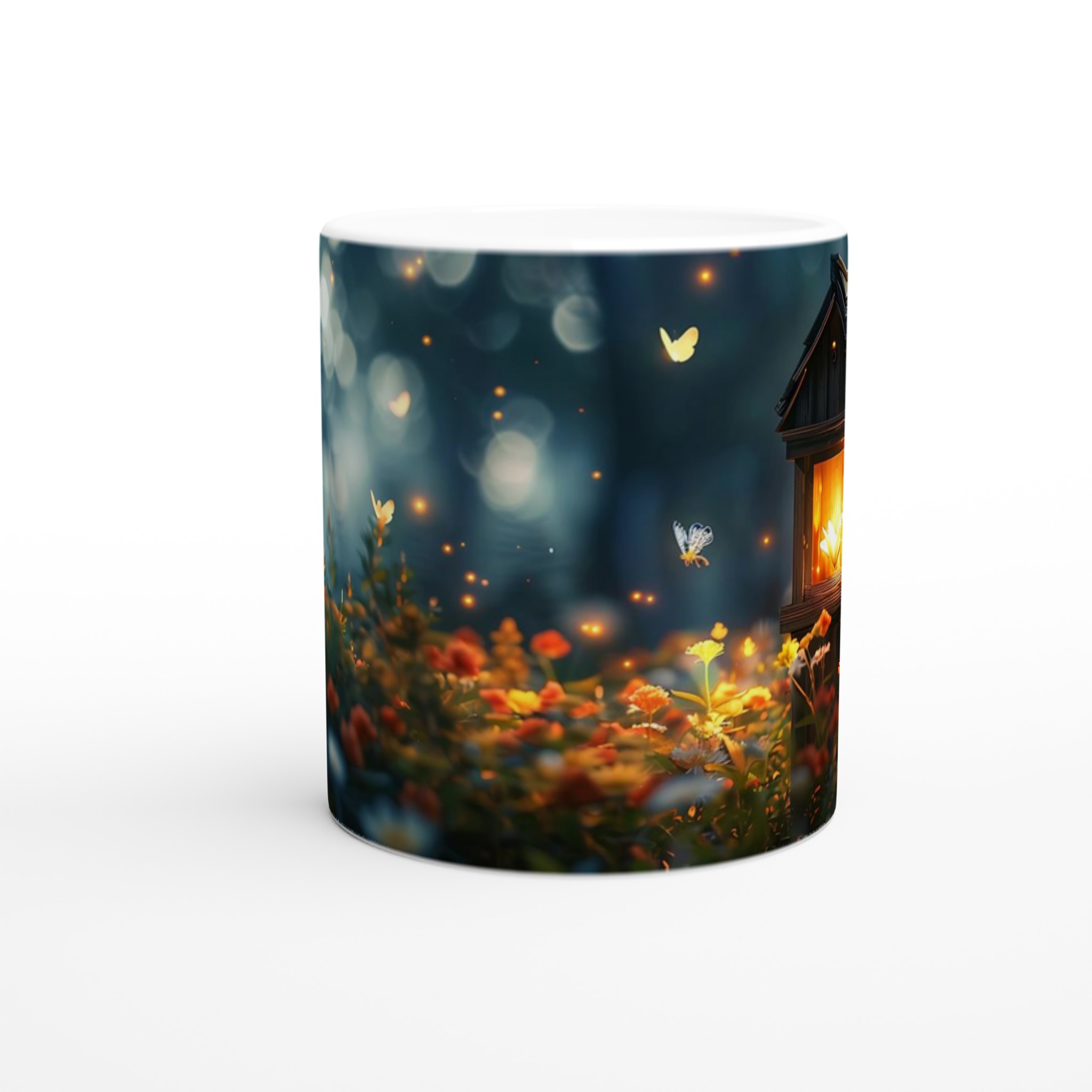 Fånga magin från en hemlig trädgård med denna förtrollande keramiska mugg. Dess design för tankarna till en mystisk skogsdunge, upplyst av svävande ljus och fjärilar, där varje sip blir en stund av lugn och undran. Den blanka vita ytan låter detta drömska motiv framträda med otrolig klarhet och levande färger, en skönhet som står sig genom otaliga mikrovågsugns- och diskmaskinsturer.