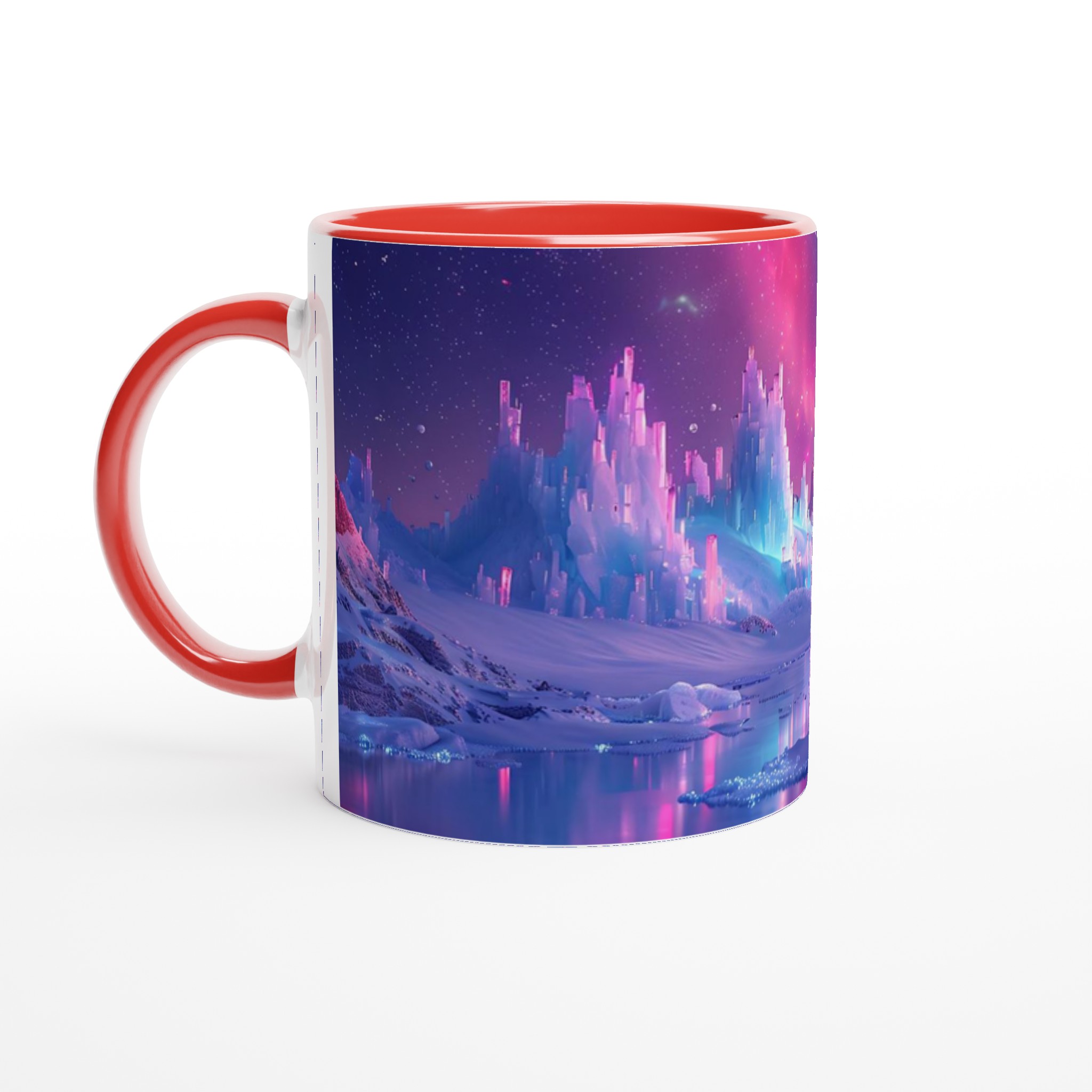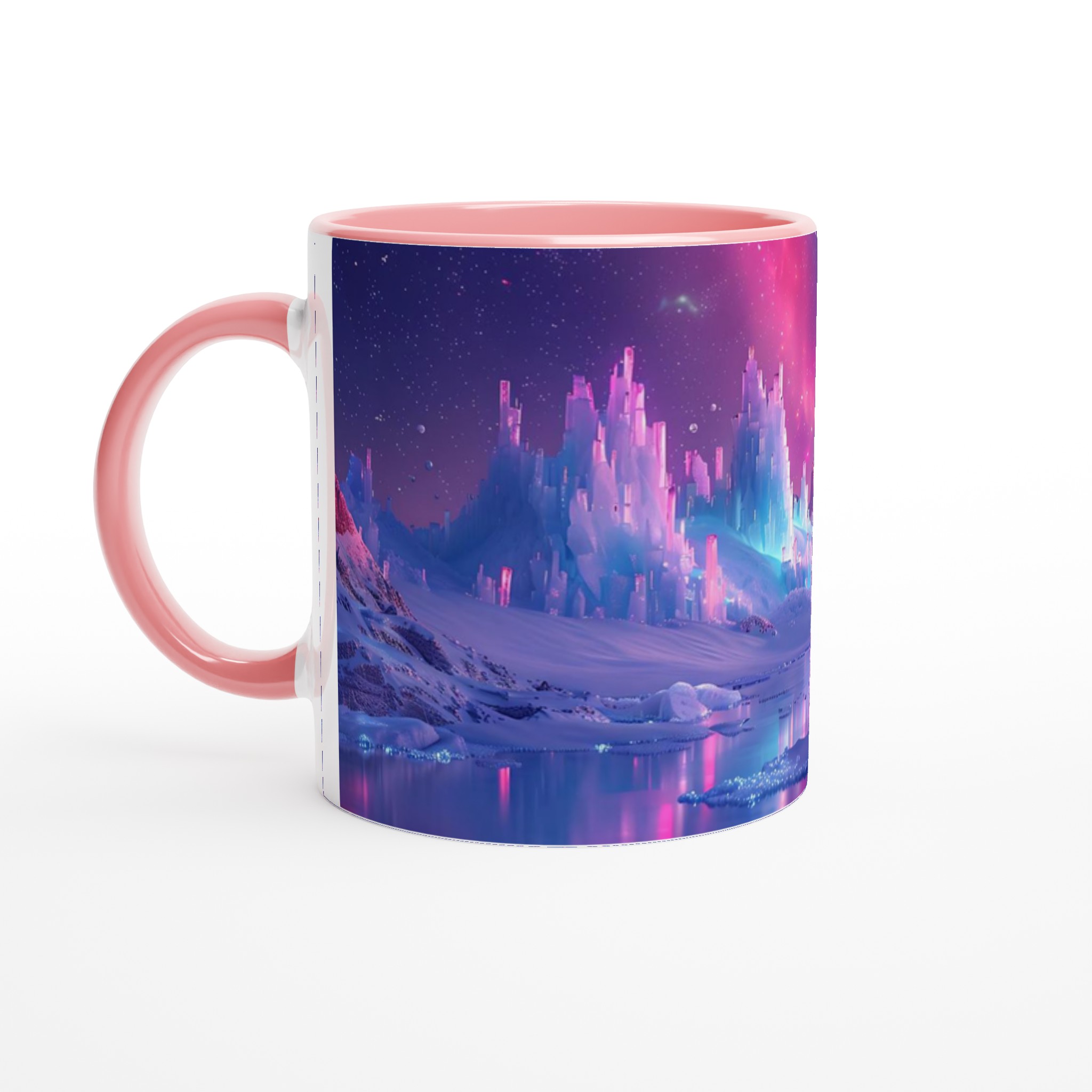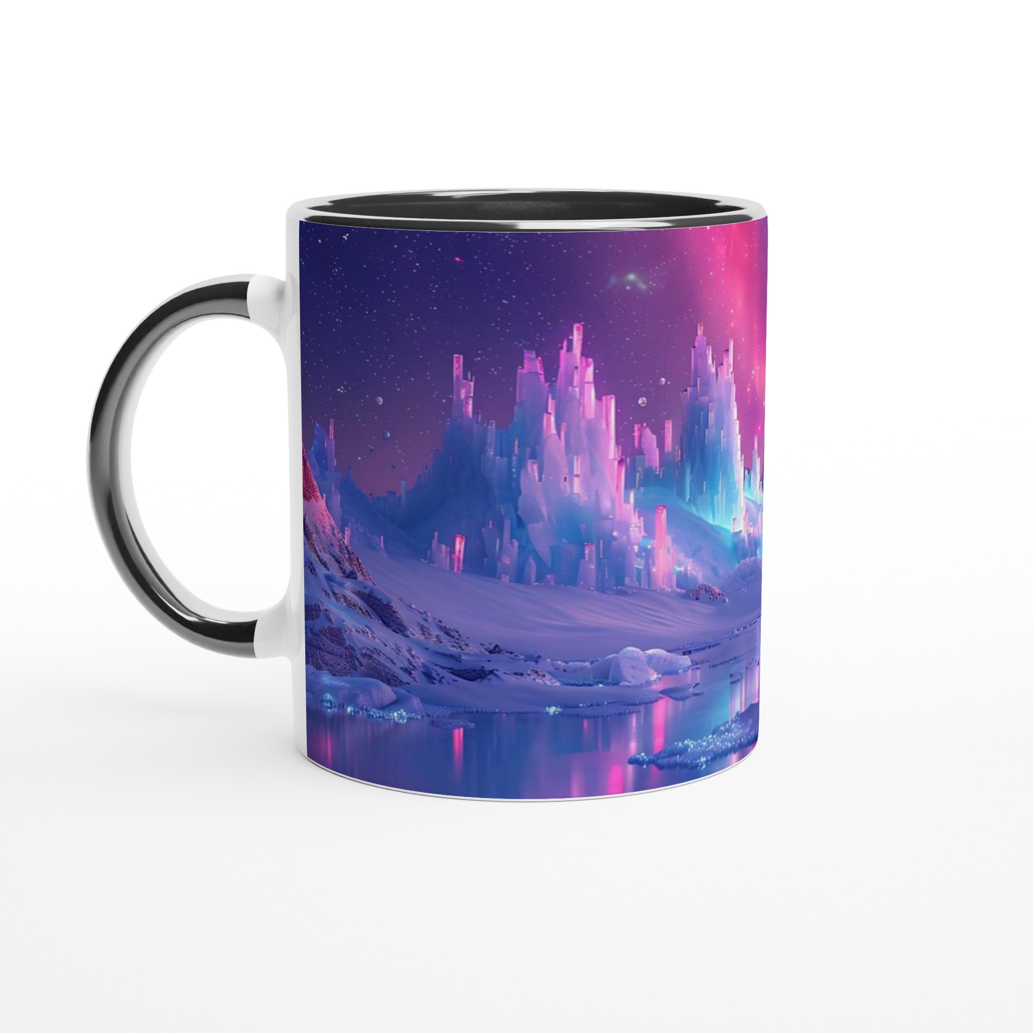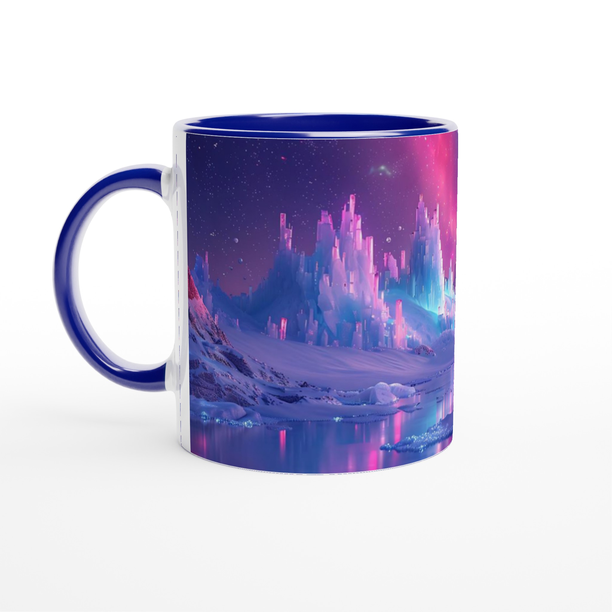 Stig in i en förtrollad vintervärld varje gång du tar en klunk med denna magiska keramiska mugg. Med en design inspirerad av ett drömskt, snöigt landskap badat i strålande magenta och blå nyanser, förvandlar denna mugg varje fikastund till en sagolik upplevelse. Perfekt för morgonkaffet, kvällens varma choklad eller när du bara vill njuta av en kopp te medan du drömmer dig bort till kristallpalats och norrskenshimlar.