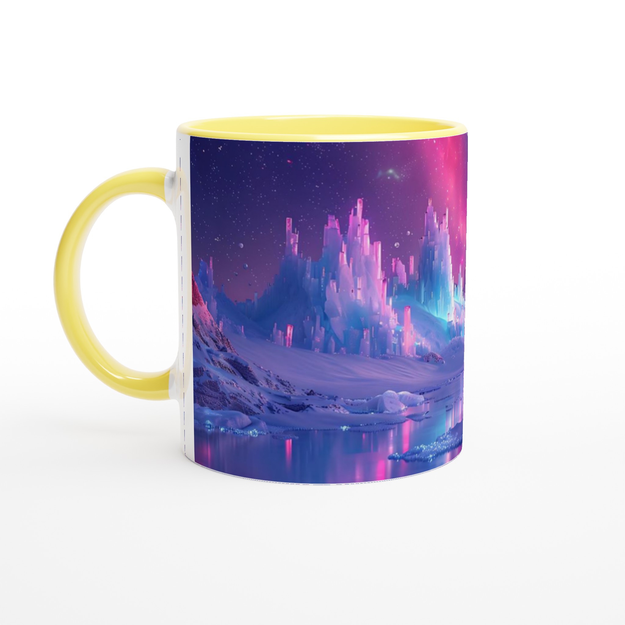 Den blanka ytan fångar de levande färgerna och framhäver varje detalj av det eteriska landskapet, vilket säkerställer att trycket behåller sin glans och intensitet, även efter otaliga turer i mikron och diskmaskinen. Välj den färg som bäst speglar din inre vinterdröm – oavsett om det är klassiskt vitt, lekfullt gult, mjukt rosa, lugnande grönt, passionerat rött, elegant svart eller rofyllt blått. Denna mugg är inte bara en praktisk följeslagare, utan också en uppskattad present som garanterat sprider glädje och förundran.