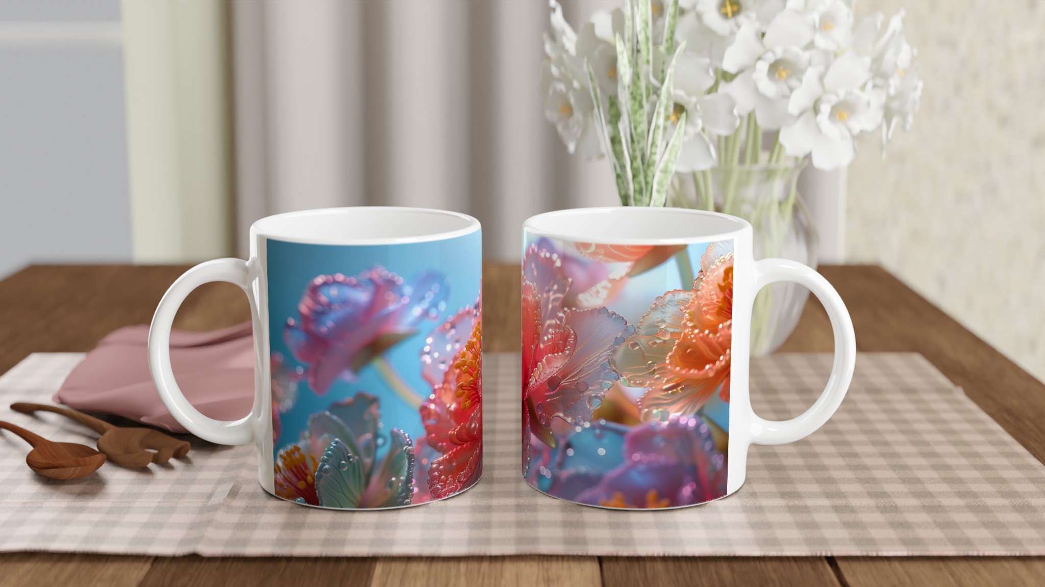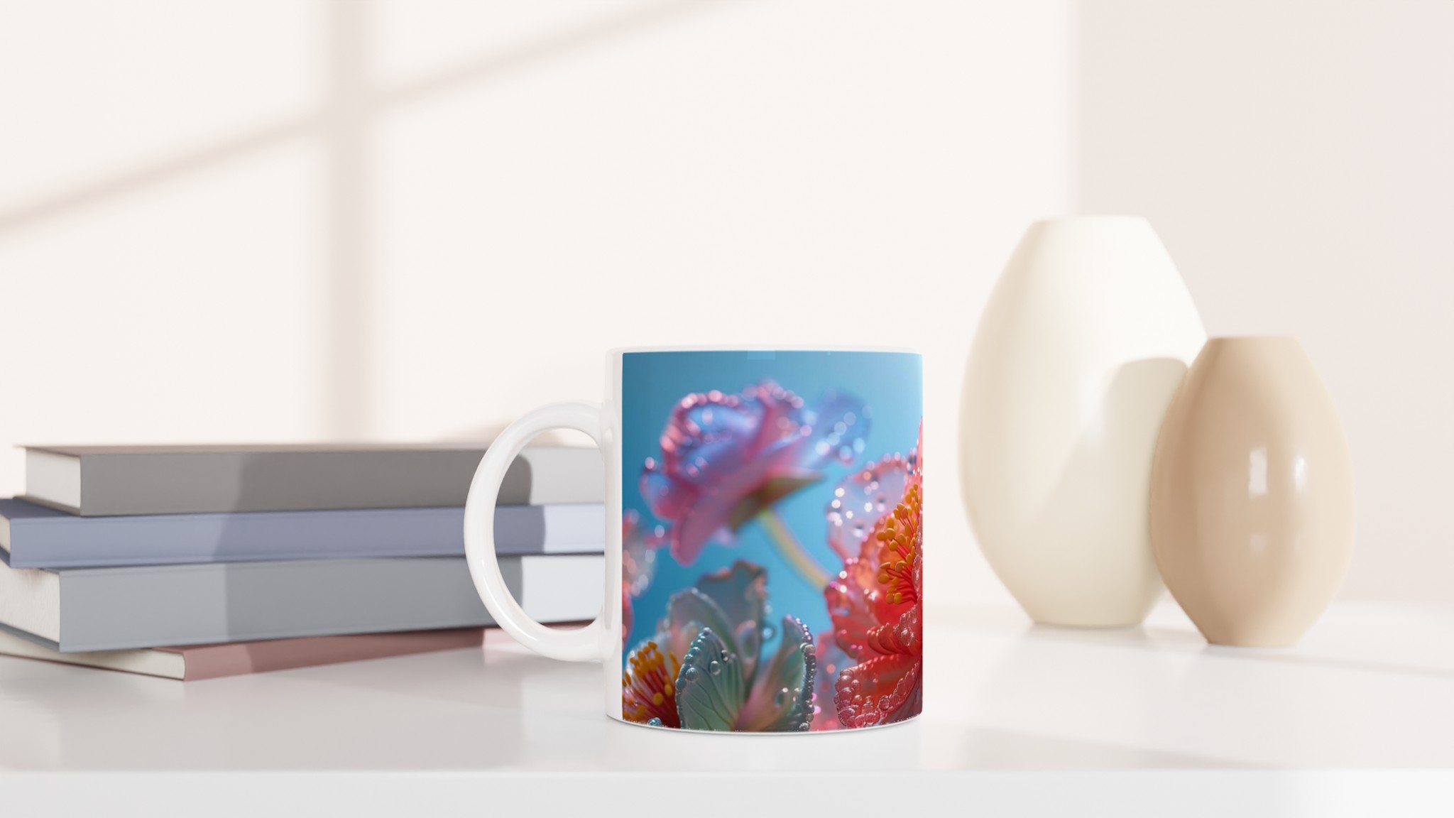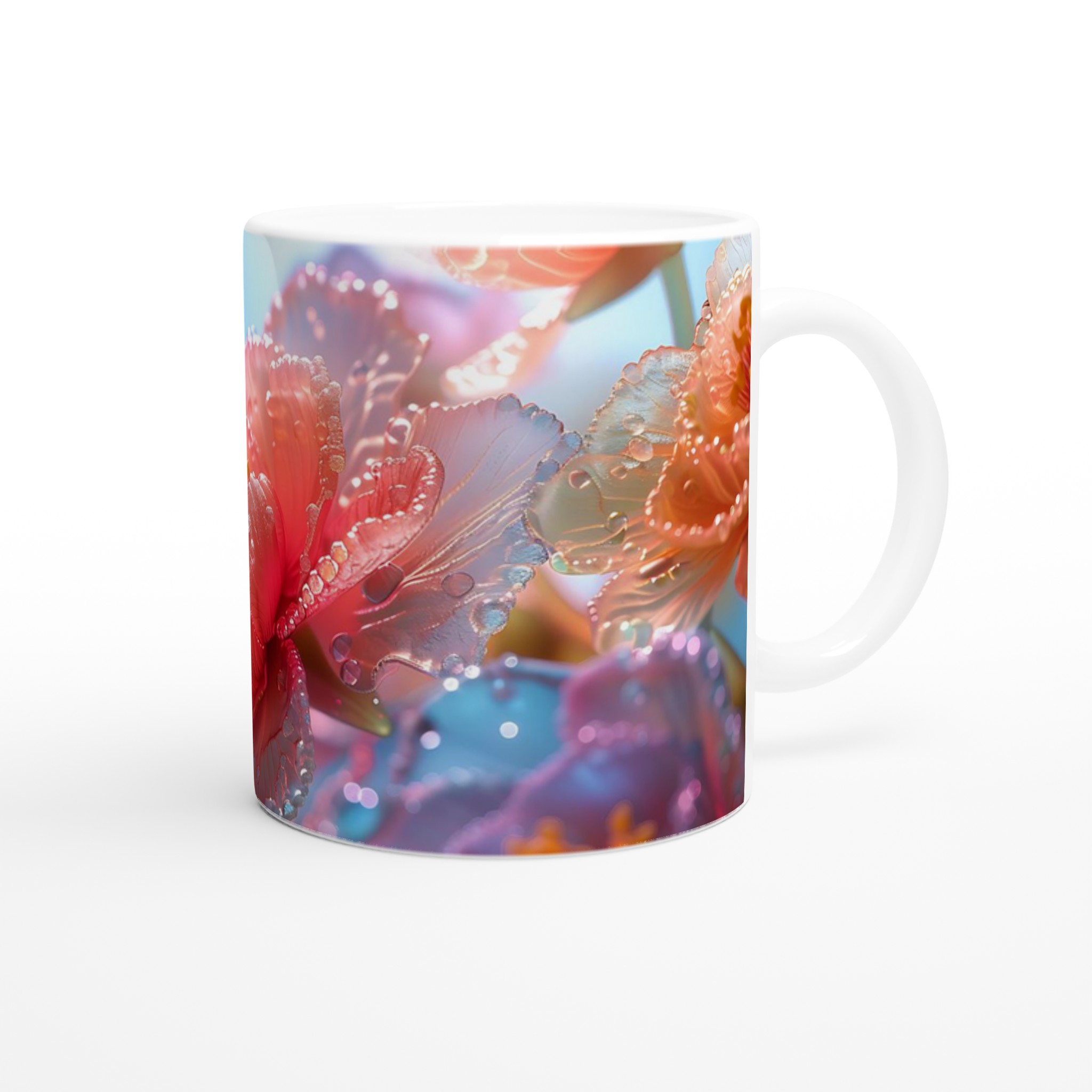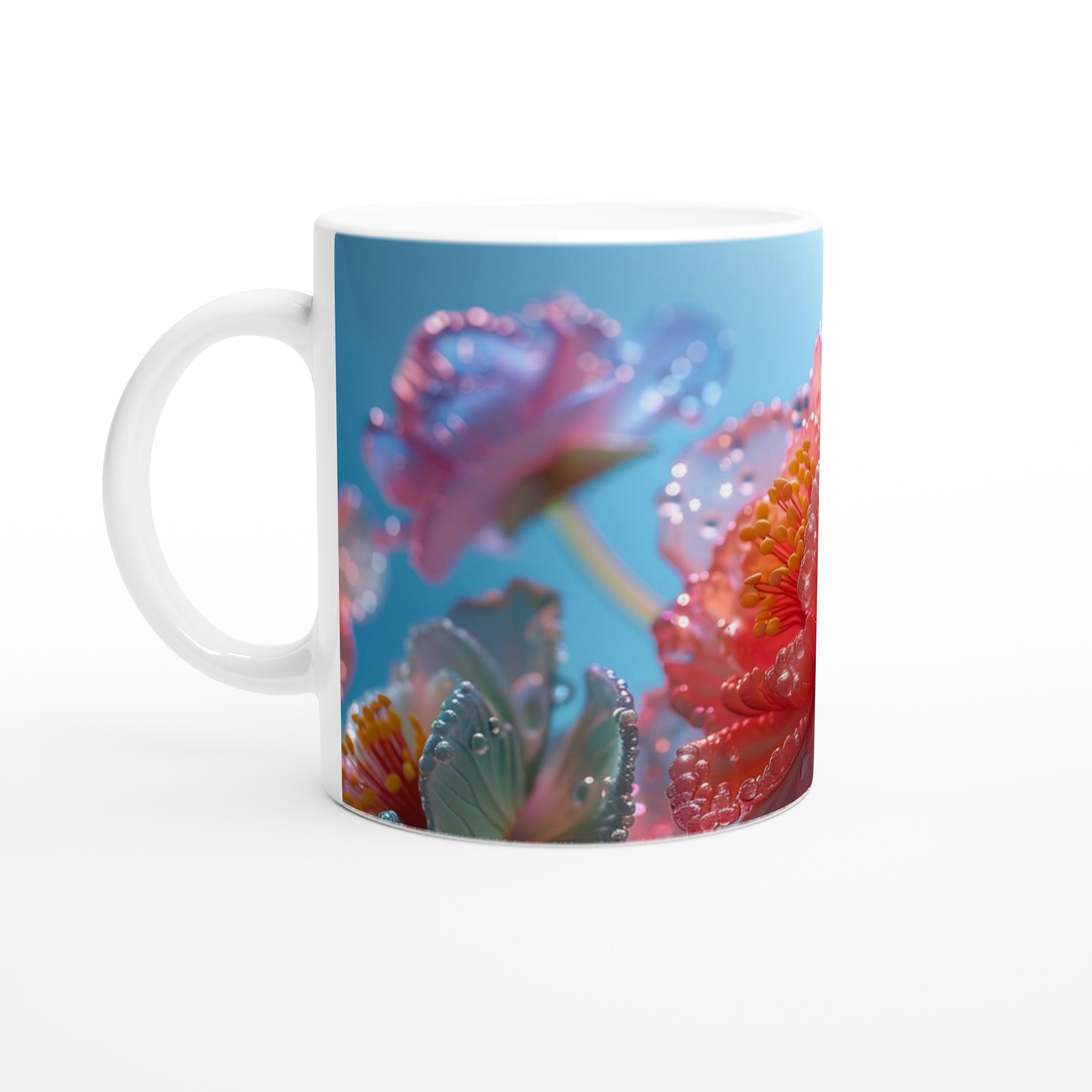 Lyft din vardagsrutin med vår förtrollande Keramiska Mugg, inspirerad av bildens drömska och levande blomsterprakt. Denna mugg förvandlar varje sipp till en stund av lugn och skönhet, precis som att beskåda en trädgård badad i daggigt, mjukt ljus. Med sin blanka yta framhävs varje detalj med klara och levande färger, som håller sig fina även efter många turer i mikron och diskmaskinen, vilket gör den till en sann vardagsfavorit.