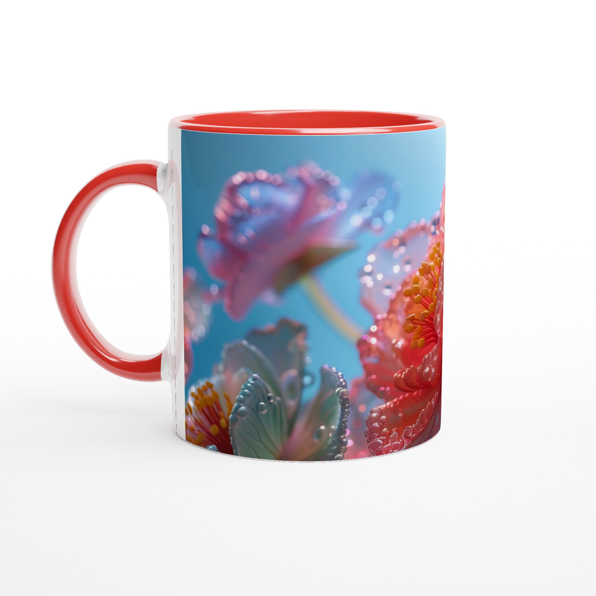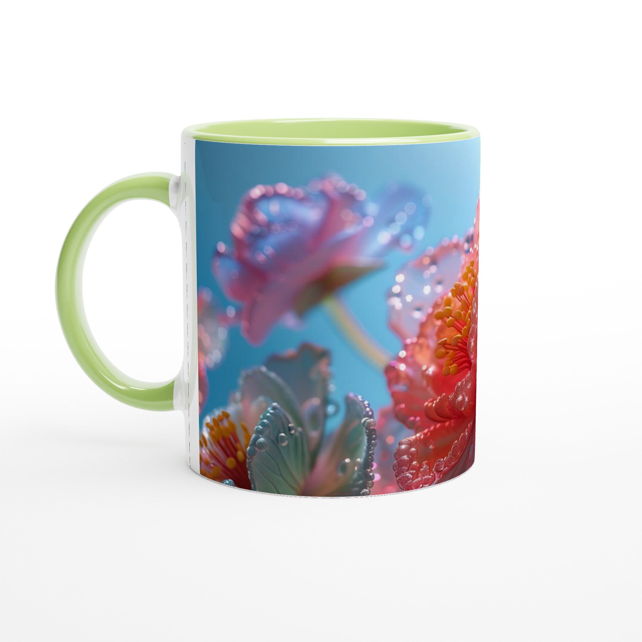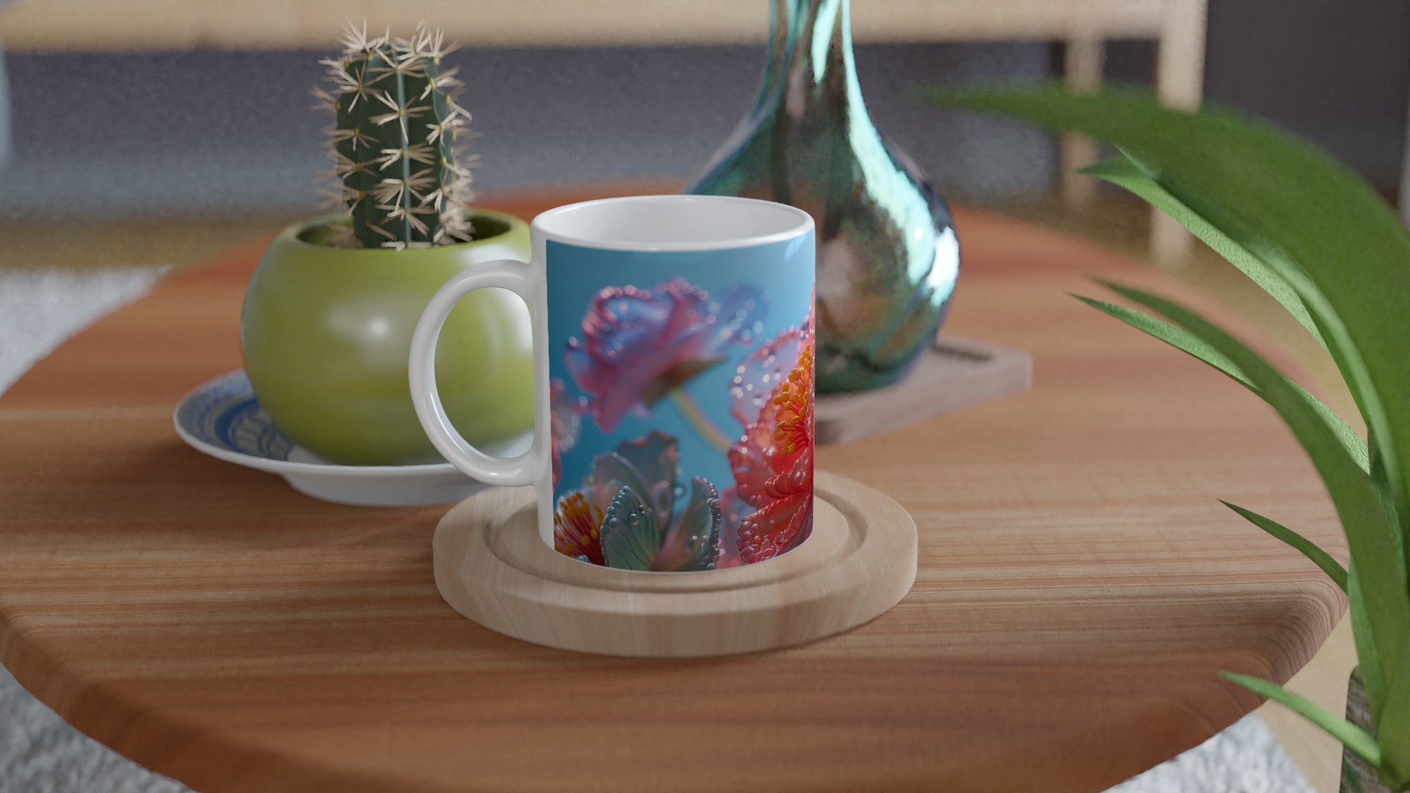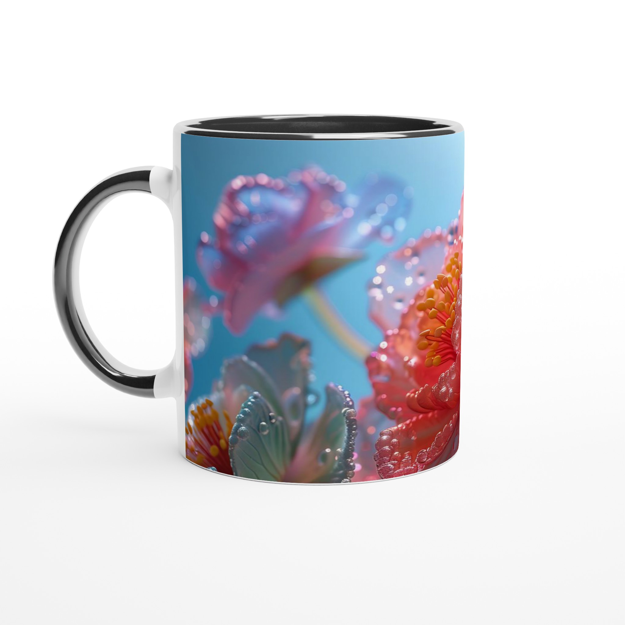 Lyft din vardagsrutin med vår förtrollande Keramiska Mugg, inspirerad av bildens drömska och levande blomsterprakt. Denna mugg förvandlar varje sipp till en stund av lugn och skönhet, precis som att beskåda en trädgård badad i daggigt, mjukt ljus. Med sin blanka yta framhävs varje detalj med klara och levande färger, som håller sig fina även efter många turer i mikron och diskmaskinen, vilket gör den till en sann vardagsfavorit.