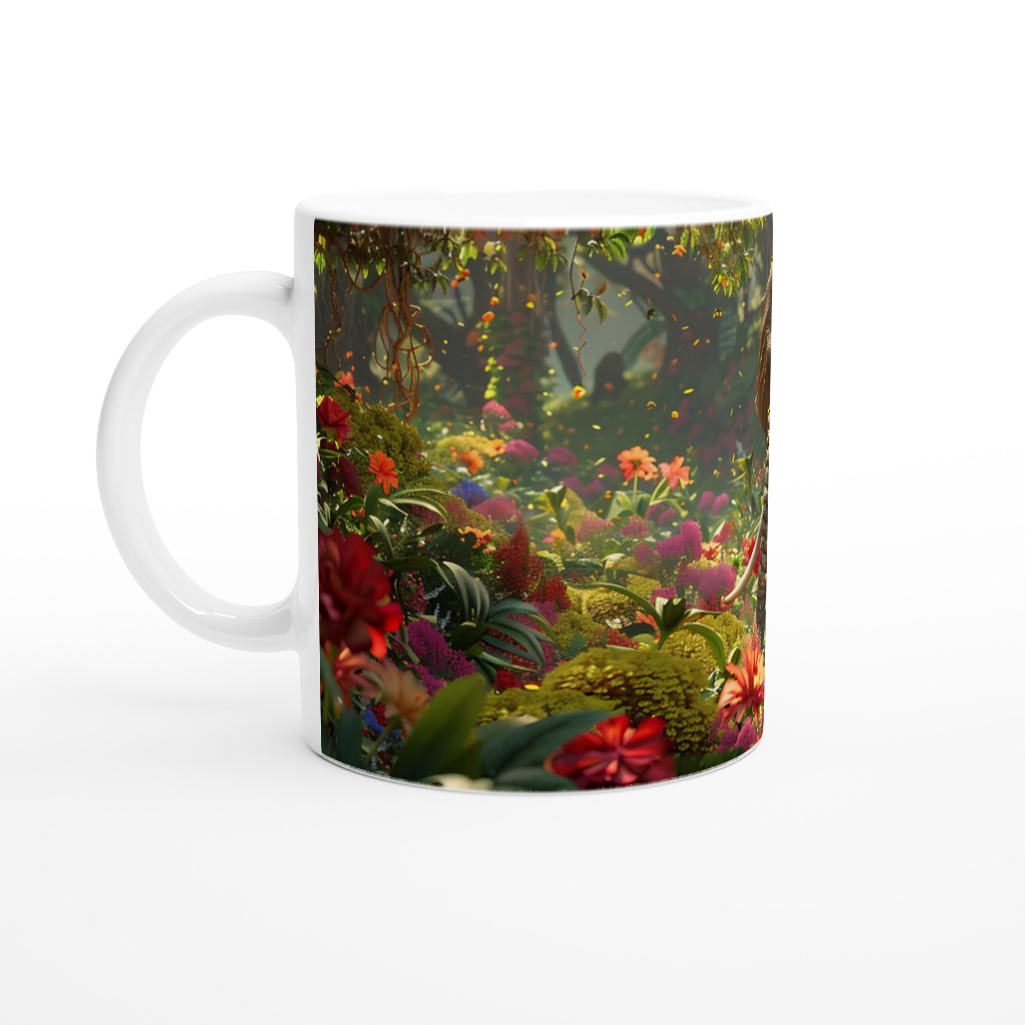 Lyft varje kaffestund till en magisk resa med vår premium keramikmugg – en scen av frodig grönska och en majestätisk elefant, skapad för att låta ditt motiv glänsa.