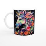Låt magin flöda varje dag med denna förtrollande keramiska mugg, prydd med en drömsk enhörning i en explosion av levande färger. Denna mugg blir snabbt en vardagsfavorit, perfekt för morgonkaffet, kvällens varma choklad eller när du bara vill njuta av en kopp te. Den blanka vita ytan framhäver de klara och levande färgerna från det fantastiska enhörningsmotivet, som håller sig fina även efter många turer i mikron och diskmaskinen.
