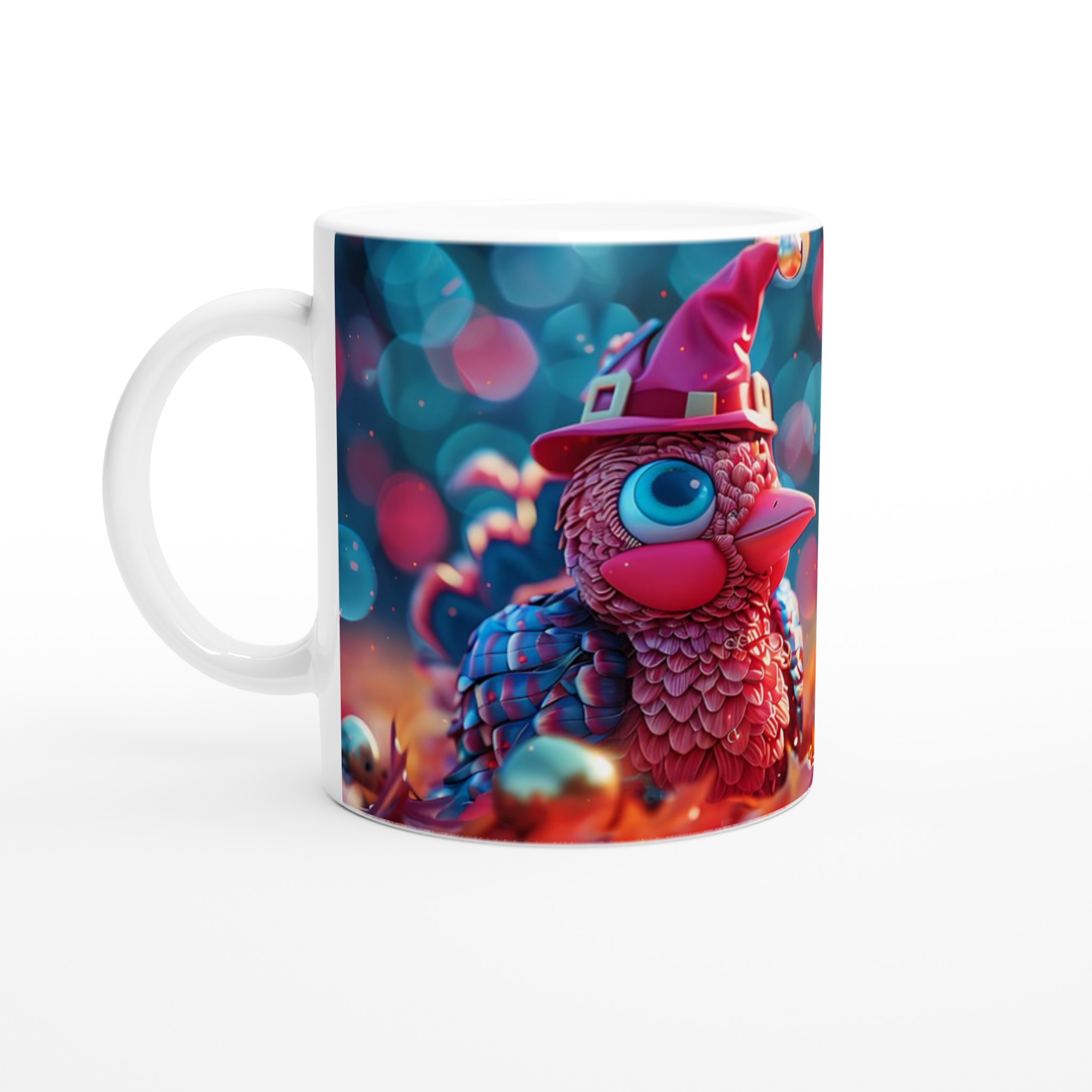 Lyft varje kaffestund med vår premium keramikmugg – stilren, hållbar och skapad för att låta ditt motiv glänsa. Denna förtrollande mugg, inspirerad av en lekfull och festlig fågel i magiska färger, är mer än bara en kopp – den är en inbjudan till glädje och fantasi. Den blanka ytan garanterar att varje detalj i din design kommer till liv med en skärpa som verkligen sticker ut. Oavsett om du väljer en personlig design, ett roligt citat eller vill ge en unik present, blir denna mugg en omedelbar favorit.