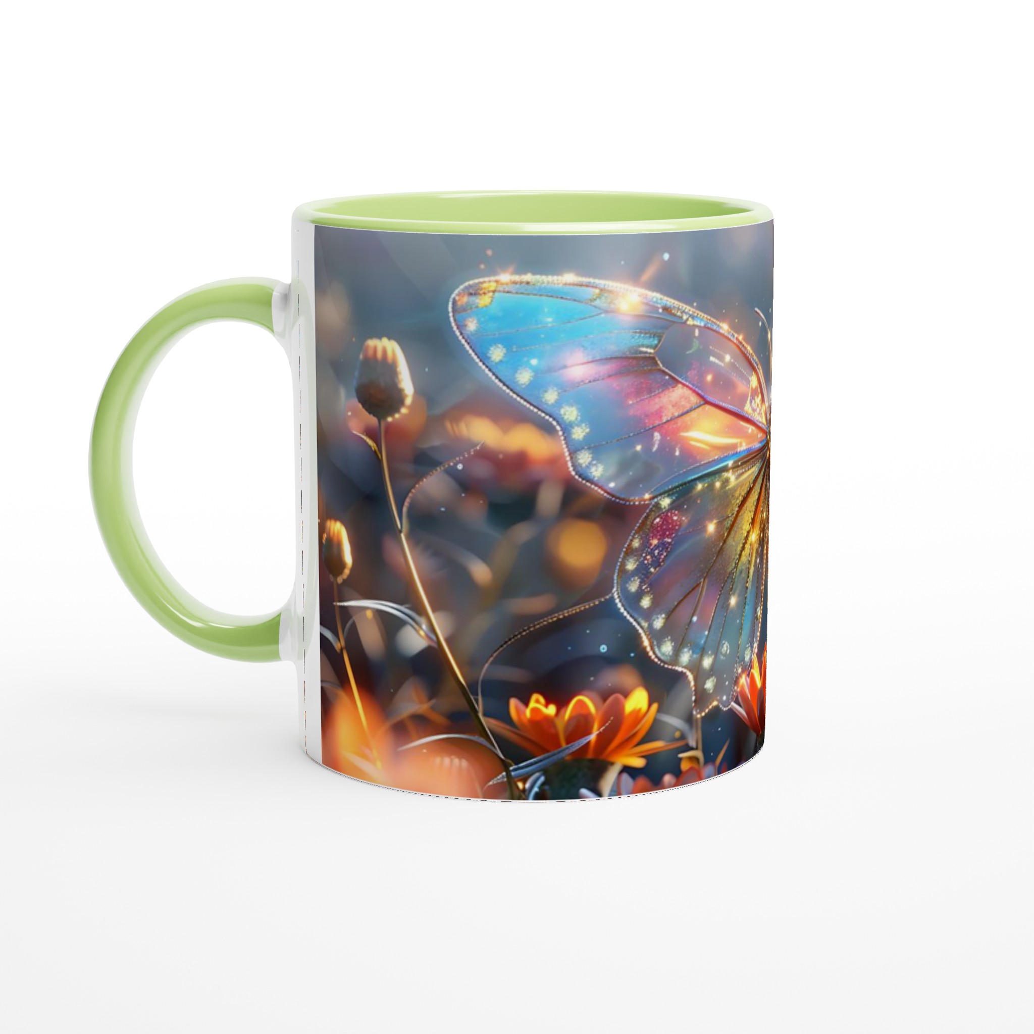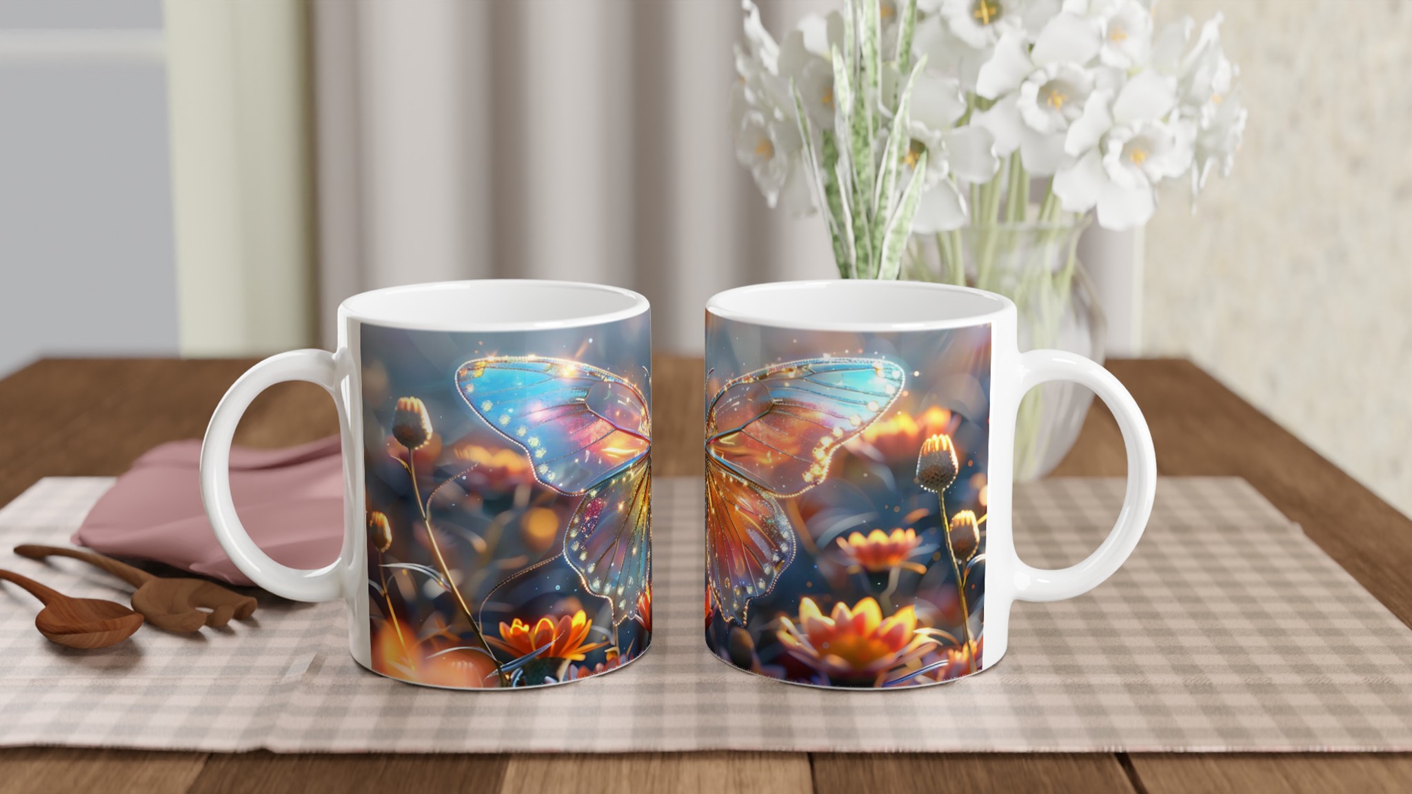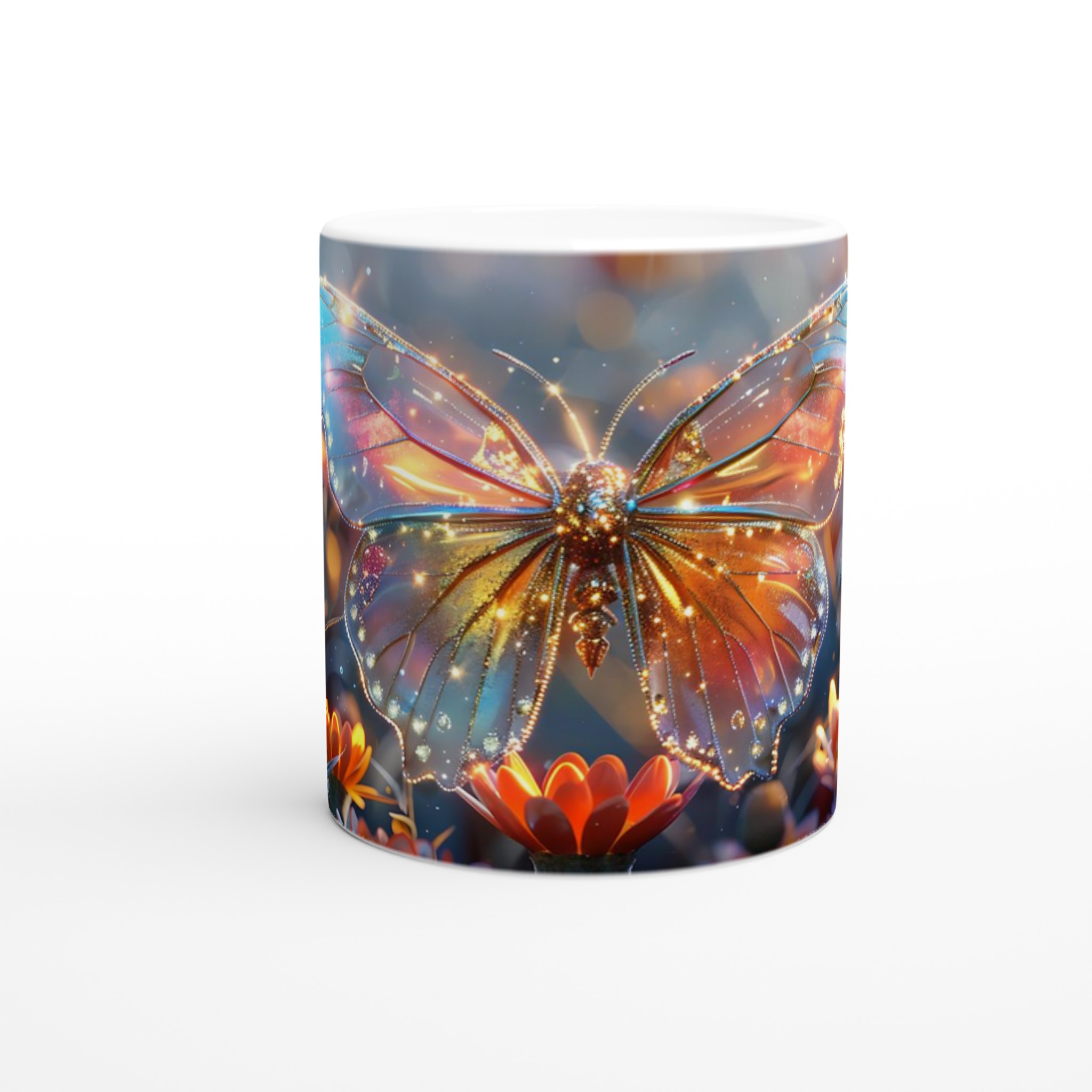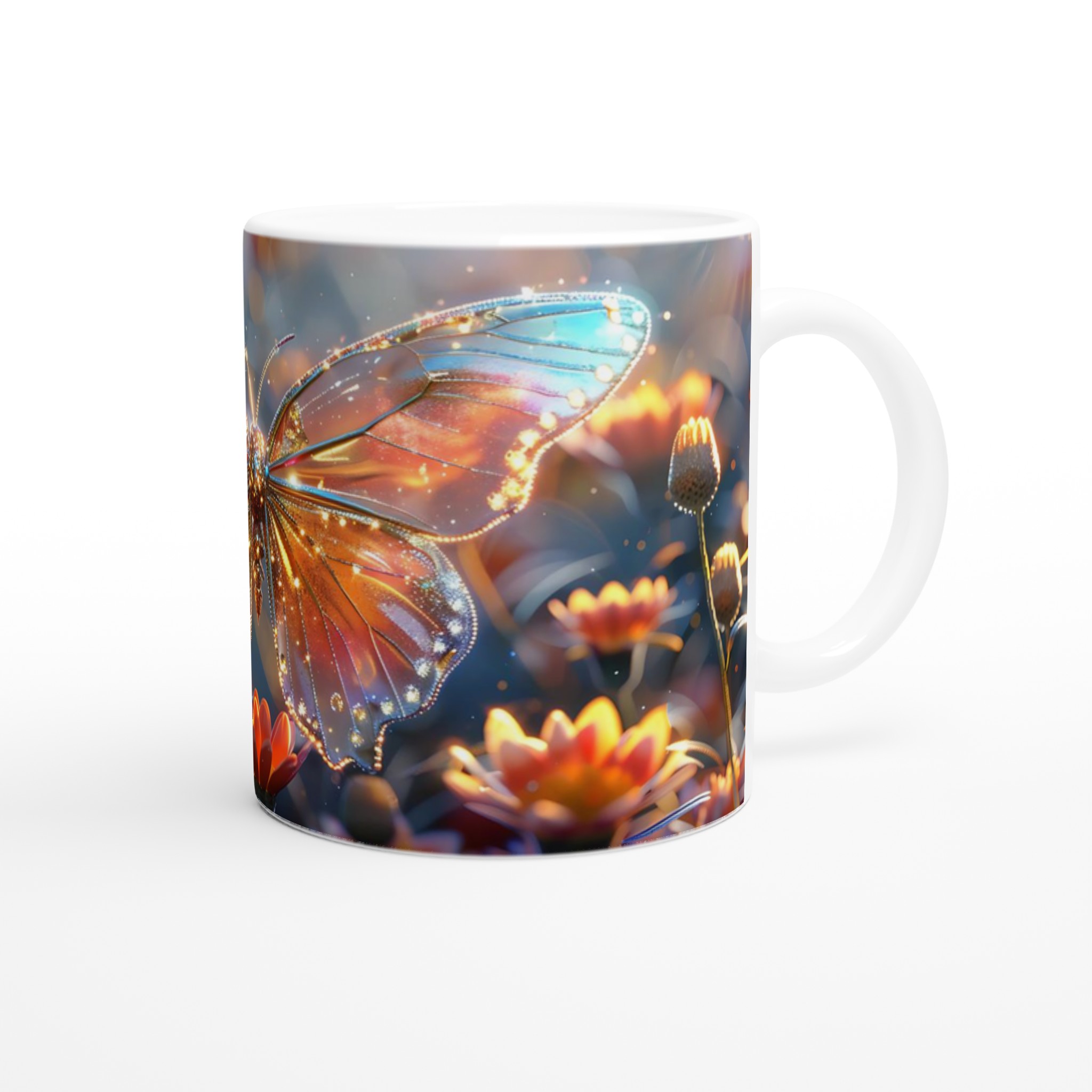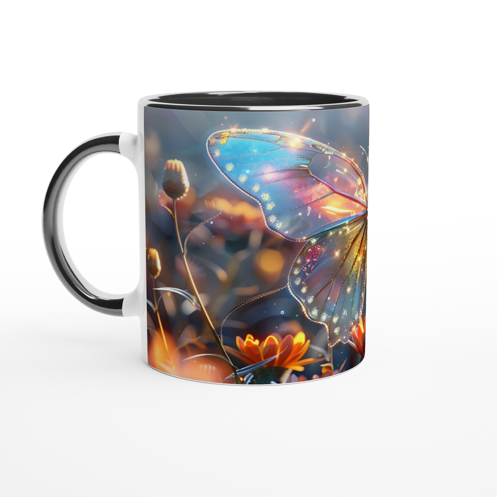 Låt dig förtrollas varje dag med denna magiska keramiska mugg, prydd med en bländande glitterfjäril som fångar solens alla färger. Denna stilrena mugg blir snabbt en vardagsfavorit, perfekt för morgonkaffet, kvällens varma choklad eller när du bara vill njuta av en kopp te och drömma dig bort. Den blanka ytan, tillgänglig i sju fängslande färger, gör att det skimrande fjärilstrycket framhävs med klara och levande nyanser, som håller sig fina även efter många turer i mikron och diskmaskinen.