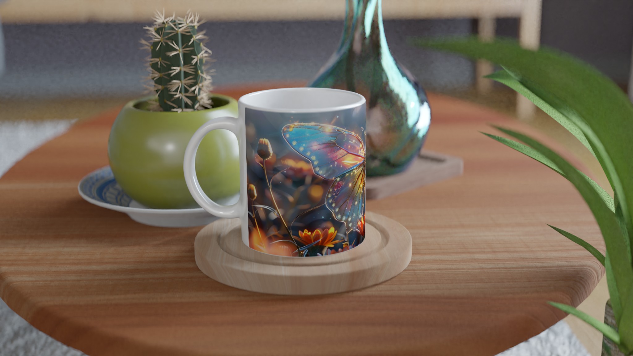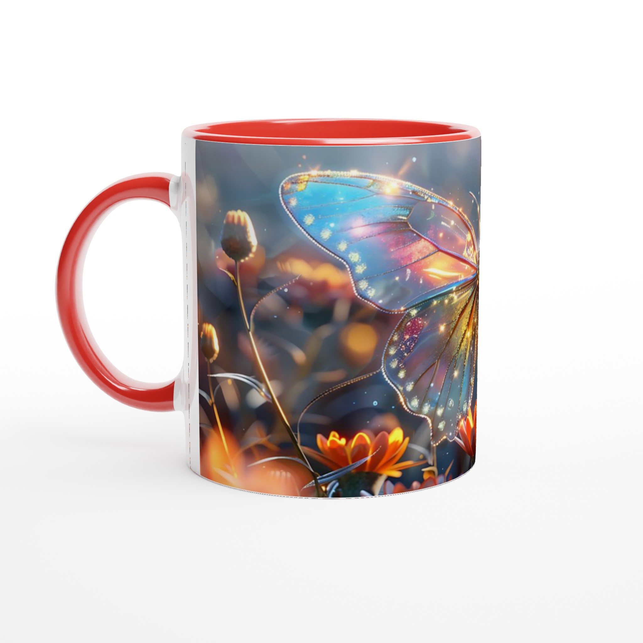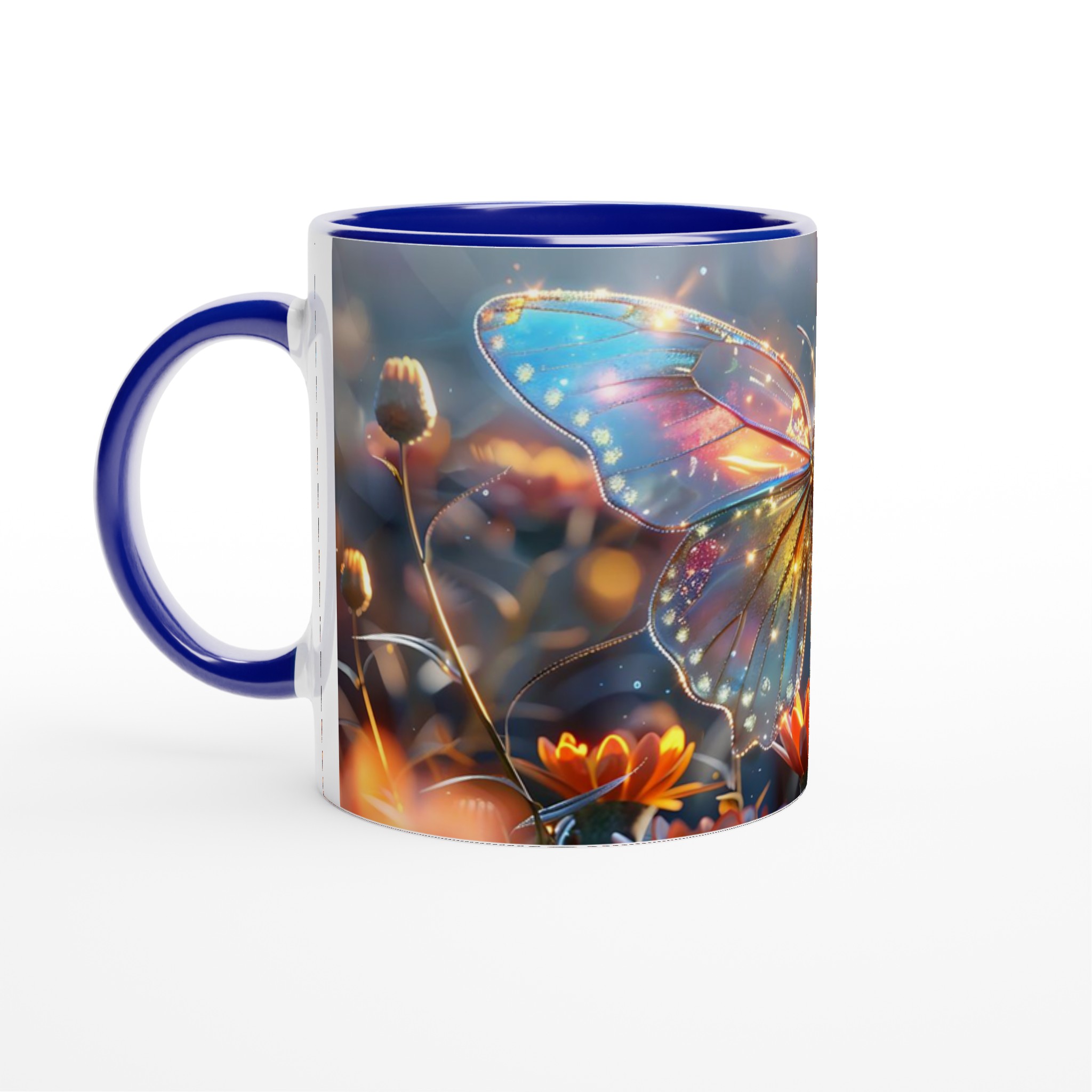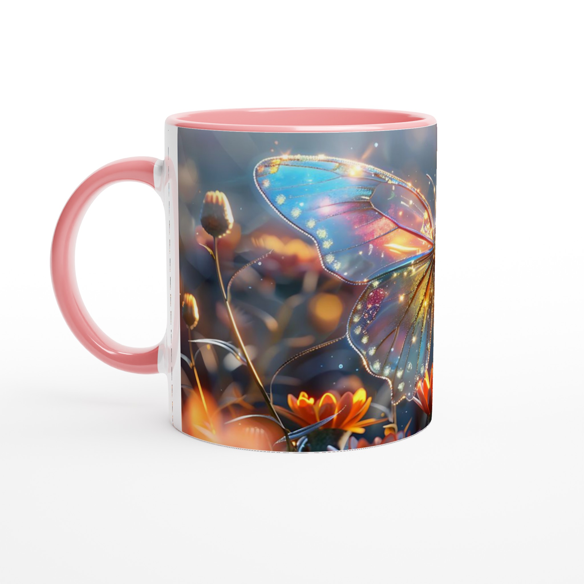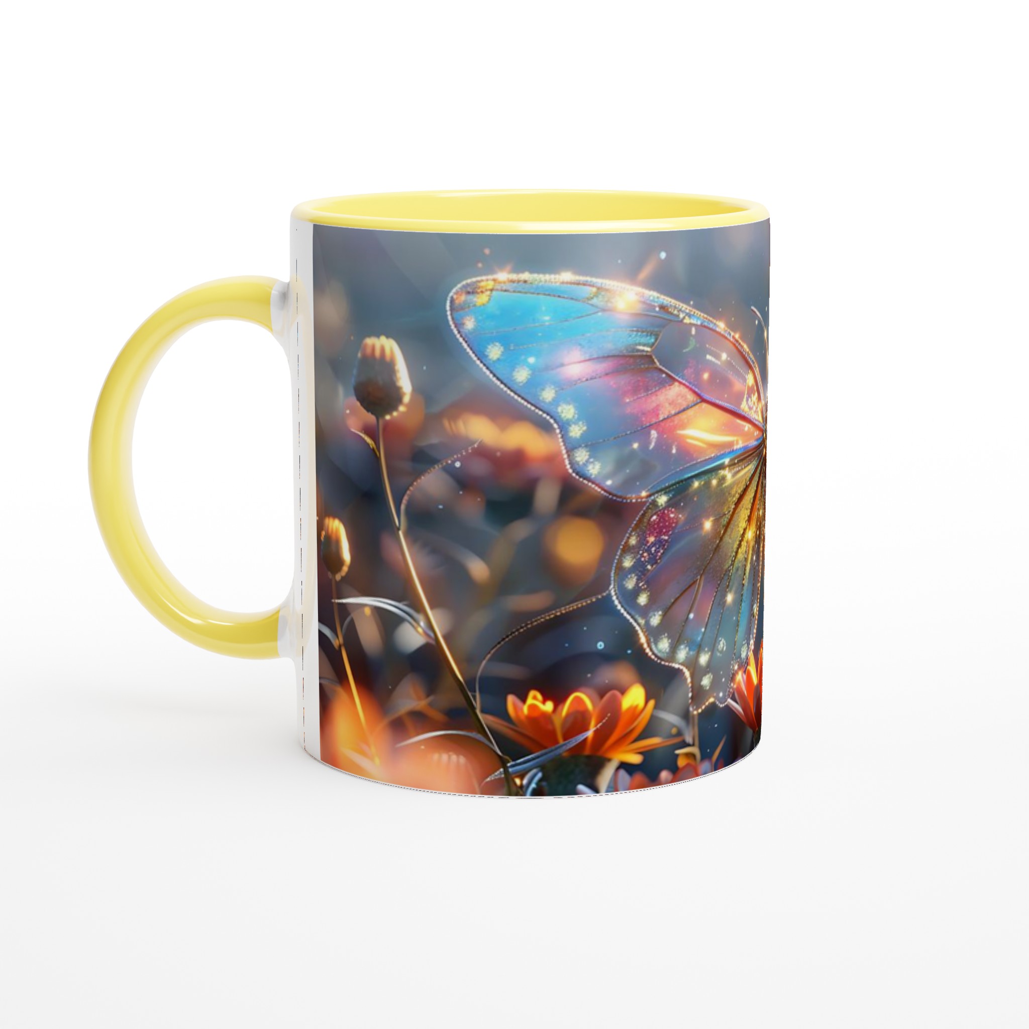 Låt dig förtrollas varje dag med denna magiska keramiska mugg, prydd med en bländande glitterfjäril som fångar solens alla färger. Denna stilrena mugg blir snabbt en vardagsfavorit, perfekt för morgonkaffet, kvällens varma choklad eller när du bara vill njuta av en kopp te och drömma dig bort. Den blanka ytan, tillgänglig i sju fängslande färger, gör att det skimrande fjärilstrycket framhävs med klara och levande nyanser, som håller sig fina även efter många turer i mikron och diskmaskinen.