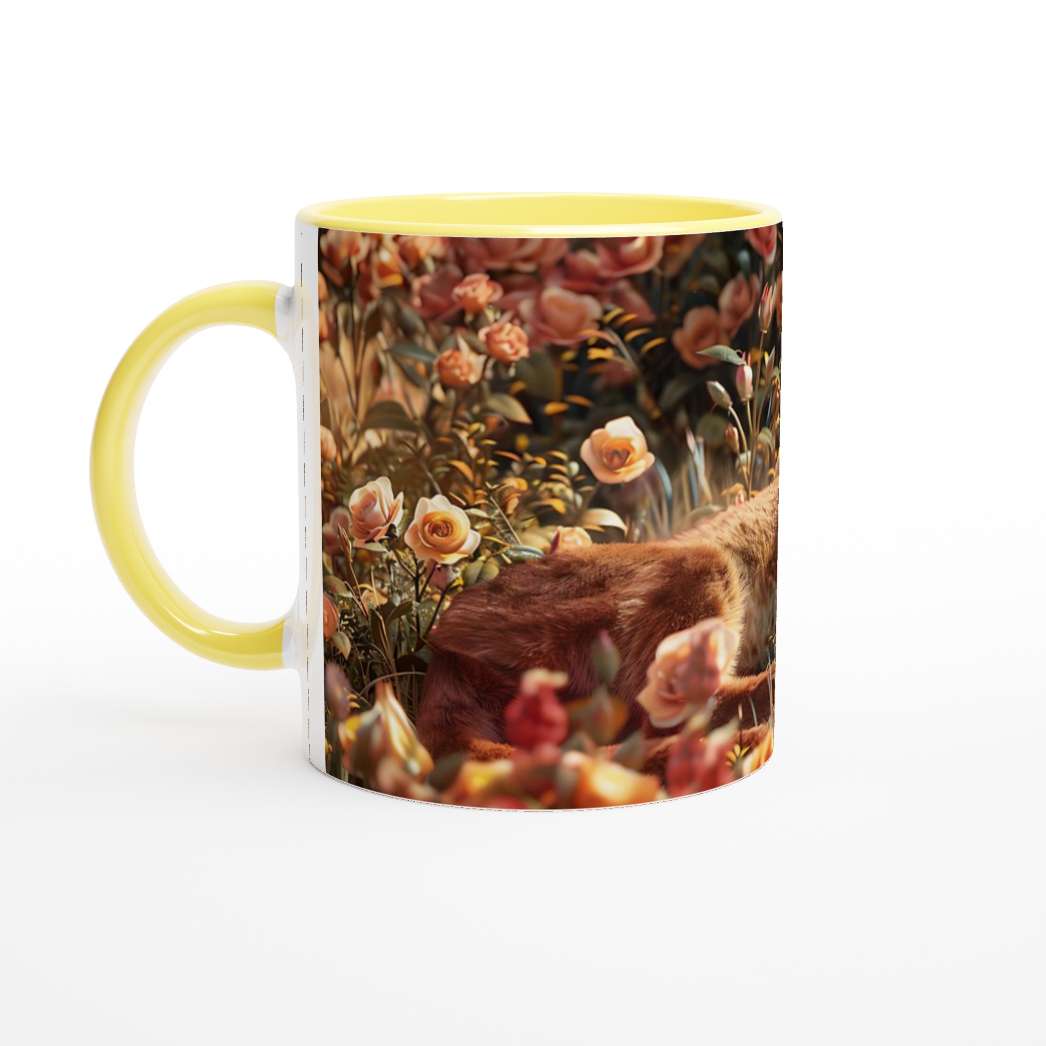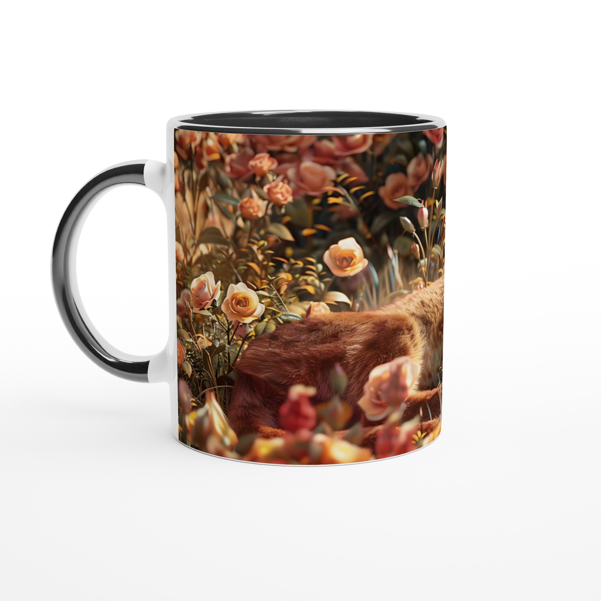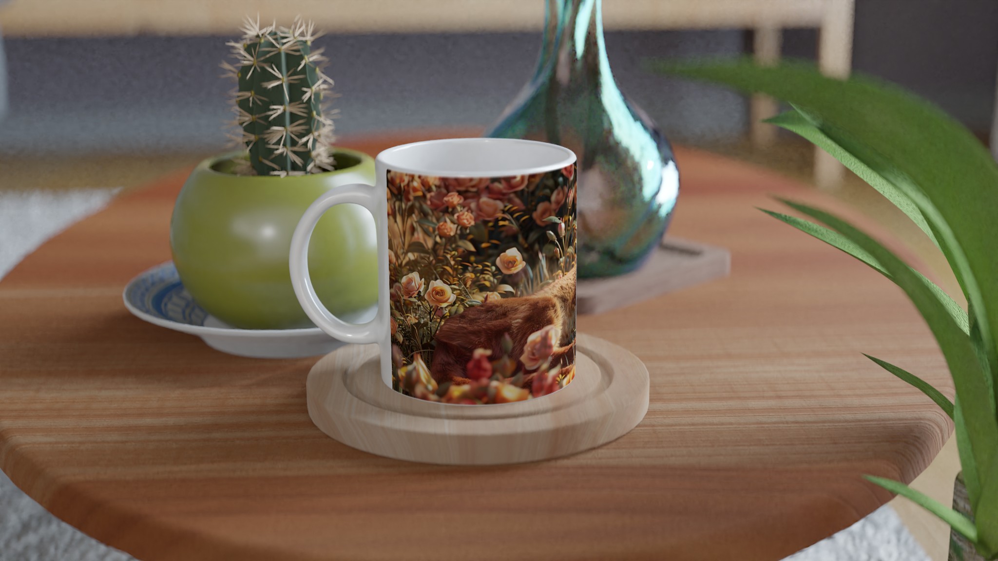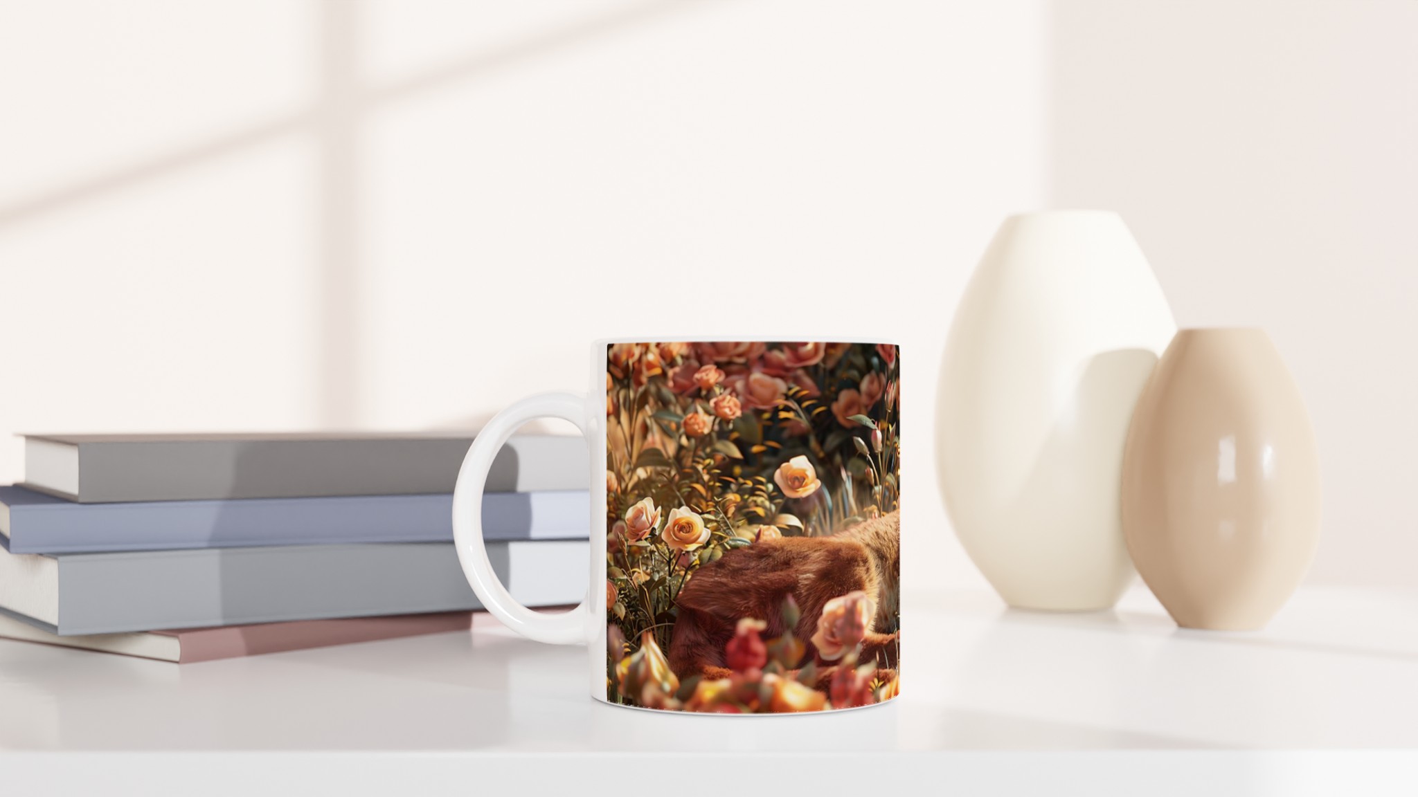 Låt dig förtrollas varje dag med denna underbara keramiska mugg, prydd med en majestätisk karakal vilande bland gyllene rosor. Denna mugg blir snabbt en vardagsfavorit, perfekt för morgonkaffet, kvällens varma choklad eller när du bara vill njuta av en kopp te i lugn och ro. Den blanka ytan framhäver trycket med klara och levande färger, som håller sig fina även efter många turer i mikron och diskmaskinen, vilket garanterar att din magiska stund bevaras.