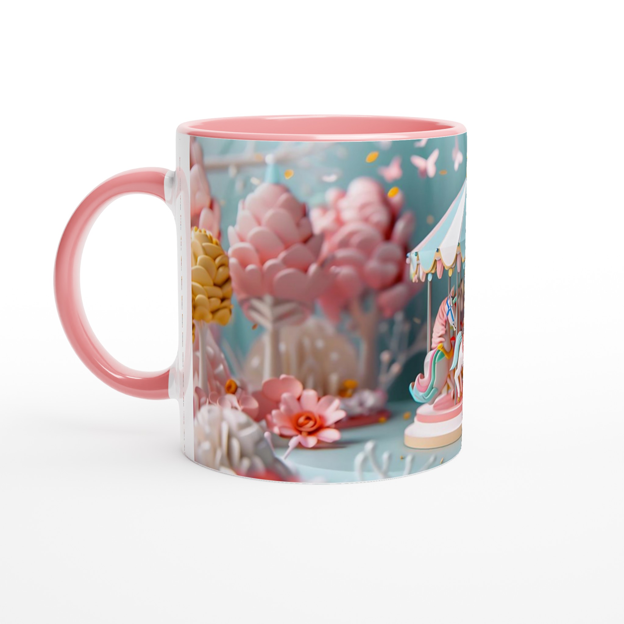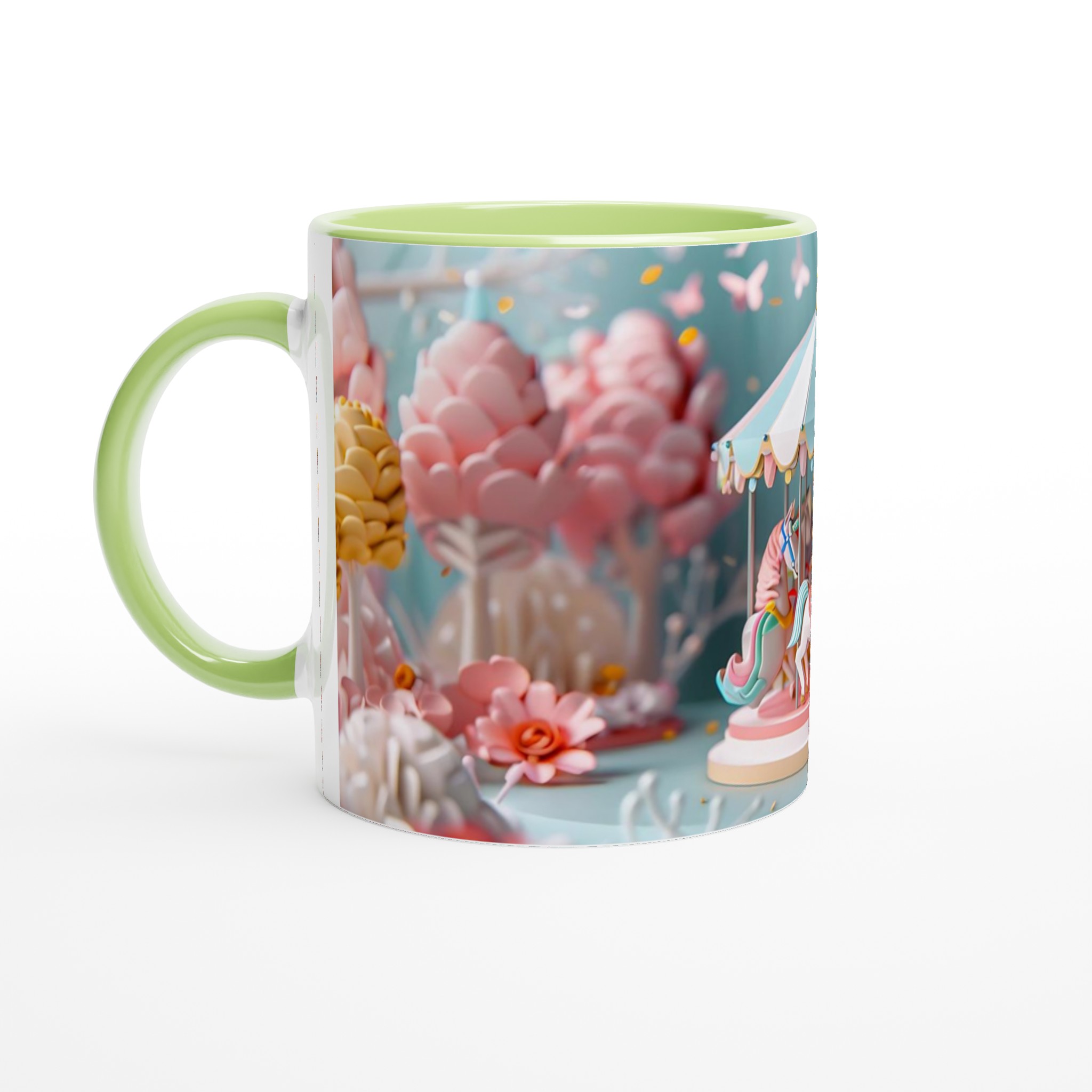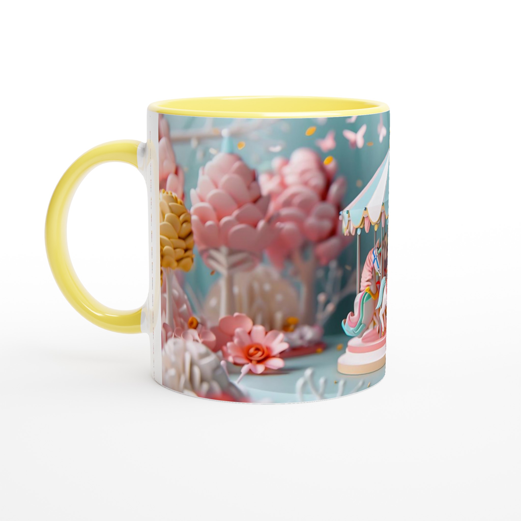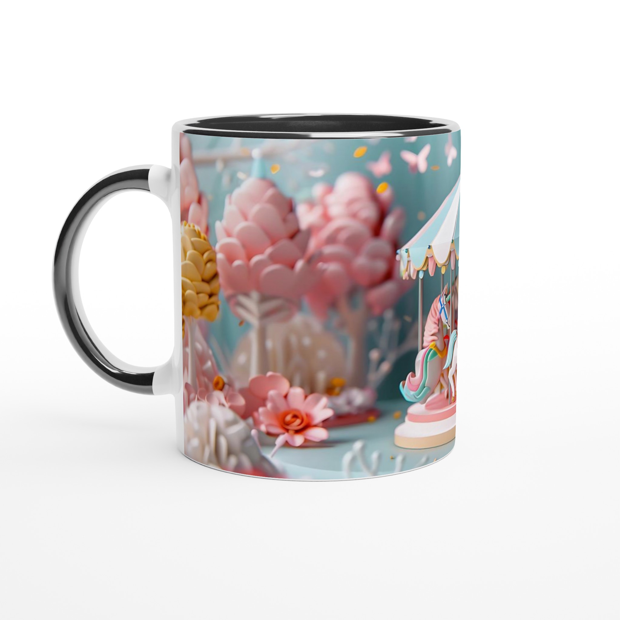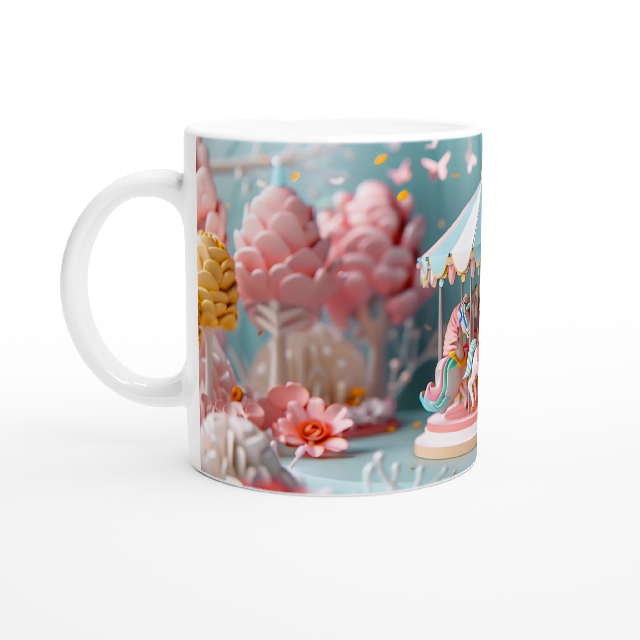 Låt varje fikastund bli en magisk resa med vår förtrollande Keramisk Mugg, inspirerad av karusellens drömlika värld! Perfekt för morgonkaffet, kvällens varma choklad eller när du bara vill njuta av en kopp te. Den blanka ytan framhäver det lekfulla enhörningsmotivet med klara och levande färger, som håller sig fina även efter många turer i mikron och diskmaskinen.