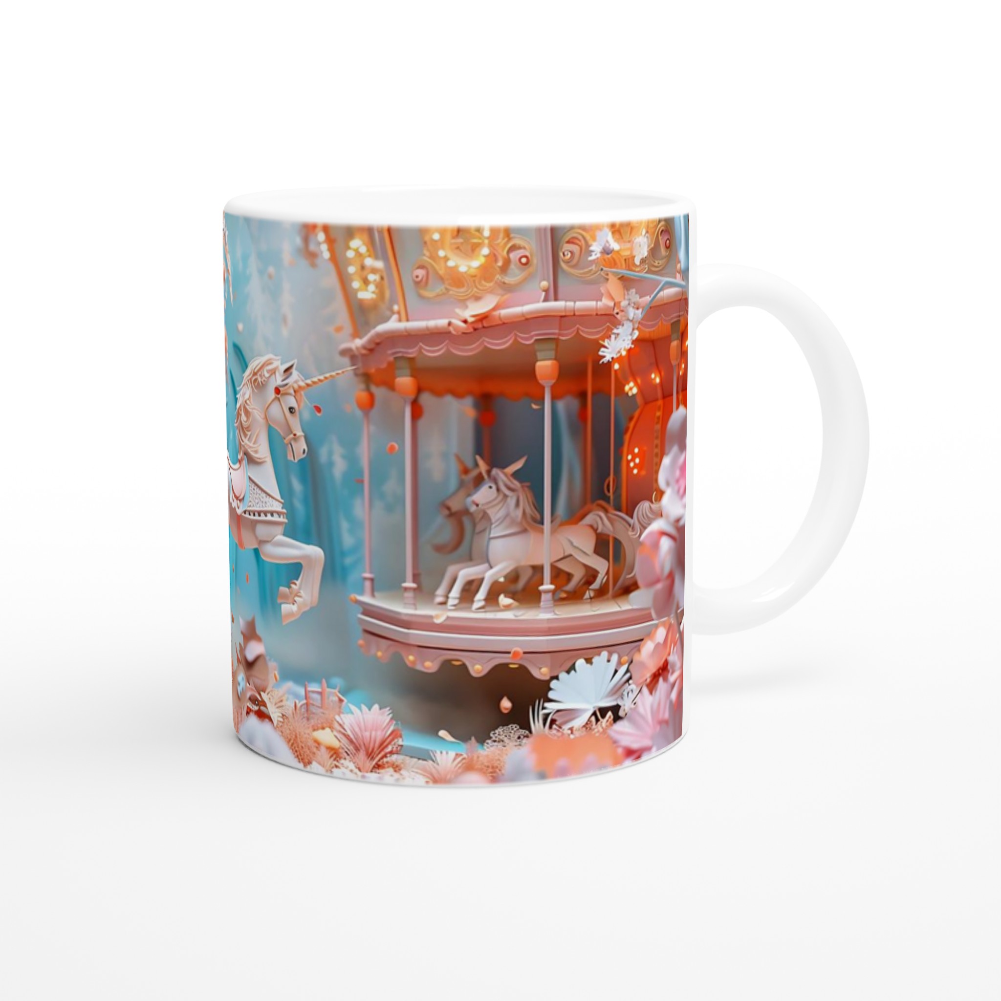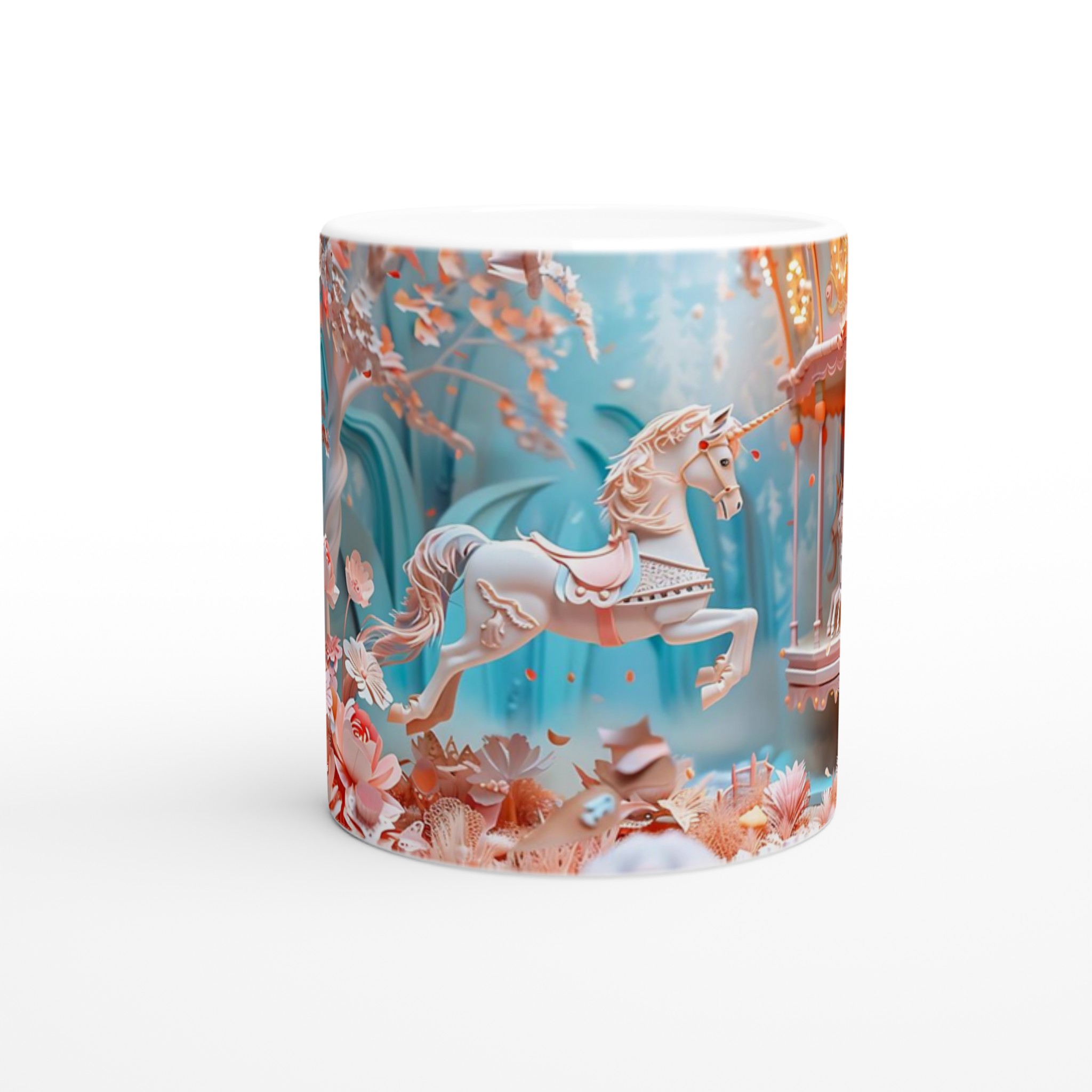 Väck fantasin till liv med vår förtrollande Keramiska Mugg, inspirerad av en sagolik karusellvärld. Varje klunk blir en resa till ett drömskt landskap av pastellfärger och glittrande enhörningar, omgiven av blommande körsbärsträd. Denna mugg är inte bara en behållare för din dryck – den är en inbjudan till en stund av lugn och magi, perfekt för din morgonrutin eller en avkopplande kväll.