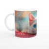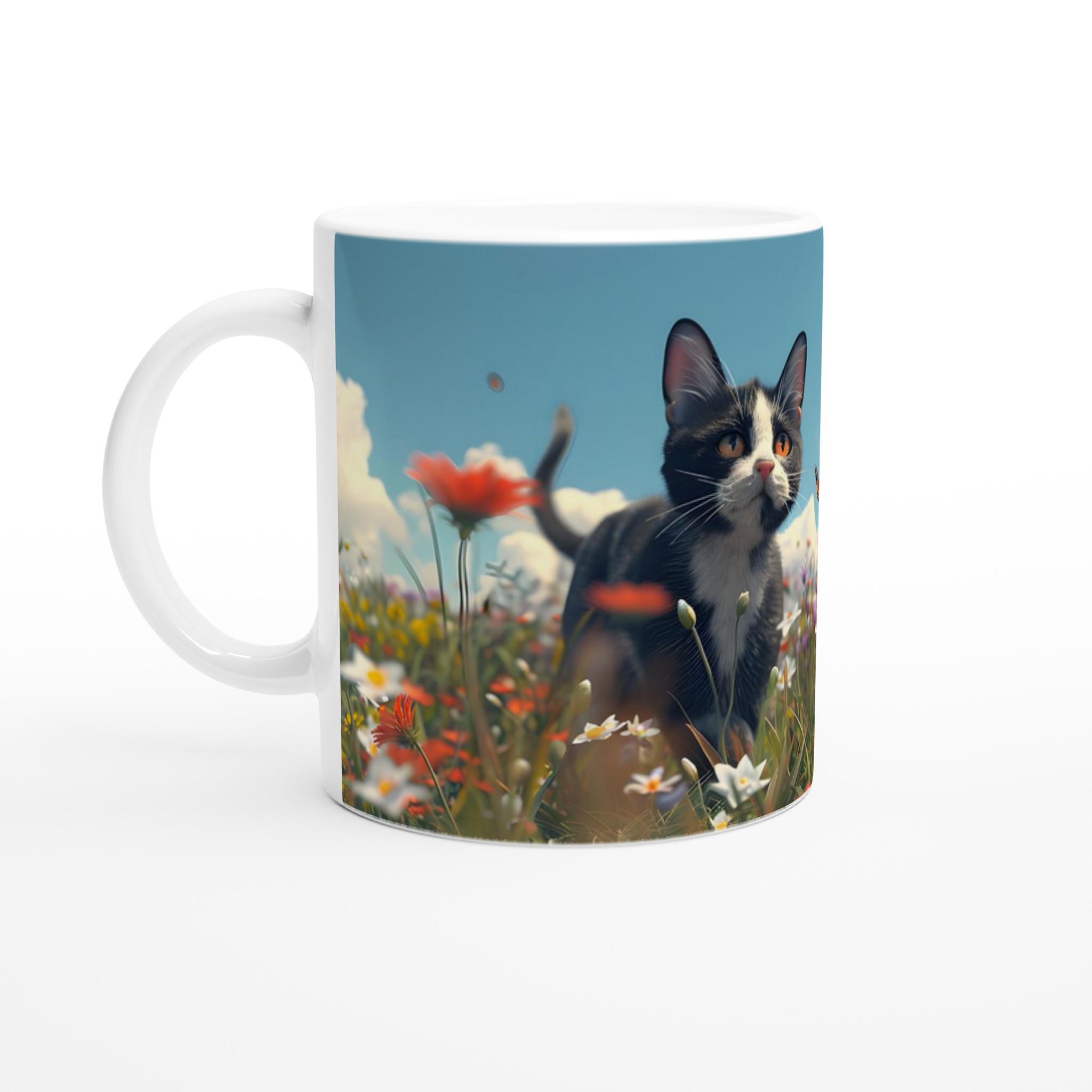 Föreställ dig en lugn morgon, där en nyfiken kattunge spanar bland blommande fält mot en himmel fylld med fjärilar. Denna bedårande scen, fylld av liv och färg, pryder vår högkvalitativa keramikmugg och bjuder in till en stunds avkoppling och dagdrömmar. Låt denna charmiga mugg bli din dagliga påminnelse om naturens skönhet och den lekfulla glädjen i varje ögonblick.