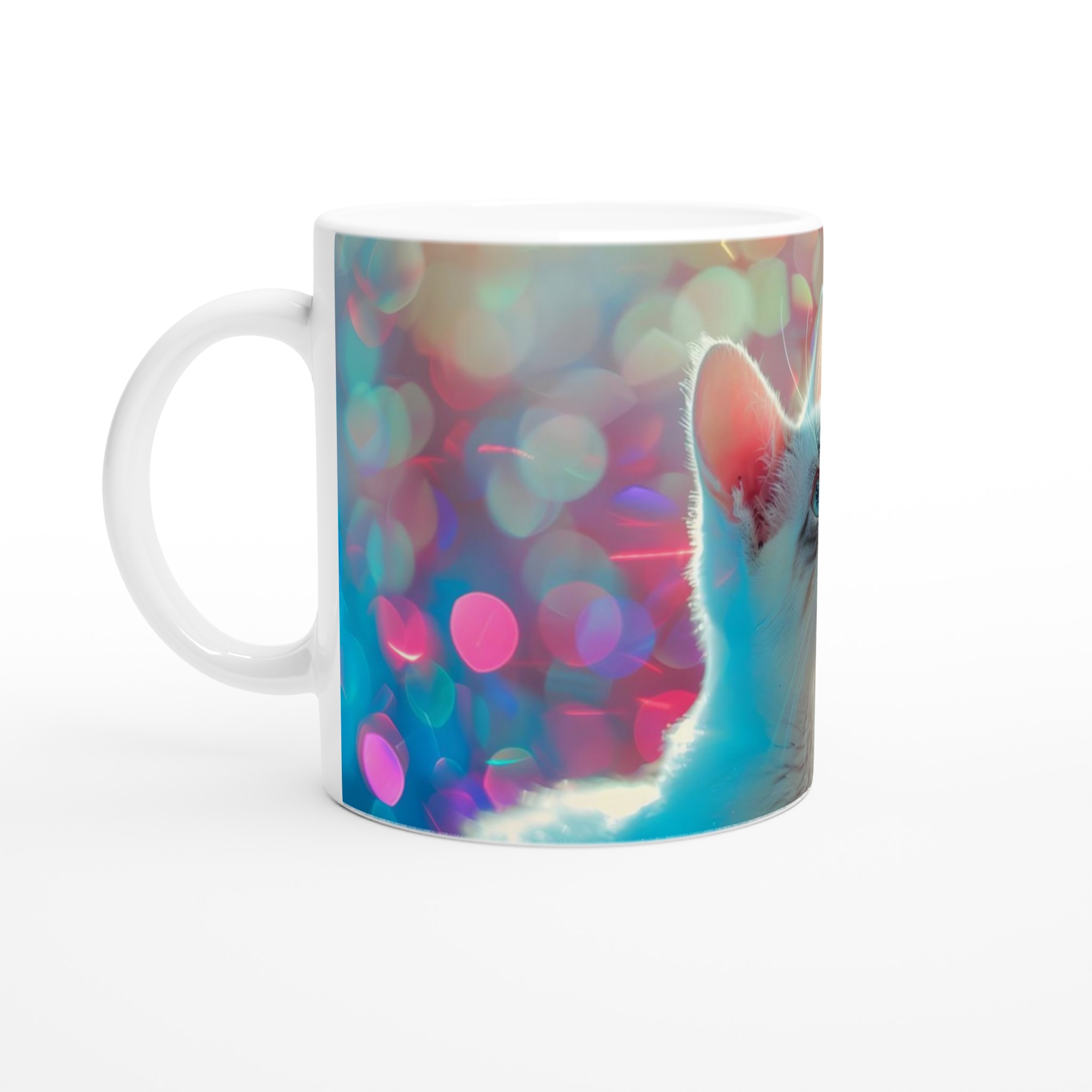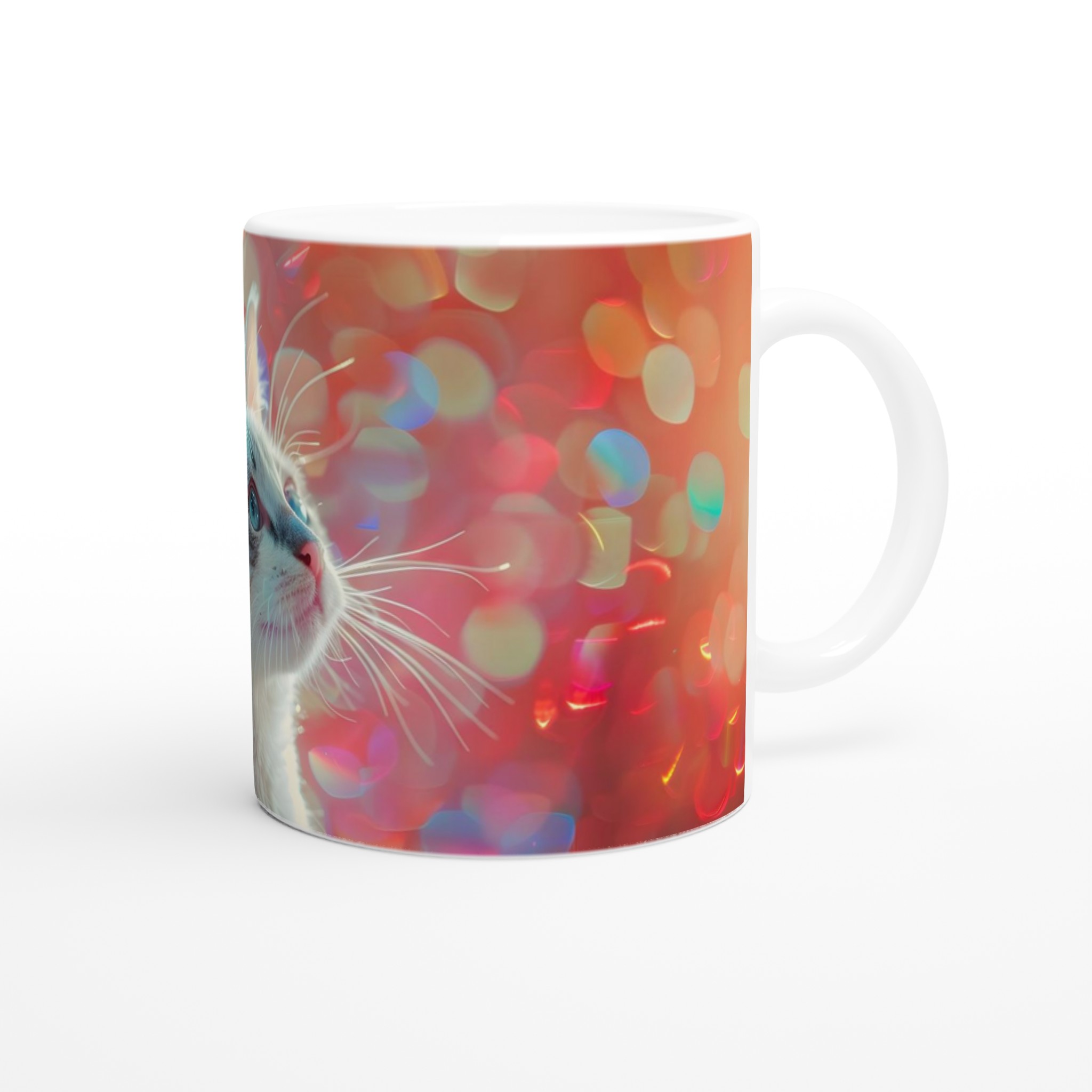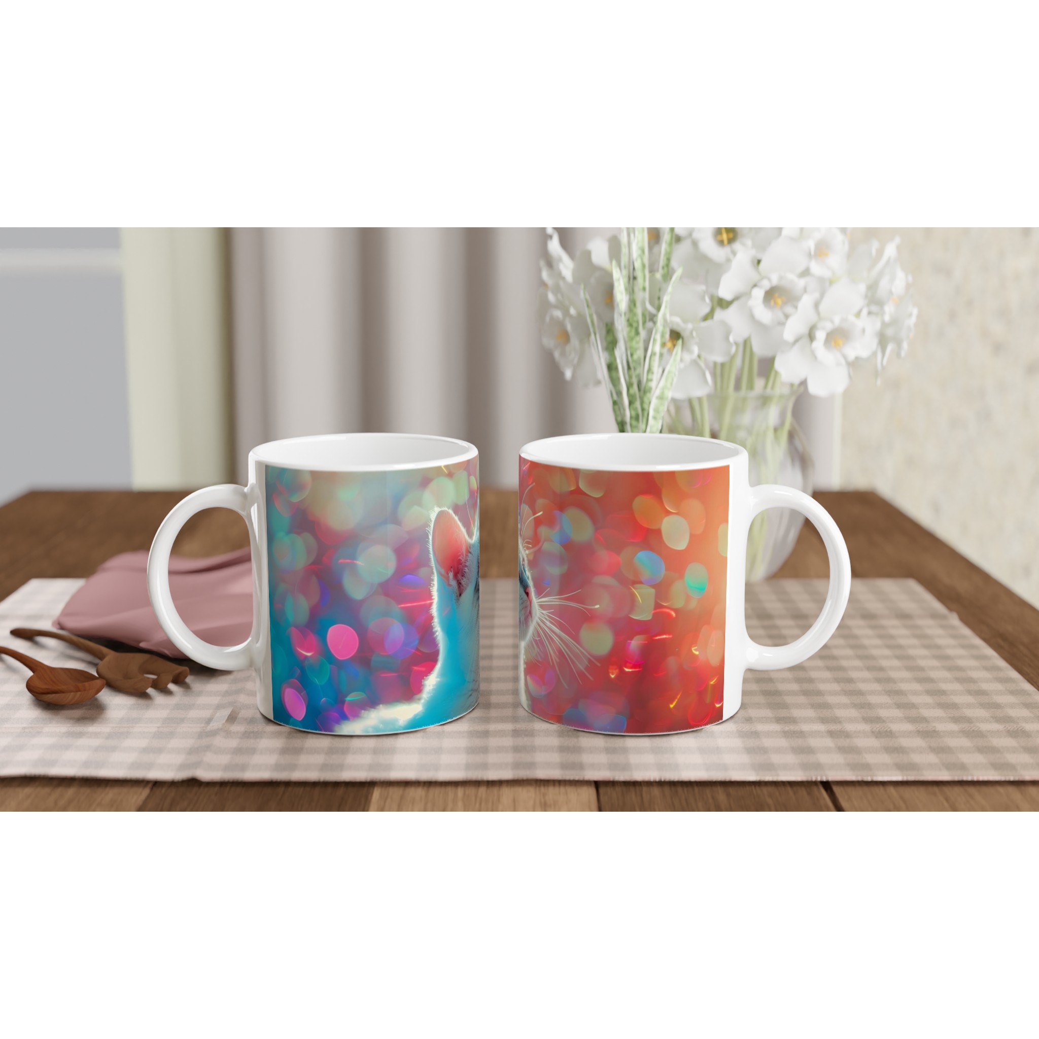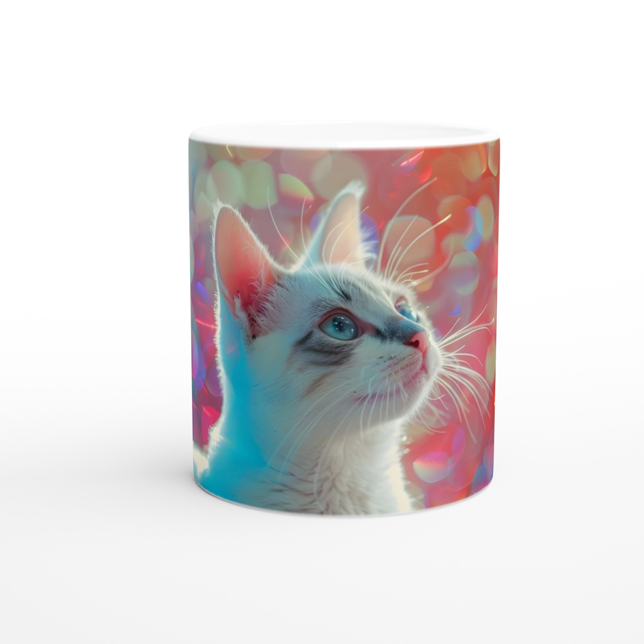 Låt dig förtrollas varje morgon med denna charmiga keramikmugg, prydd med en bedårande katt mot en drömsk bakgrund av pastellskimrande bokeh. De mjuka, glittrande färgerna – från lugnande blått och livfullt rosa till varma guldtoner – skapar en nästan magisk känsla som lyfter fram kattens oskuldsfulla blick och nyfikna uttryck.