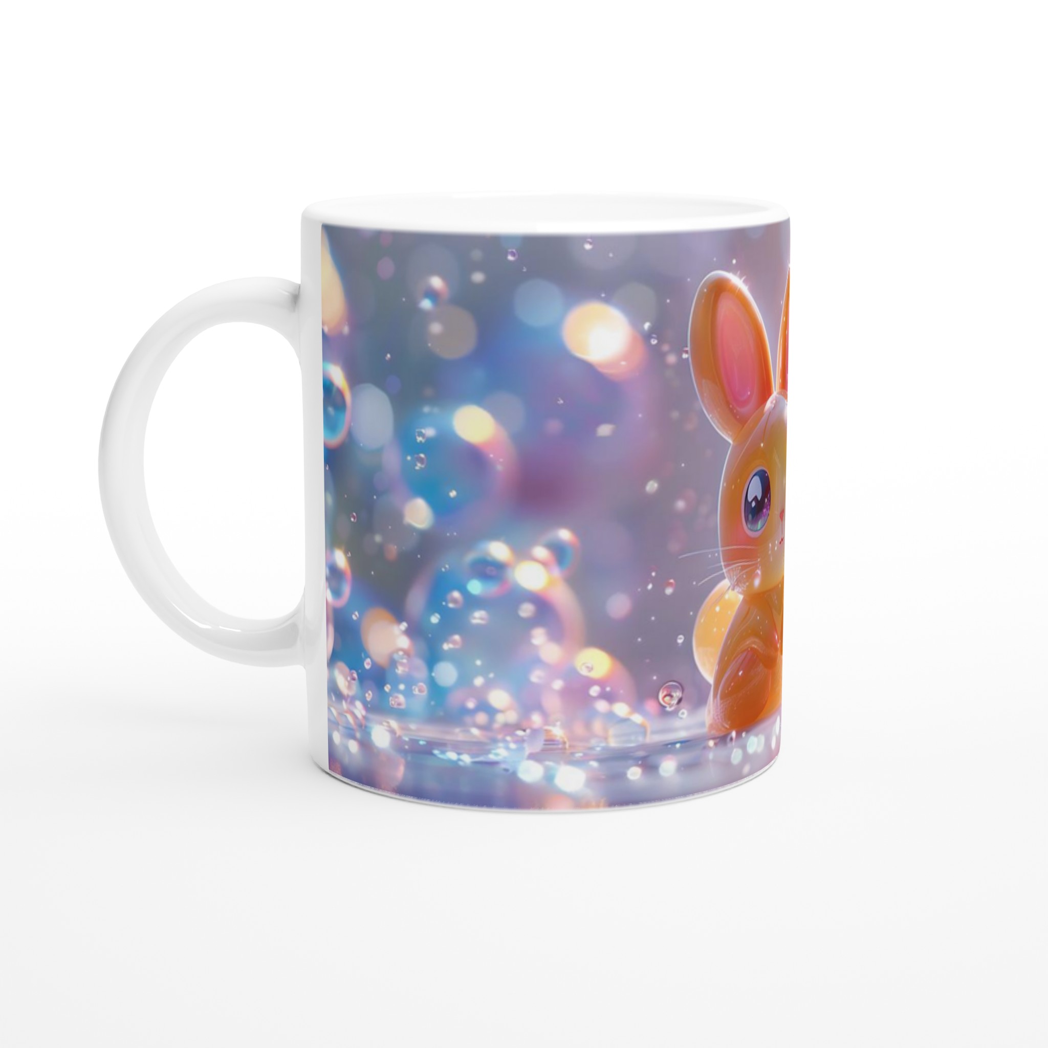 Väck magin i din dryckesritual med vår förtrollande Kawaii Kanin Mugg, inspirerad av glädjen och charmen hos den lekfulla lilla kaninen omgiven av glittrande bubblor och mjukt ljus. Denna mugg är mer än bara en kopp – den är en daglig dos av förtjusning, designad för att bringa ett leende till ditt ansikte. Tillverkad av högkvalitativ keramik som tål både diskmaskin och mikrovågsugn utan att tappa färg eller glans. Den håller formen och färgerna tvätt efter tvätt – en riktig vardagsfavorit som består.