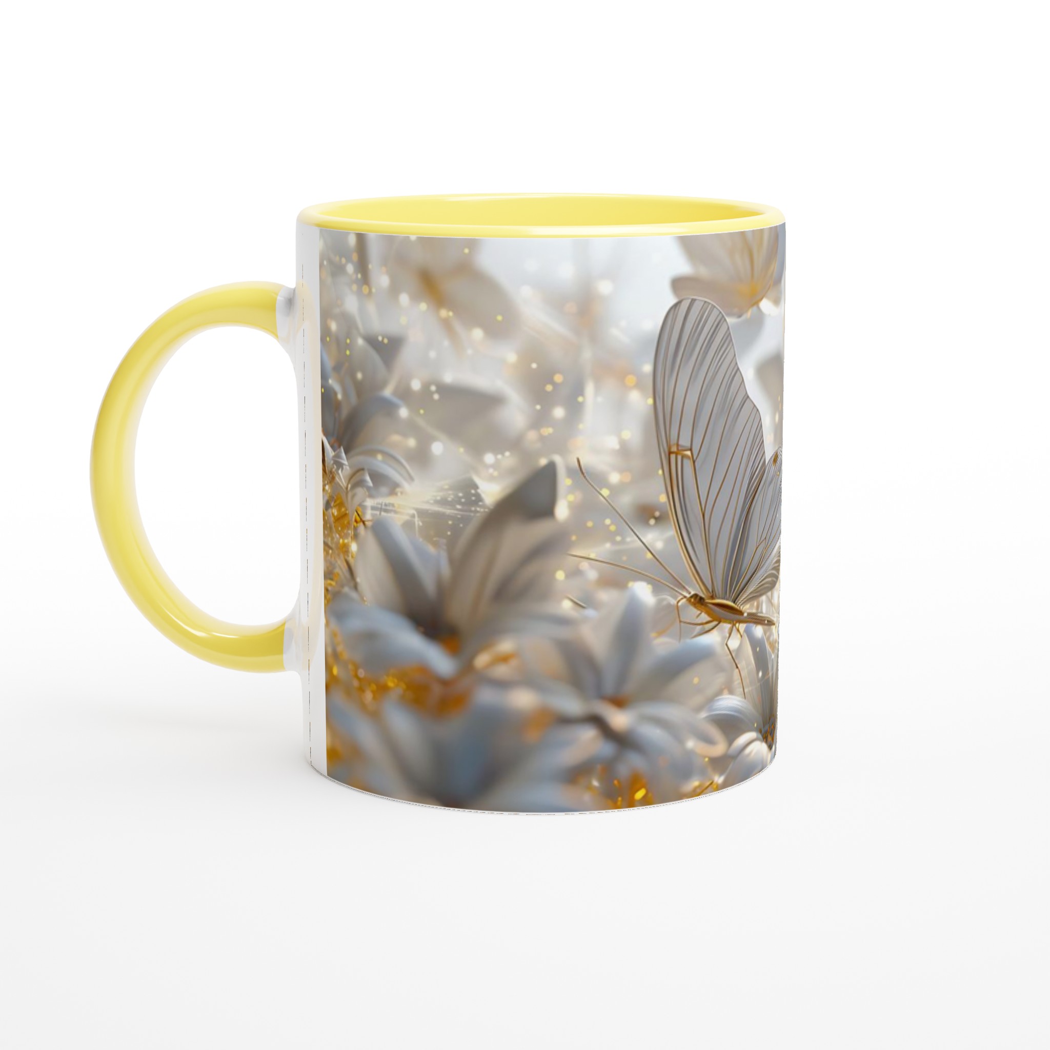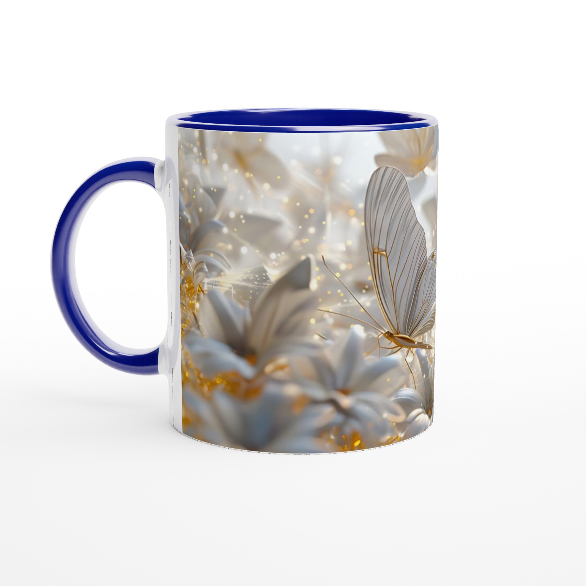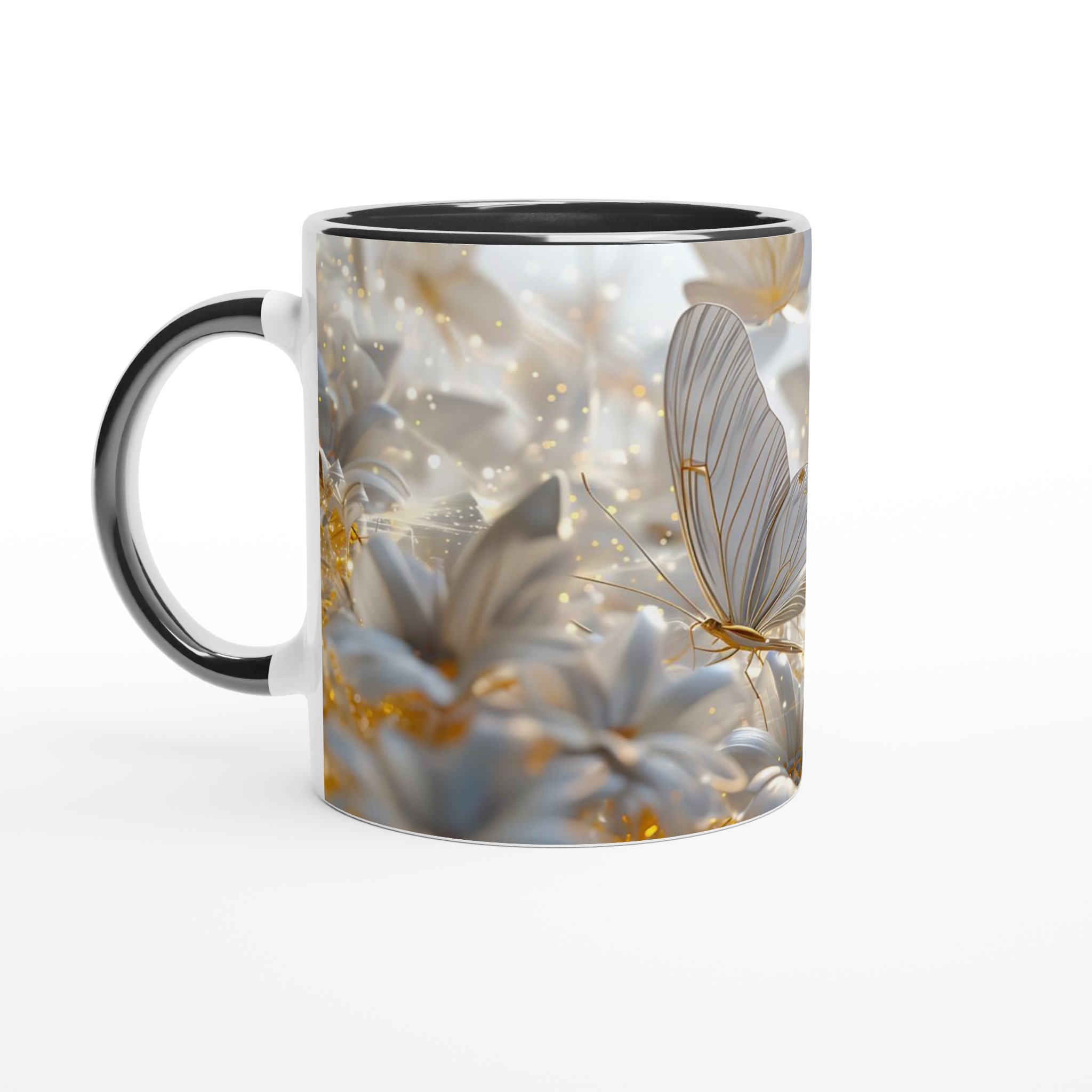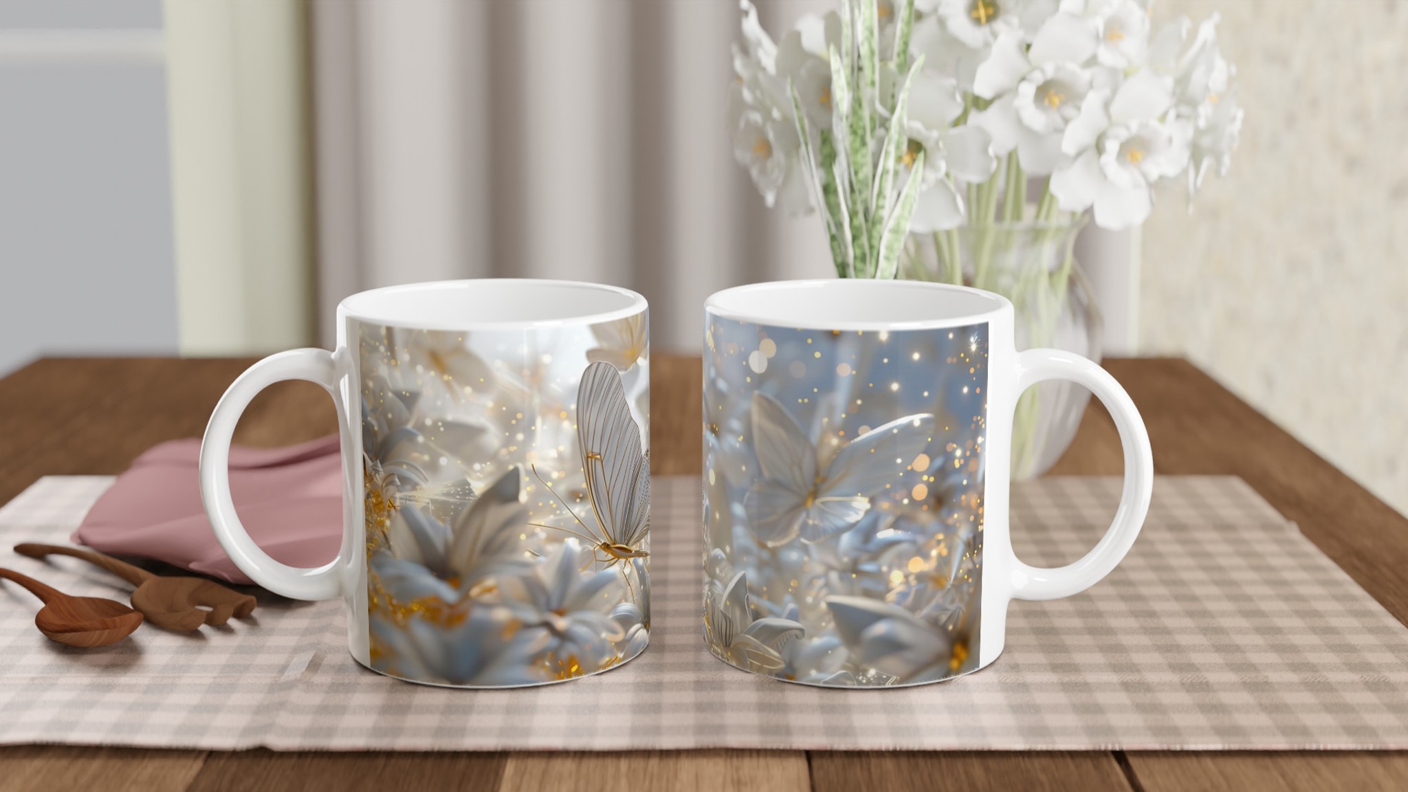 Låt varje klunk transportera dig till en magisk trädgård badad i gyllene ljus med vår förtrollande keramiska mugg. Med sitt eteriska motiv av skimrande fjärilar och drömlika blommor i vitt och guld, blir denna mugg snabbt en vardagsfavorit. Den är perfekt för morgonkaffet, kvällens varma choklad eller när du bara vill njuta av en kopp te i en värld av lugn och skönhet.