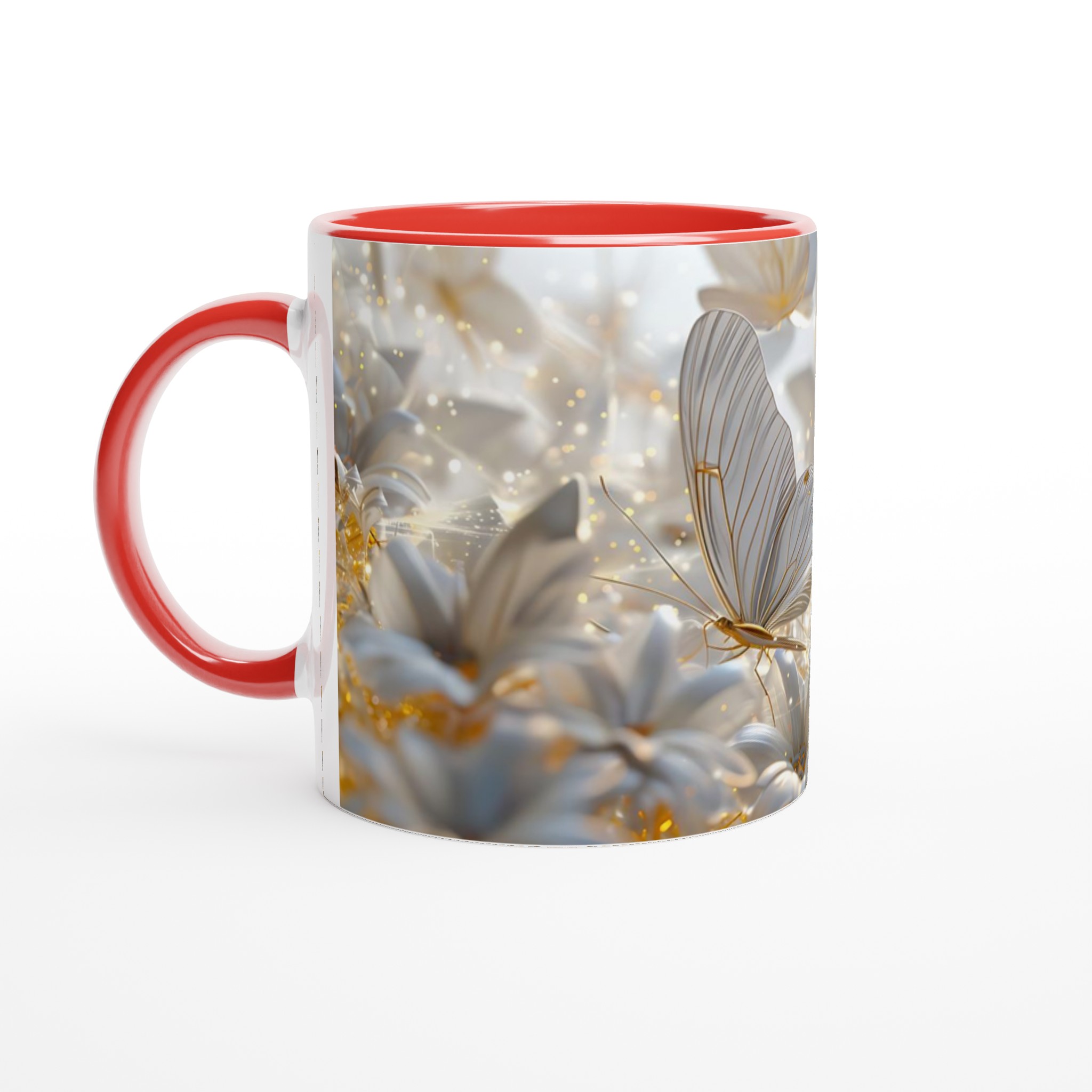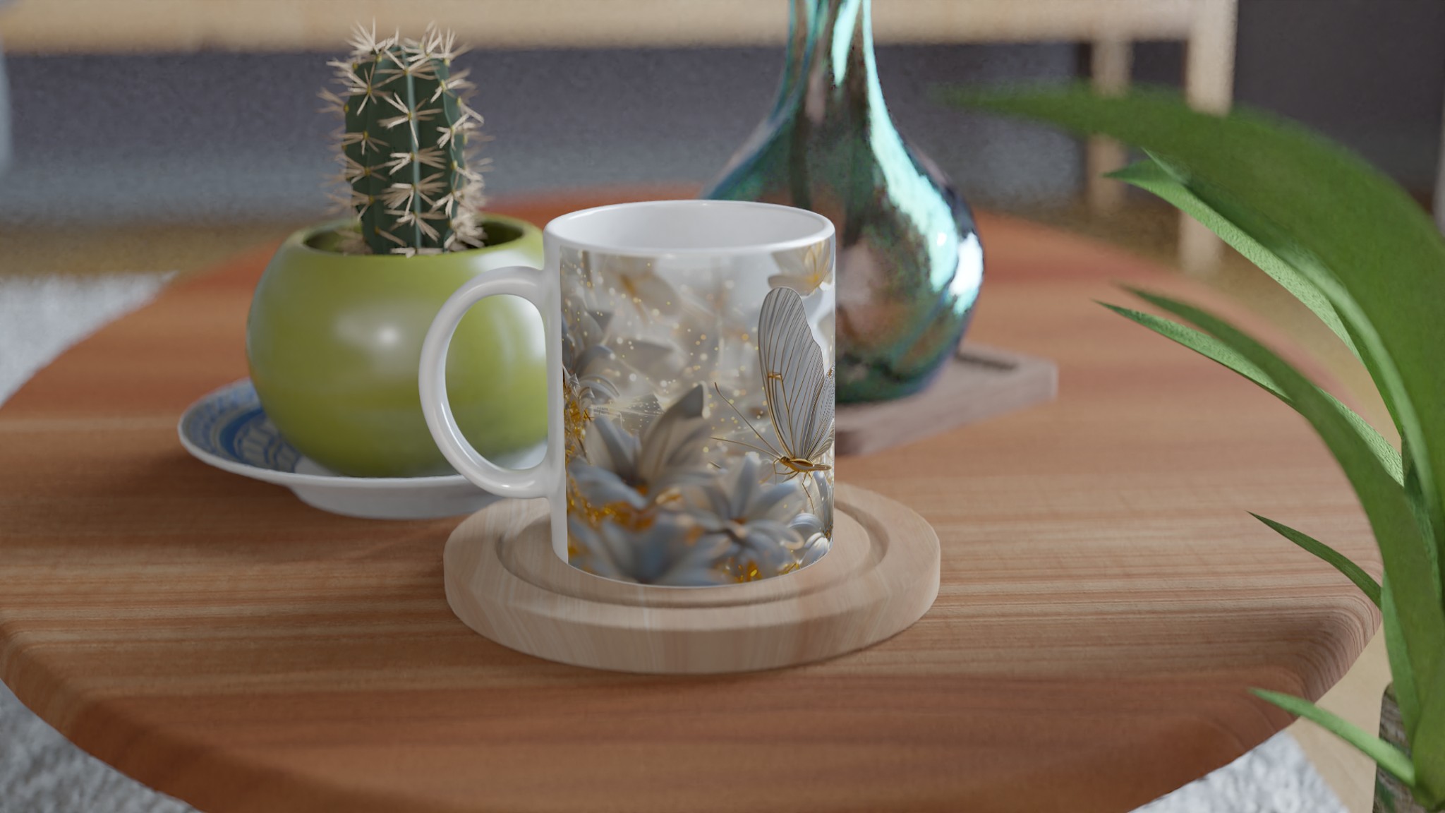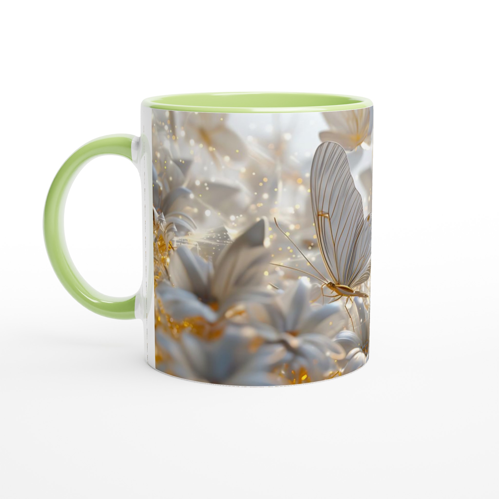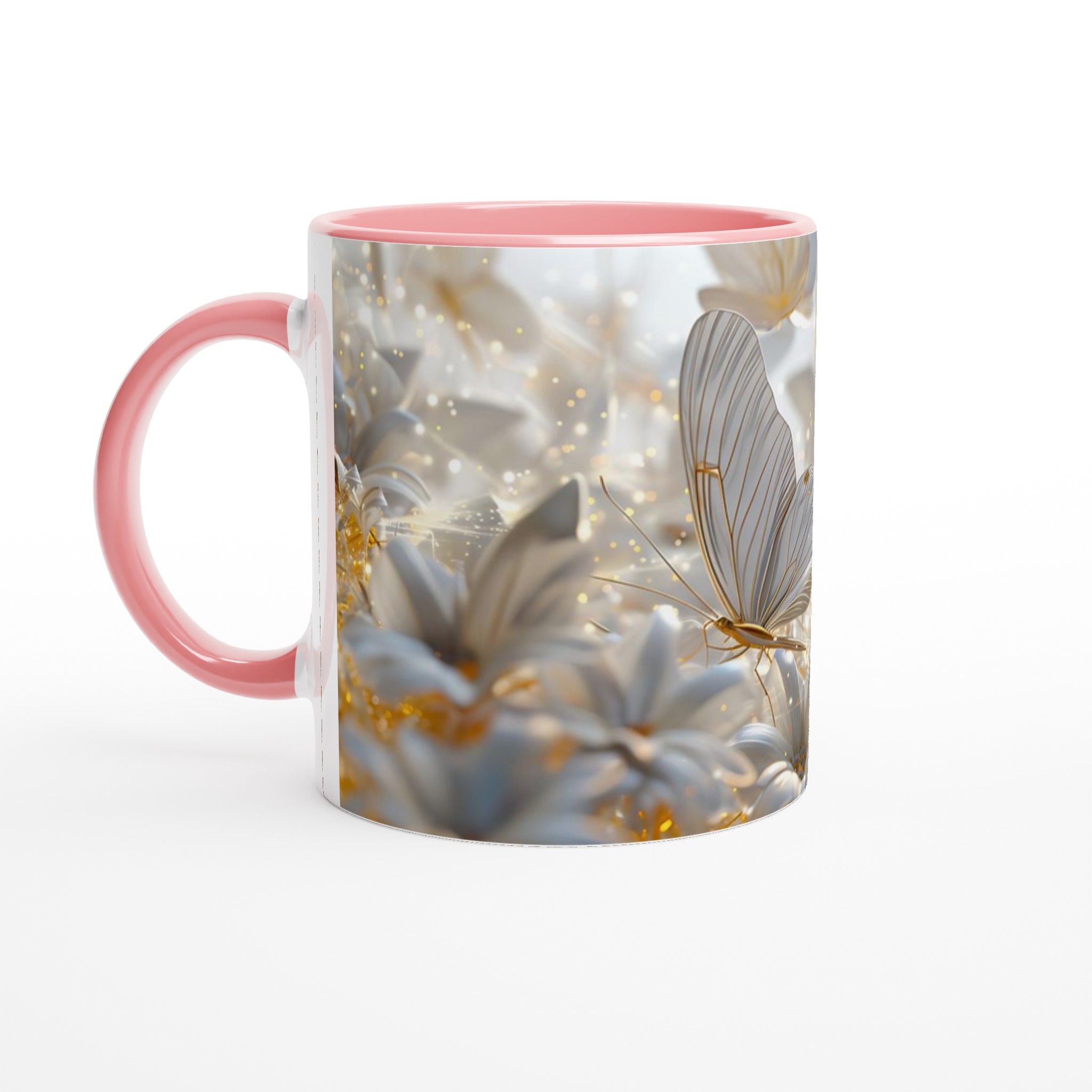 Låt varje klunk transportera dig till en magisk trädgård badad i gyllene ljus med vår förtrollande keramiska mugg. Med sitt eteriska motiv av skimrande fjärilar och drömlika blommor i vitt och guld, blir denna mugg snabbt en vardagsfavorit. Den är perfekt för morgonkaffet, kvällens varma choklad eller när du bara vill njuta av en kopp te i en värld av lugn och skönhet.