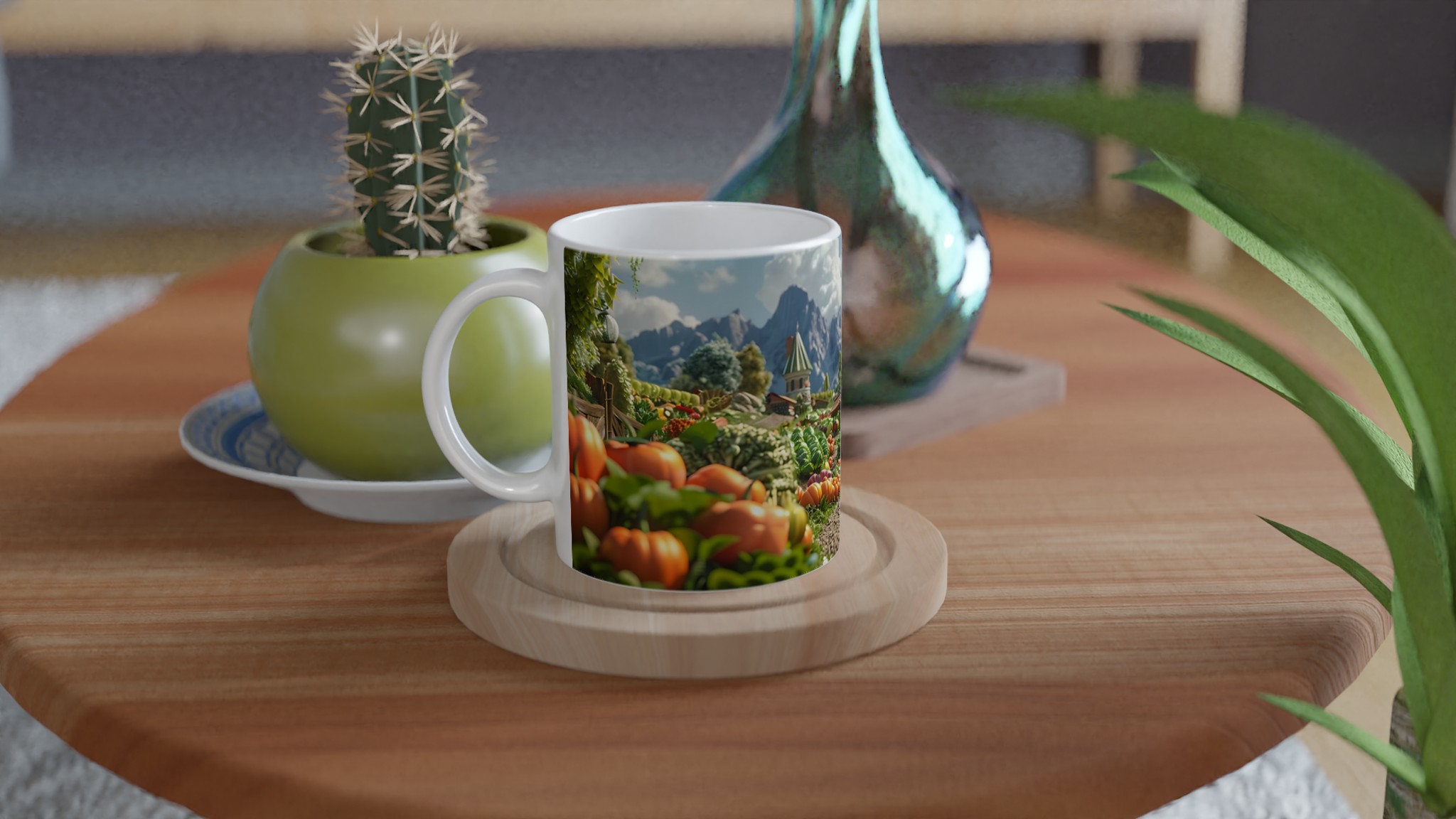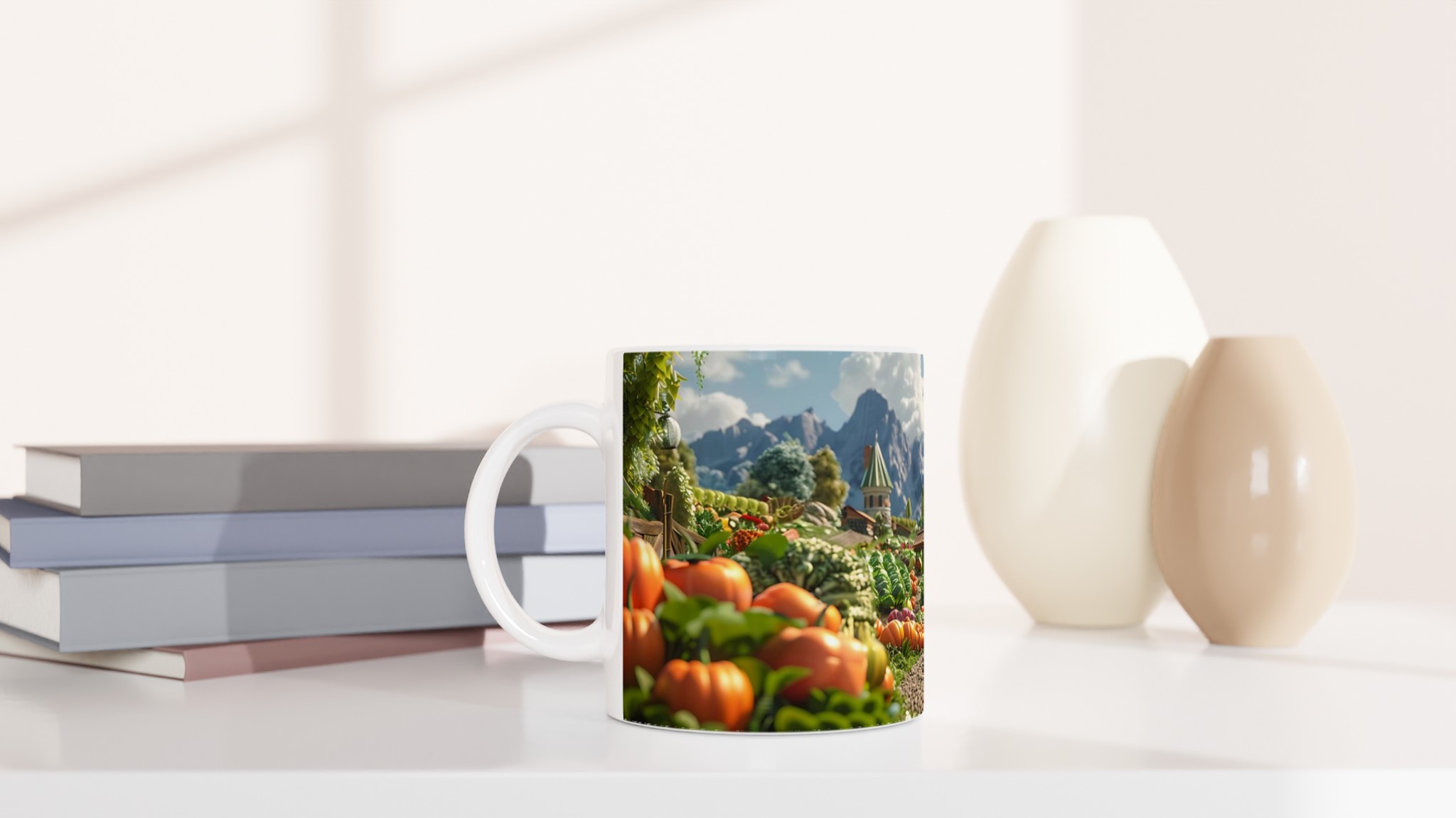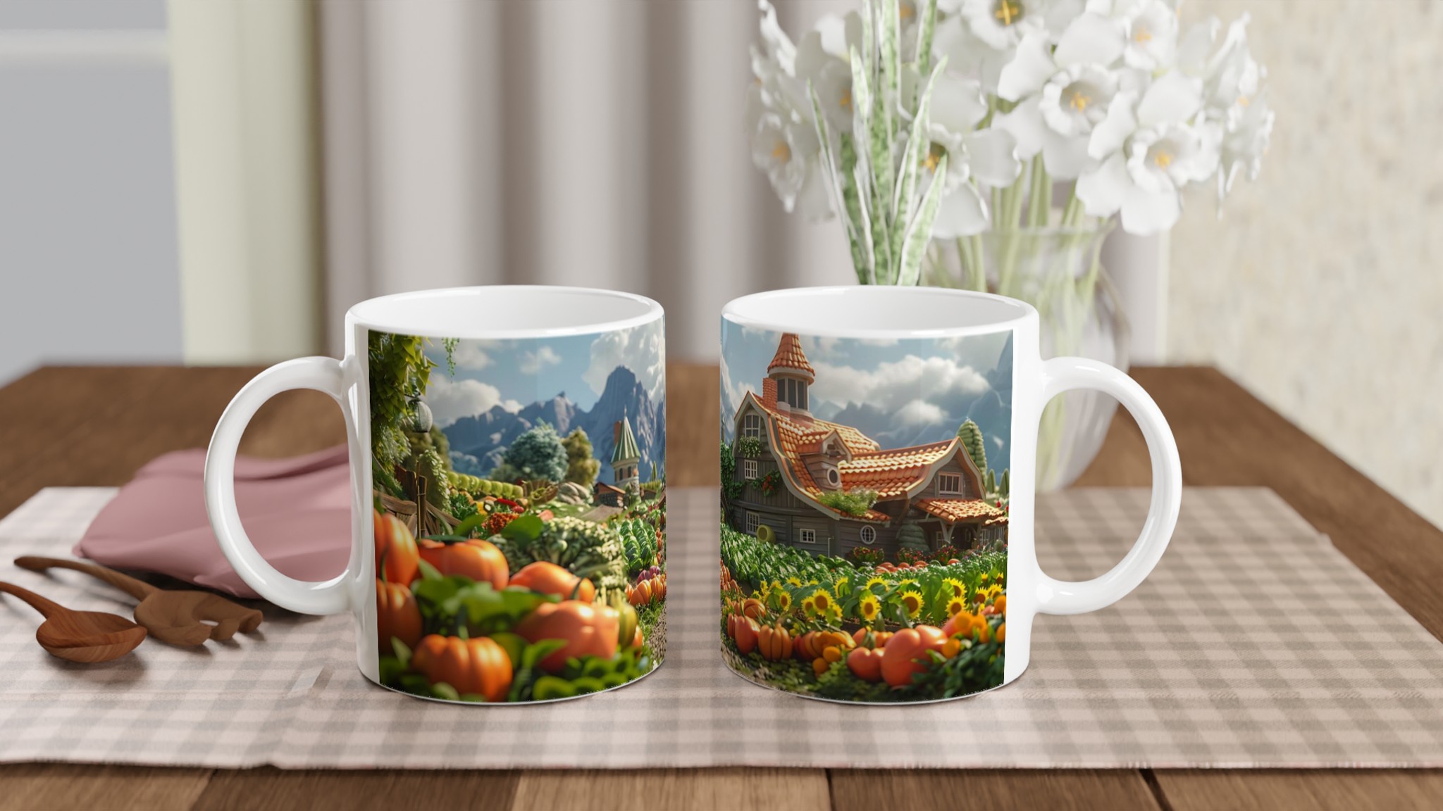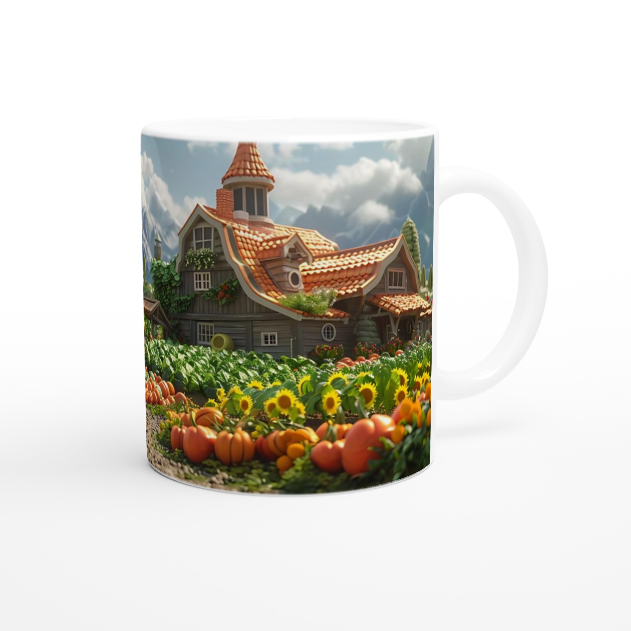 Fånga den lantliga charmen och den varma känslan från en drömsk bondgård med vår förtrollande keramiska mugg. Varje klunk blir en resa till ett idylliskt landskap, fyllt med solrosor, pumpor och pittoreska hus som påminner om en sagobok. Den här stilrena muggen blir snabbt en vardagsfavorit, perfekt för morgonkaffet, kvällens varma choklad eller när du bara vill njuta av en kopp te.