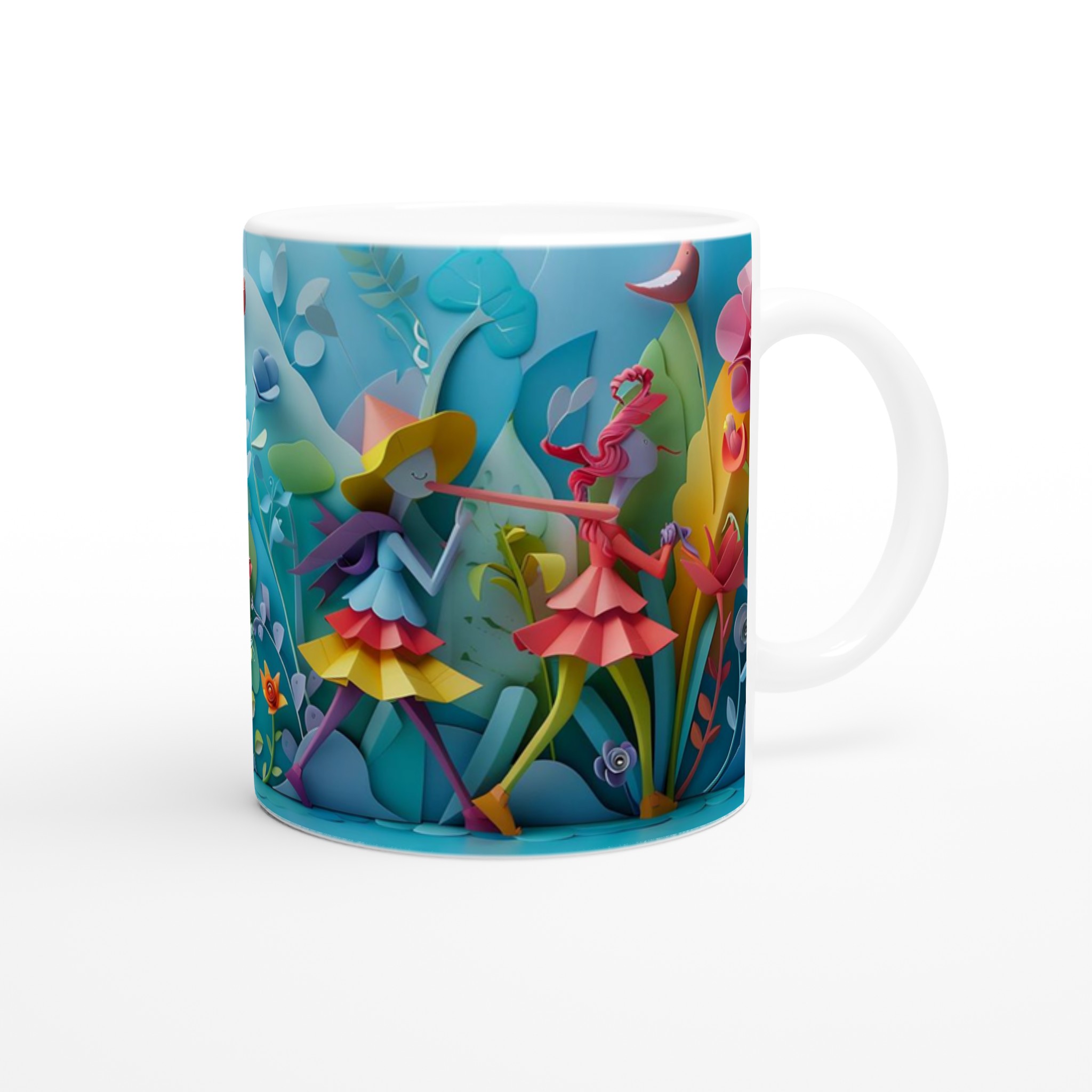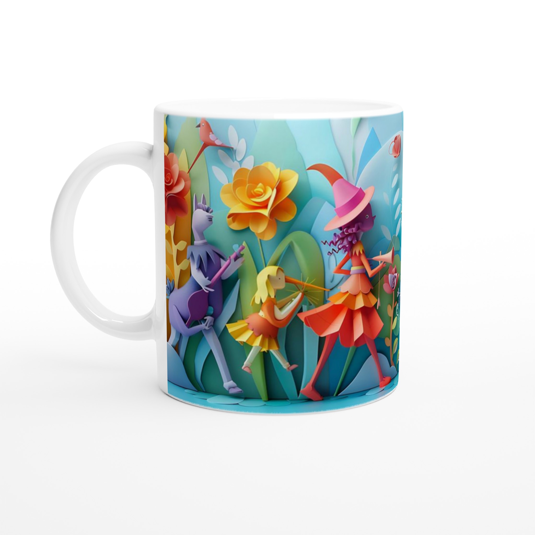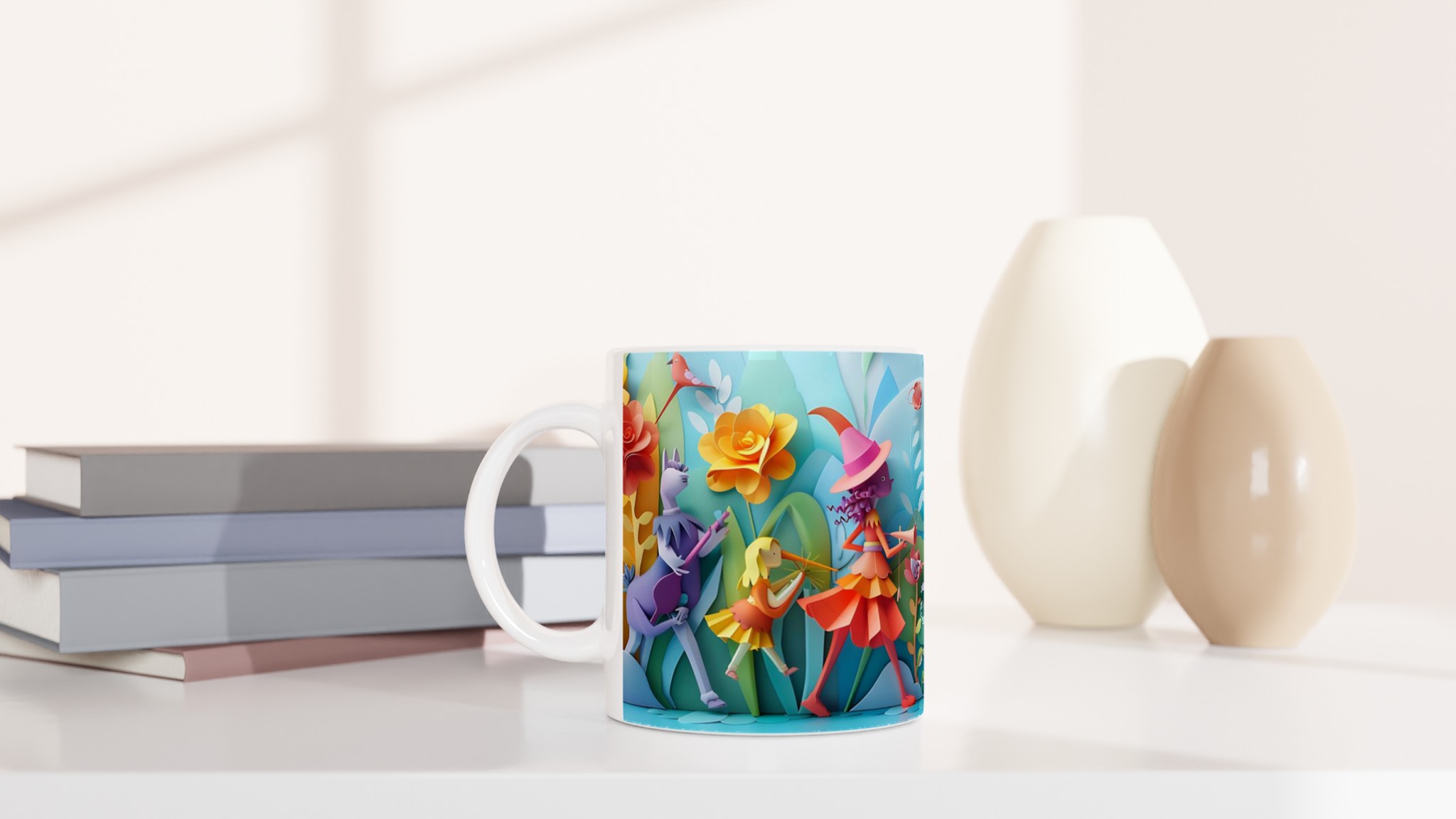 Låt varje klunk bli en resa till en magisk värld fylld med lekfullhet och färg! Denna förtrollande keramiska mugg fångar den glada och drömska stämningen från fantasifulla sagor, vilket gör den till den perfekta följeslagaren för dina dagliga stunder. Oavsett om det är morgonkaffet, kvällens varma choklad eller en lugn stund med te, kommer den att lysa upp din dag.