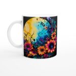 Låt dig svepas med av magin varje gång du tar en klunk ur denna förtrollande keramiska mugg. Med en design som speglar en drömlik månnatt, omfamnad av livfulla solrosor, frodiga lövverk och mystiska skogssiluetter, blir den en konstnärlig höjdpunkt i din vardag. De rika, akvarellinspirerade färgerna – från djupa kungsblå toner till strålande orange och rosa – skapar en känsla av lugn och glädje.