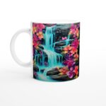 Låt dig förtrollas varje dag med denna Keramisk mugg, prydd med en majestätisk hjort i bländande neonfärger, omgiven av ett flor av magiska blommor. Denna stilrena mugg blir snabbt en vardagsfavorit och ett konstverk i din hand. Perfekt för morgonkaffet, kvällens varma choklad eller när du bara vill njuta av en kopp te och drömma dig bort. Den blanka vita ytan gör att trycken framhävs med klara och levande färger, som håller sig fina även efter många turer i mikron och diskmaskinen.