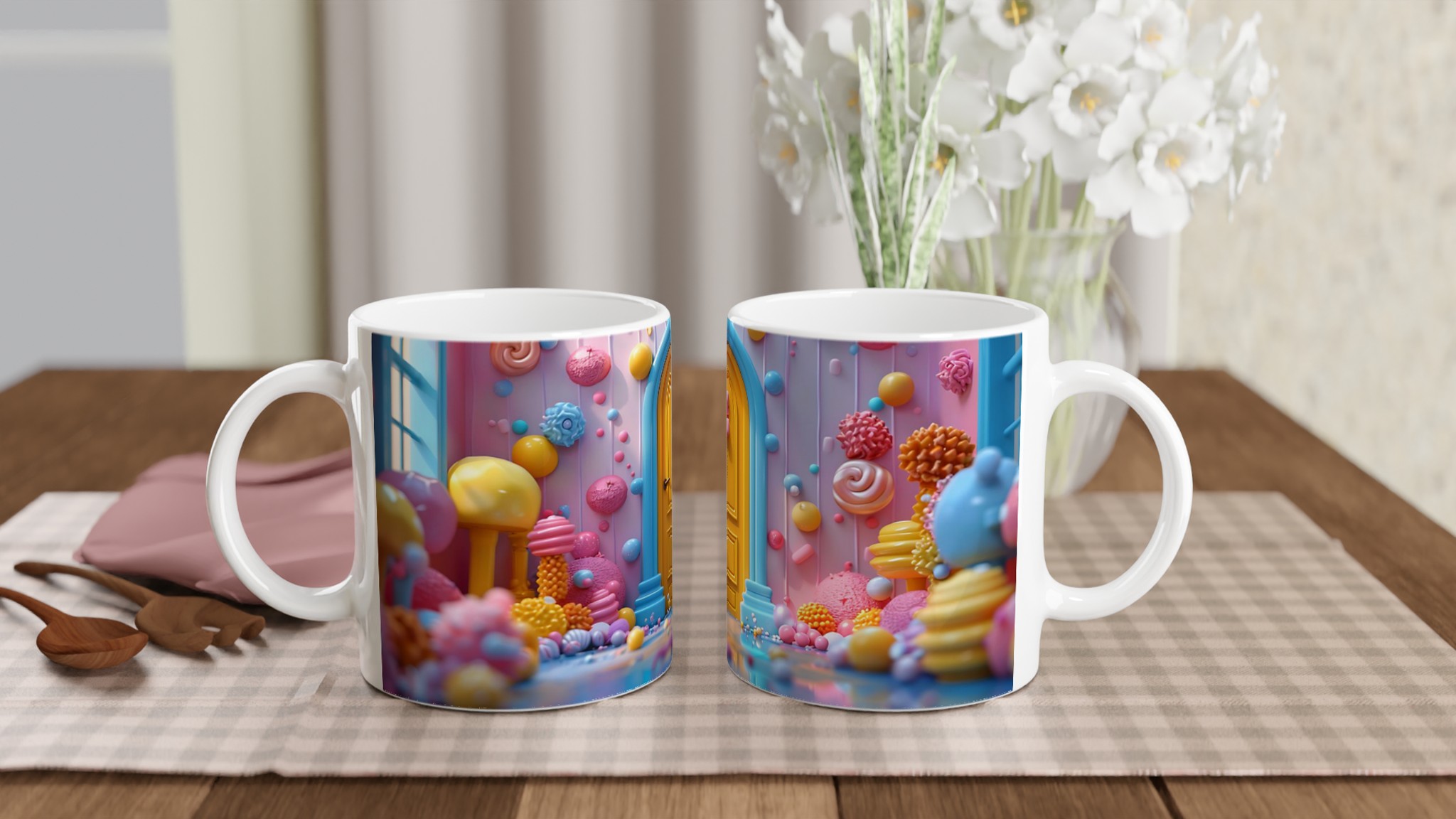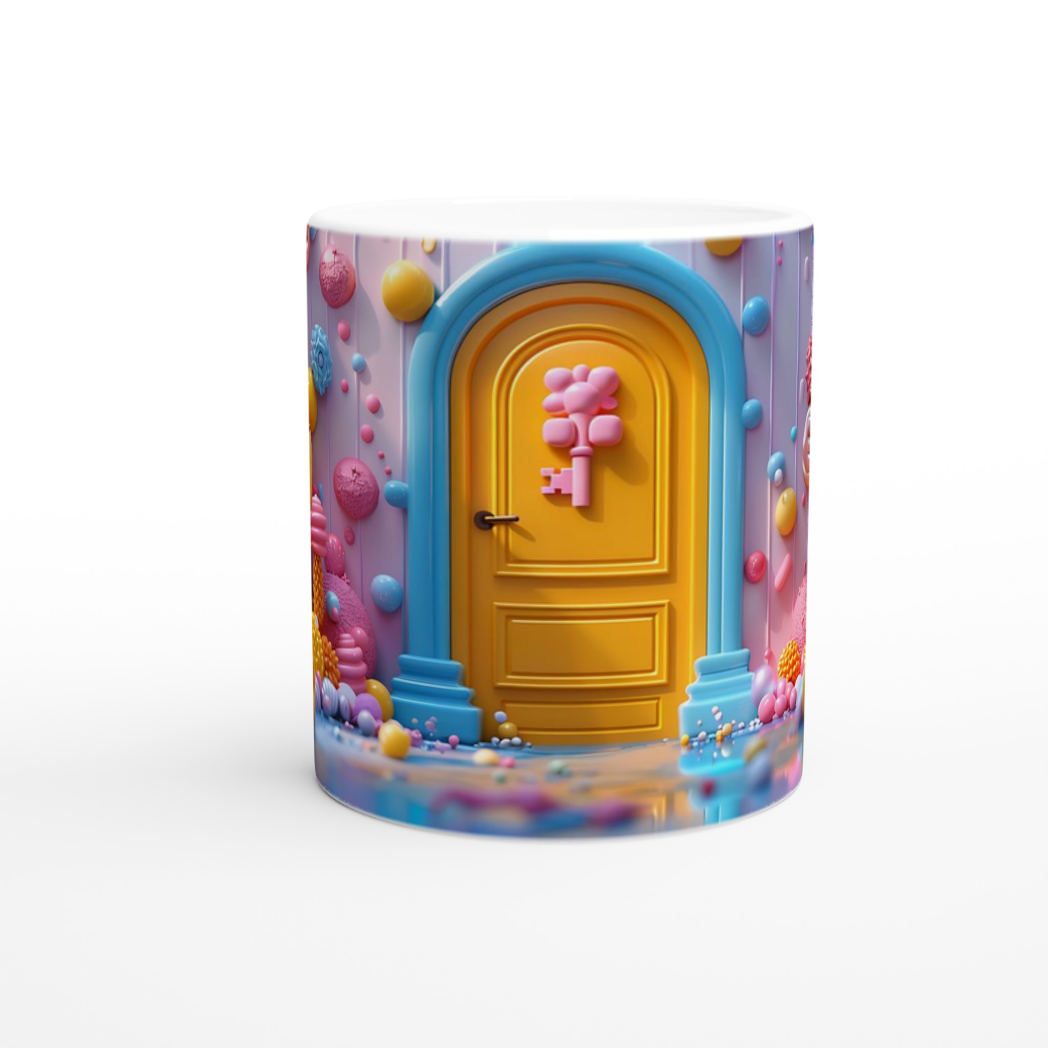 Öppna dörren till en värld av förtrollning med denna magiska keramiska mugg, inspirerad av en ljuvlig drömvärld i pastell. Denna stilrena mugg blir snabbt en vardagsfavorit, perfekt för att förgylla morgonkaffet, kvällens varma choklad eller när du bara vill njuta av en kopp te och drömma dig bort. Den blanka ytan lyfter fram tryck med klara och levande färger, som håller sig fina även efter otaliga turer i mikron och diskmaskinen, redo för varje nytt äventyr.