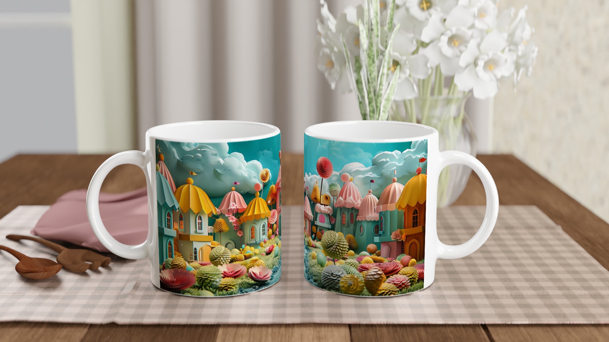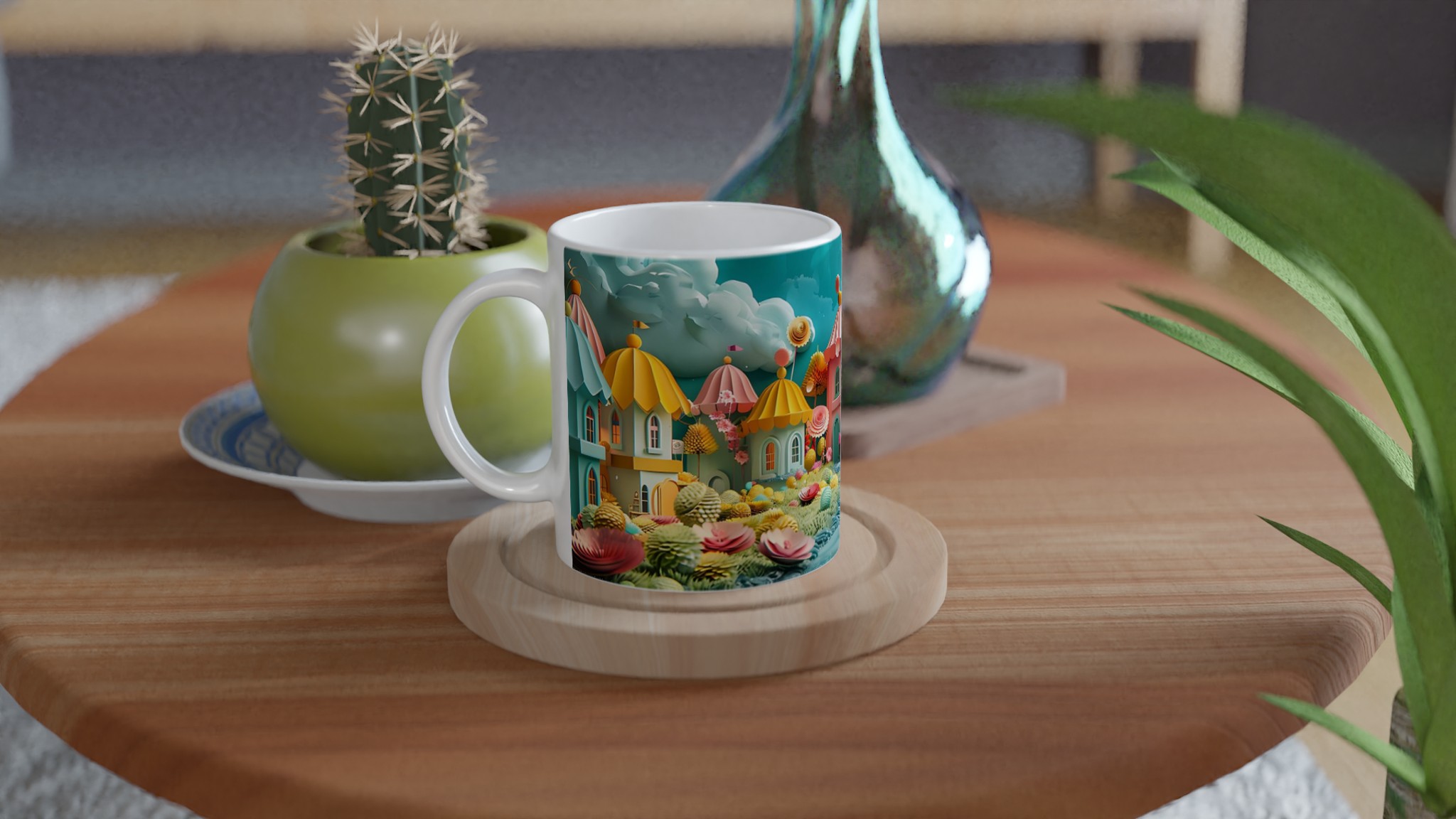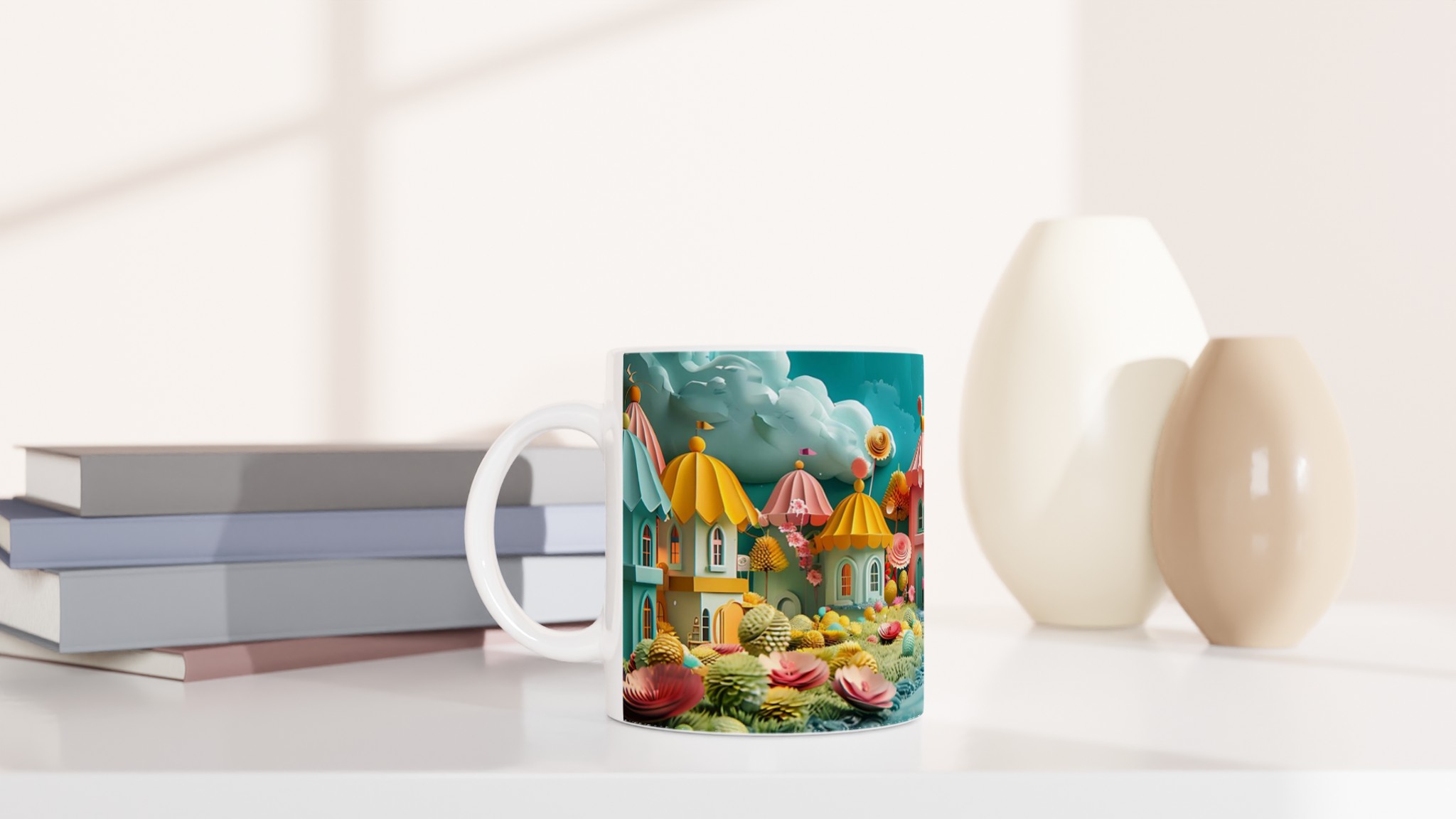 Välkommen till en värld av pastellfärger och fantasifulla detaljer med vår Keramiska Mugg. Denna mugg är inte bara en behållare för din dryck – den är en inbjudan till en liten verklighetsflykt, inspirerad av lekfulla landskap och drömska städer. Låt varje klunk transportera dig till en plats fylld av glädje och skönhet, oavsett om det är morgonkaffet, eftermiddagsteet eller kvällens varma choklad.