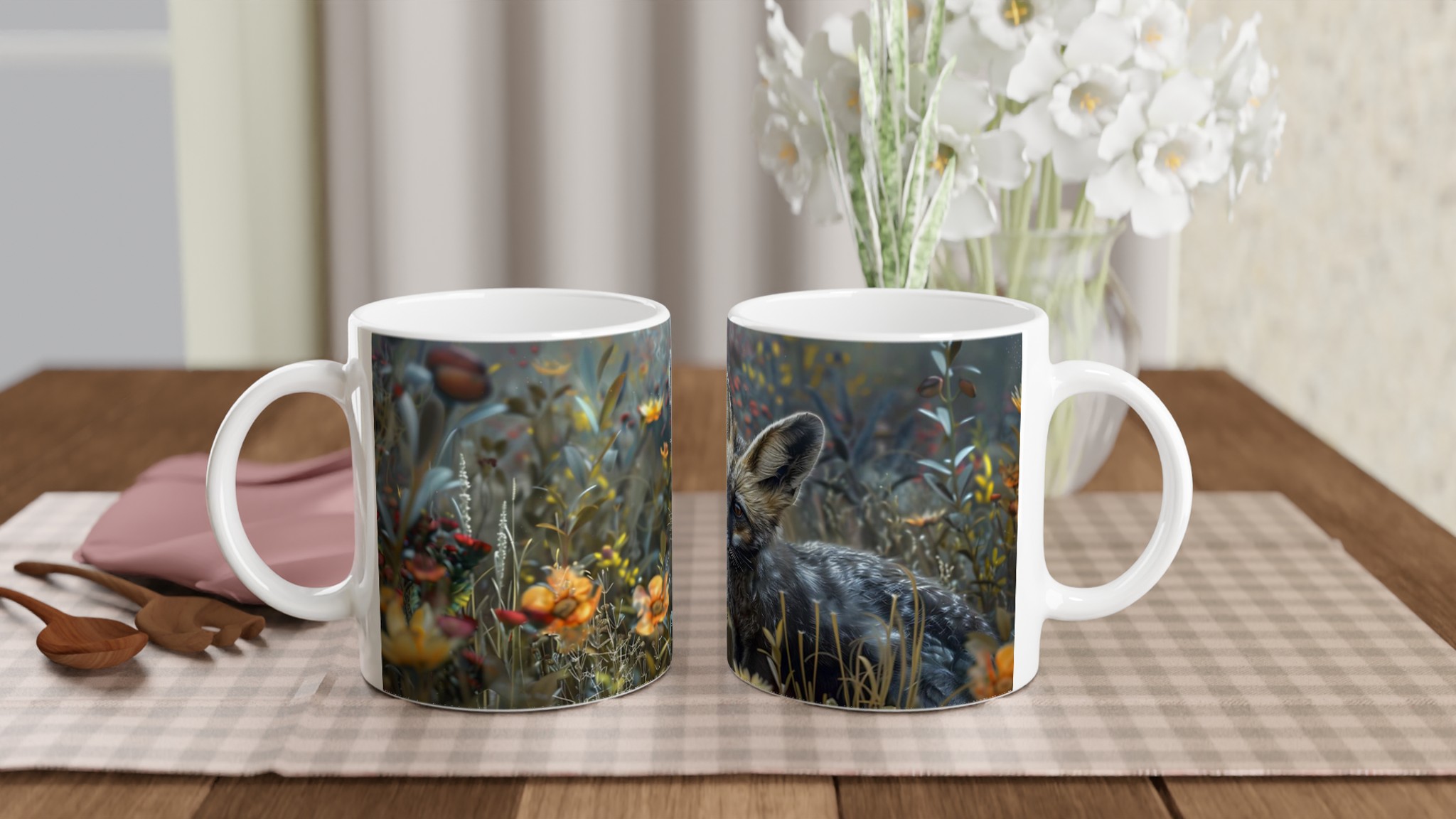 Stig in i en förtrollad värld varje gång du tar en klunk från denna unika keramiska mugg. Motivet av en bedårande räv i en sagolik blomsteräng fångar ögonblickets magi och lugn, perfekt för dig som drömmer dig bort till naturens skönhet. Denna mugg blir snabbt en favorit, oavsett om det är för morgonkaffet, kvällens varma choklad eller när du bara vill njuta av en kopp te i lugn och ro. Den blanka ytan framhäver motivets klara och levande färger, som håller sig fina även efter många turer i mikron och diskmaskinen.