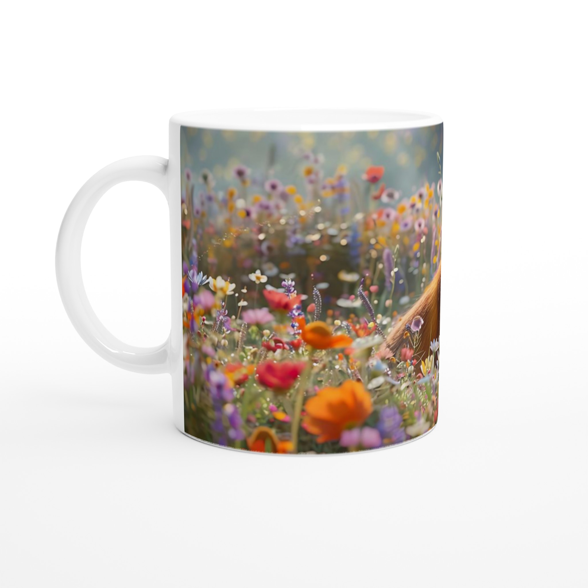Fånga magin med vår förtrollande mugg med en räv i en blomstrande äng, omgiven av levande färger och ett drömskt, sagolikt ljus. Denna design är perfekt för dig som älskar naturens skönhet och vill föra in en känsla av lugn och glädje i din vardag. Den blanka vita ytan ger ett skarpt och levande tryck som verkligen sticker ut, oavsett om det är en personlig design, ett roligt citat eller en present till någon du tycker om.