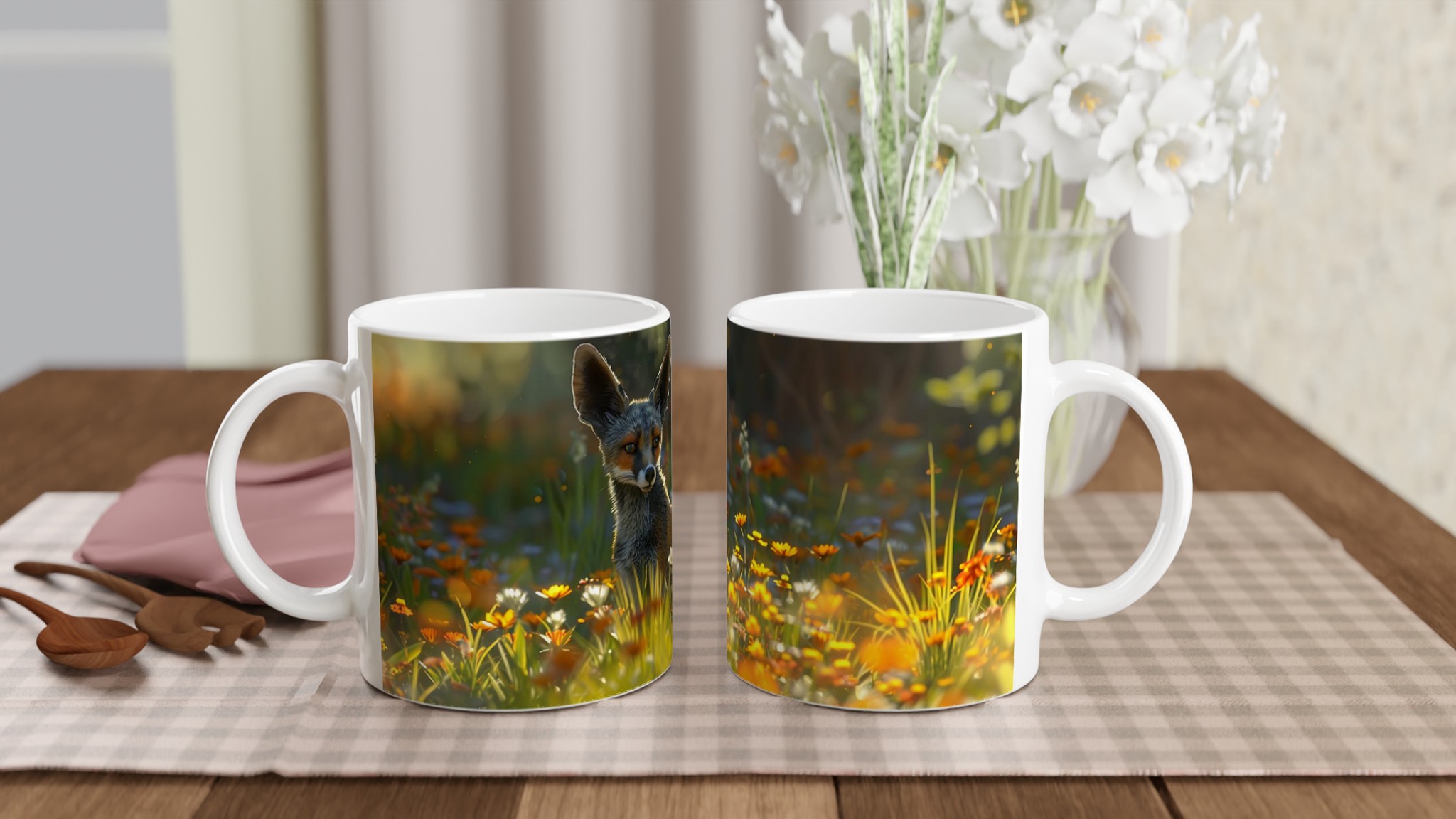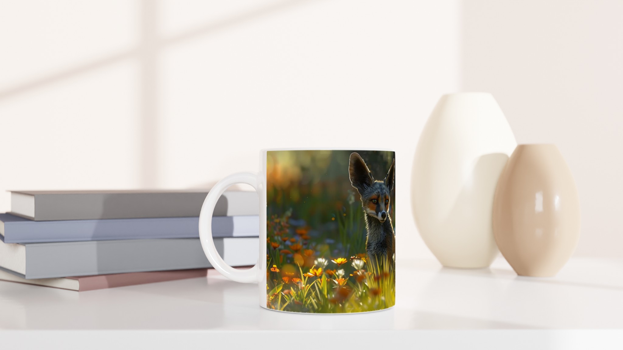 Fånga den magiska känslan av en rävhvalp i en solbelyst sommaräng med denna förtrollande keramiska mugg. Designen, inspirerad av naturens lugn och en ung rävs nyfikenhet bland gyllene blommor, gör varje sip till en stunds avkoppling. Den här stilrena muggen blir snabbt en vardagsfavorit. Perfekt för morgonkaffet, kvällens varma choklad eller när du bara vill njuta av en kopp te.