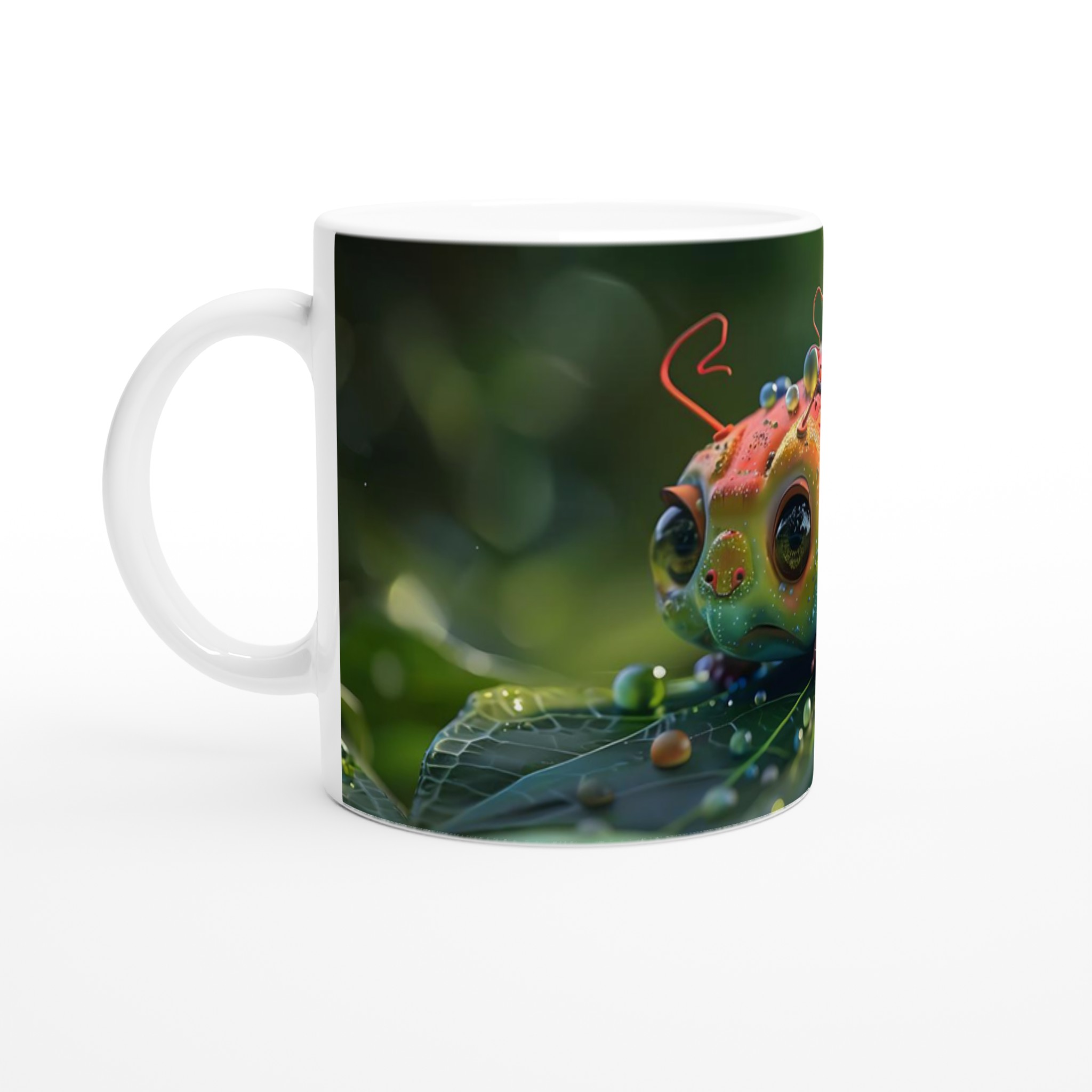 Fånga magin från naturen med vår underbara regnbågslarv-mugg! Denna mugg förvandlar varje sipp till ett äventyr, med sin bedårande design inspirerad av fantasifulla, färgglada varelser täckta av daggpärlor. Den blanka vita ytan är den perfekta duken för denna drömlika illustration, som ger liv åt regnbågens alla färger och en känsla av lekfull förtrollning till din vardag. Välj mellan en rad livfulla färger för att matcha din personlighet – från lugn ”Ceramic Blue” till energisk ”Ceramic Red” – och skapa en mugg som är lika unik som du är.