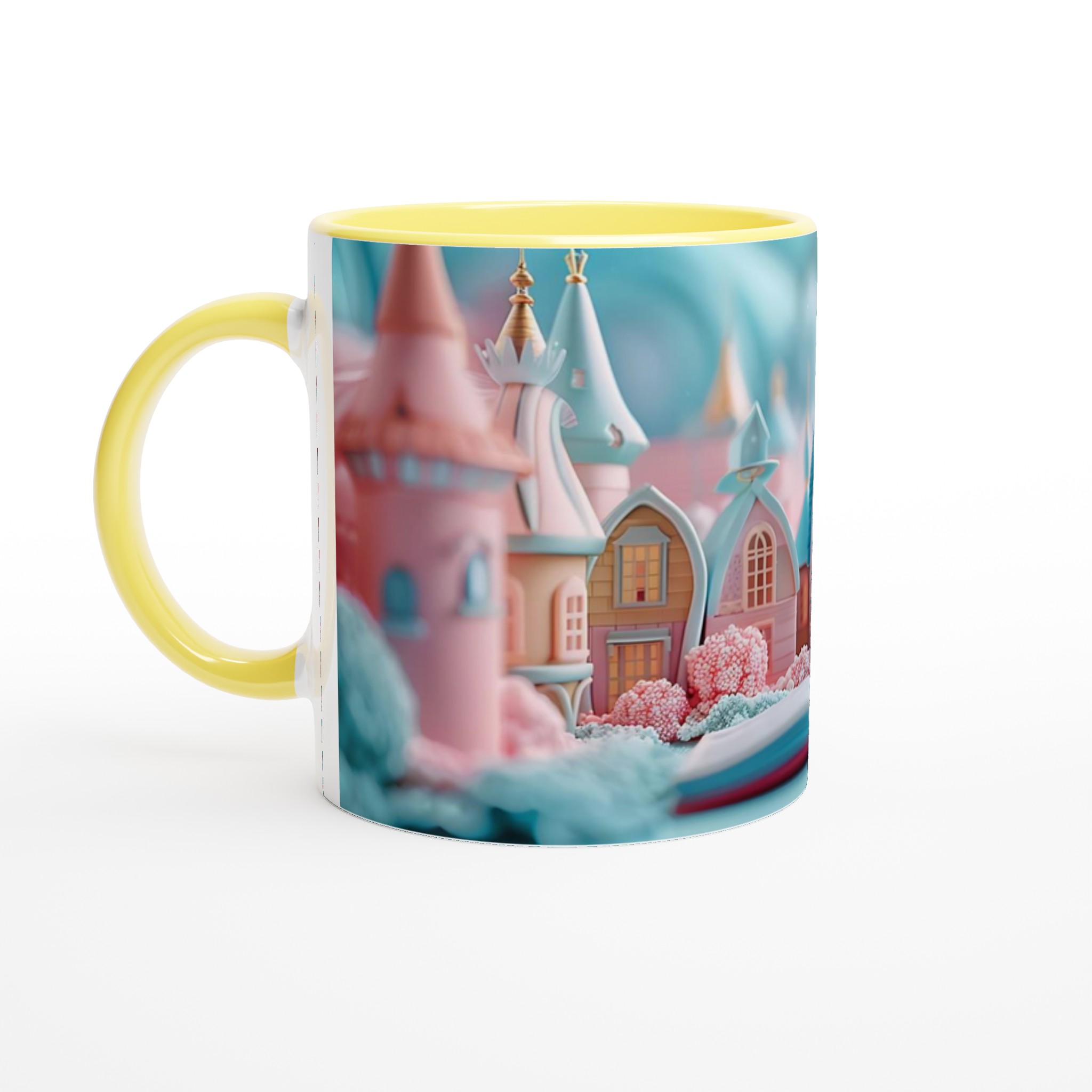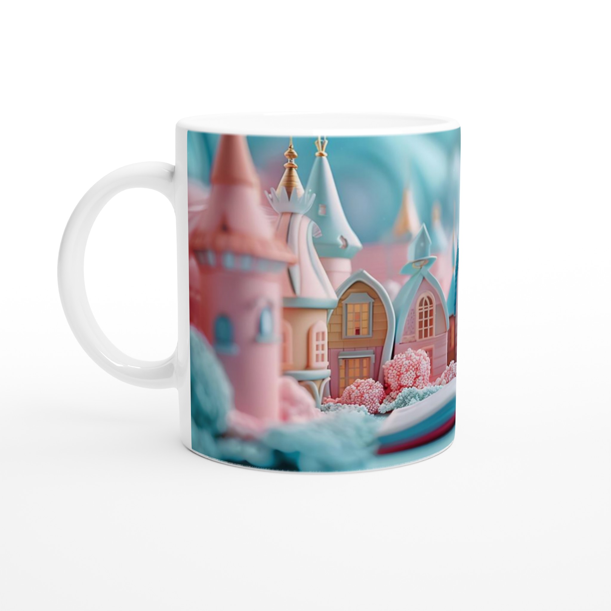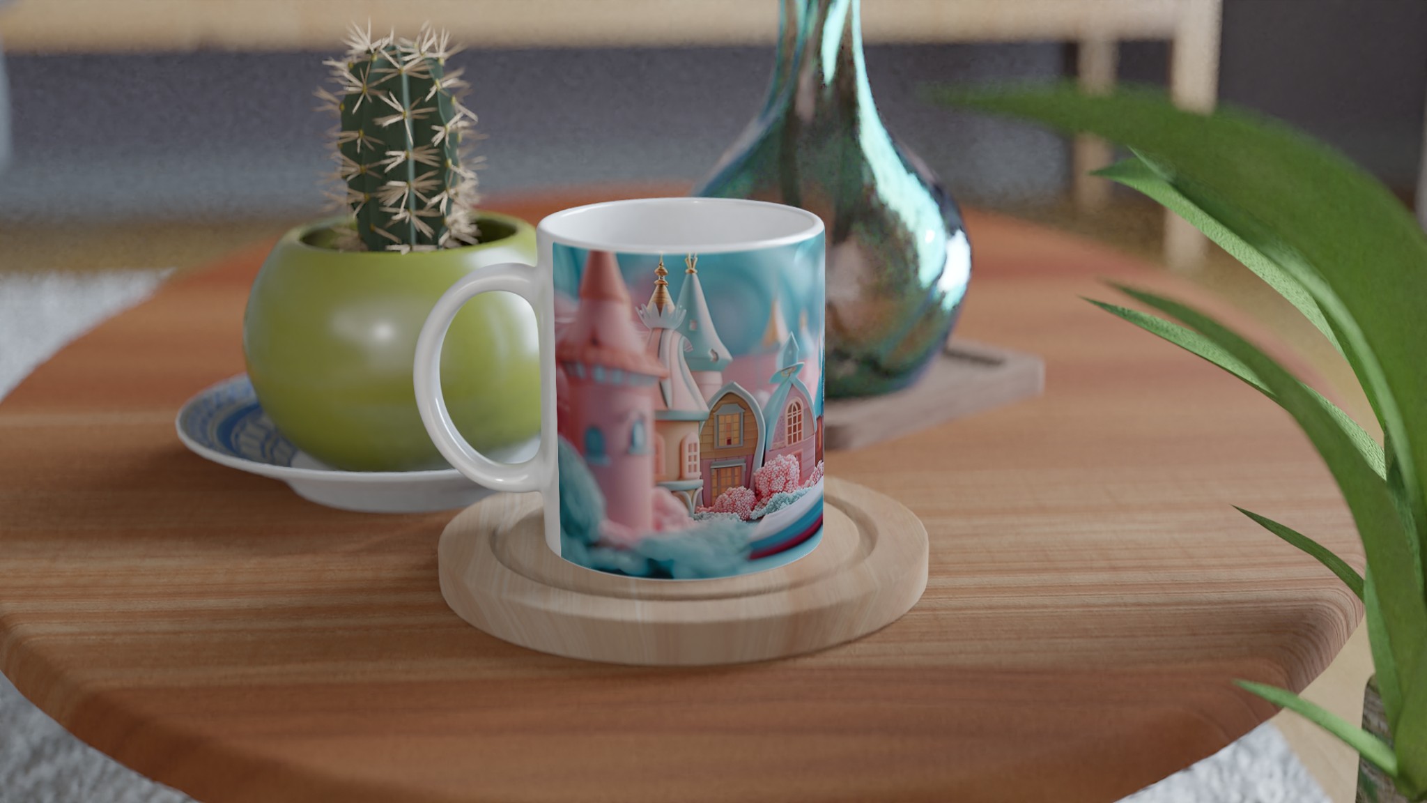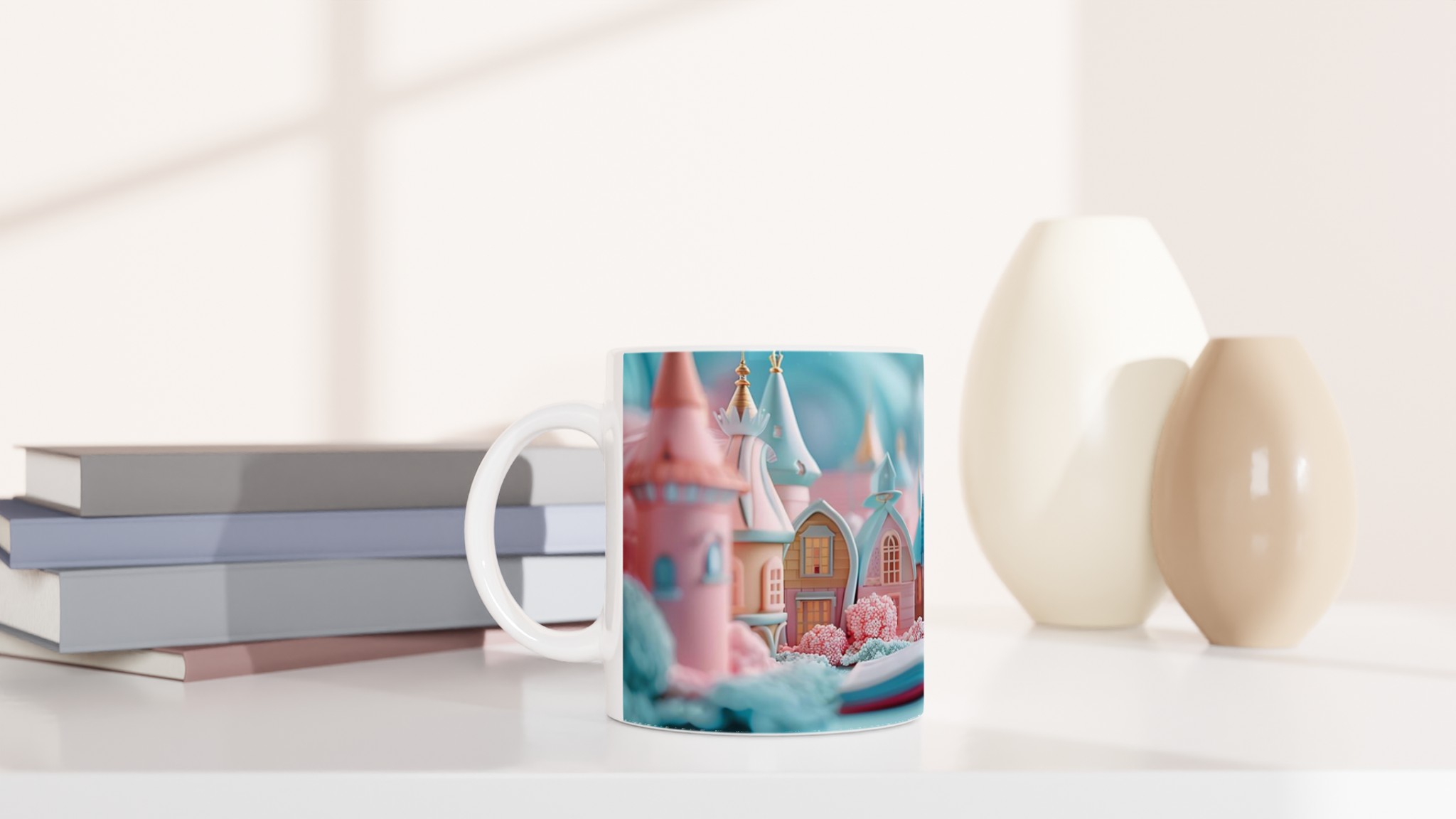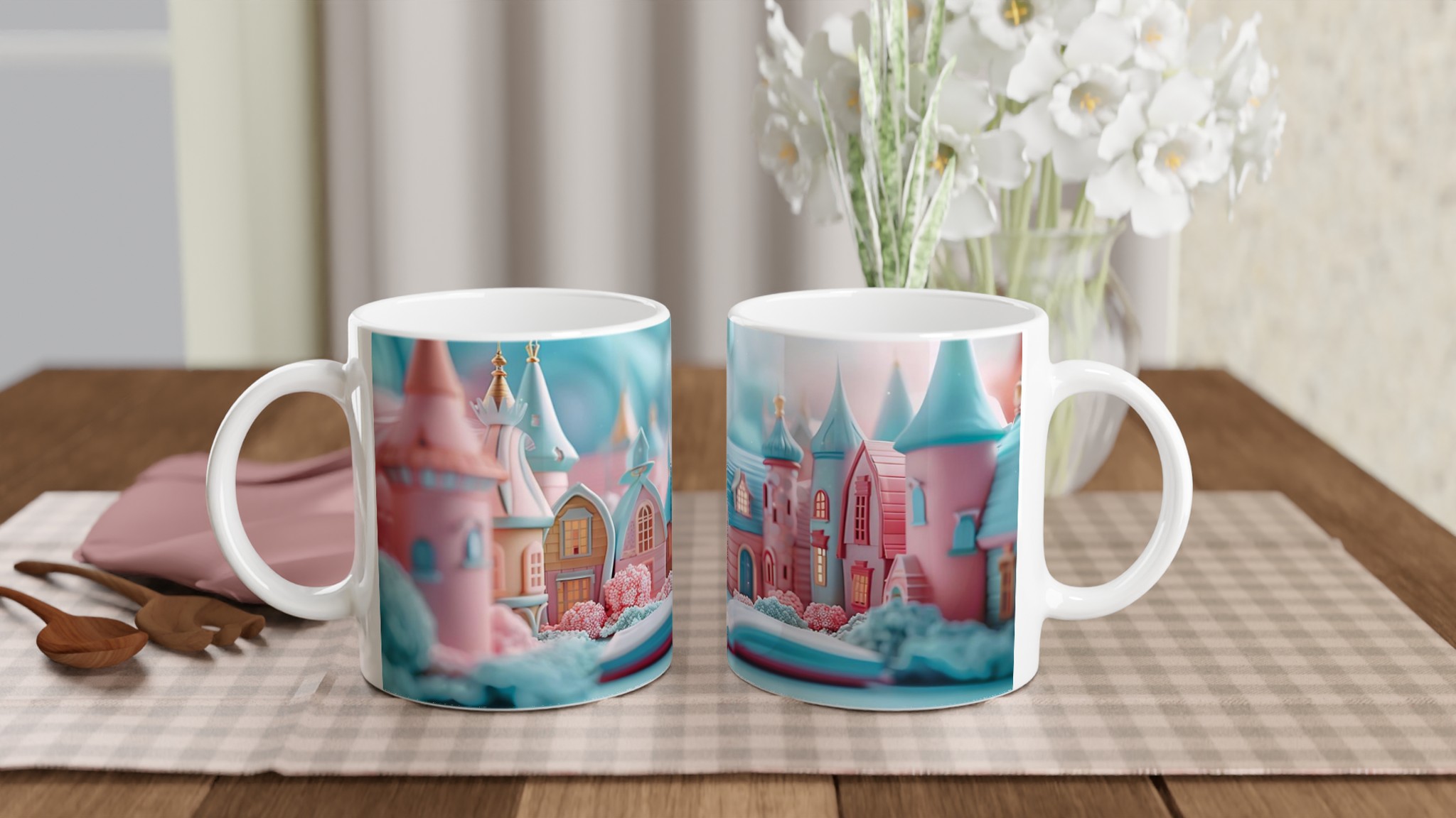 Fånga magin med vår förtrollande sagoslottmugg, perfekt för dig som älskar en touch av fantasi i vardagen. Denna stilrena keramiska mugg blir snabbt en vardagsfavorit, idealisk för ditt morgonkaffe, kvällens varma choklad eller när du bara vill njuta av en kopp te i en värld av pastellfärger. Med sin blanka yta framhävs alla tryck med klara och levande färger, som håller sig vackra även efter många turer i mikron och diskmaskinen.