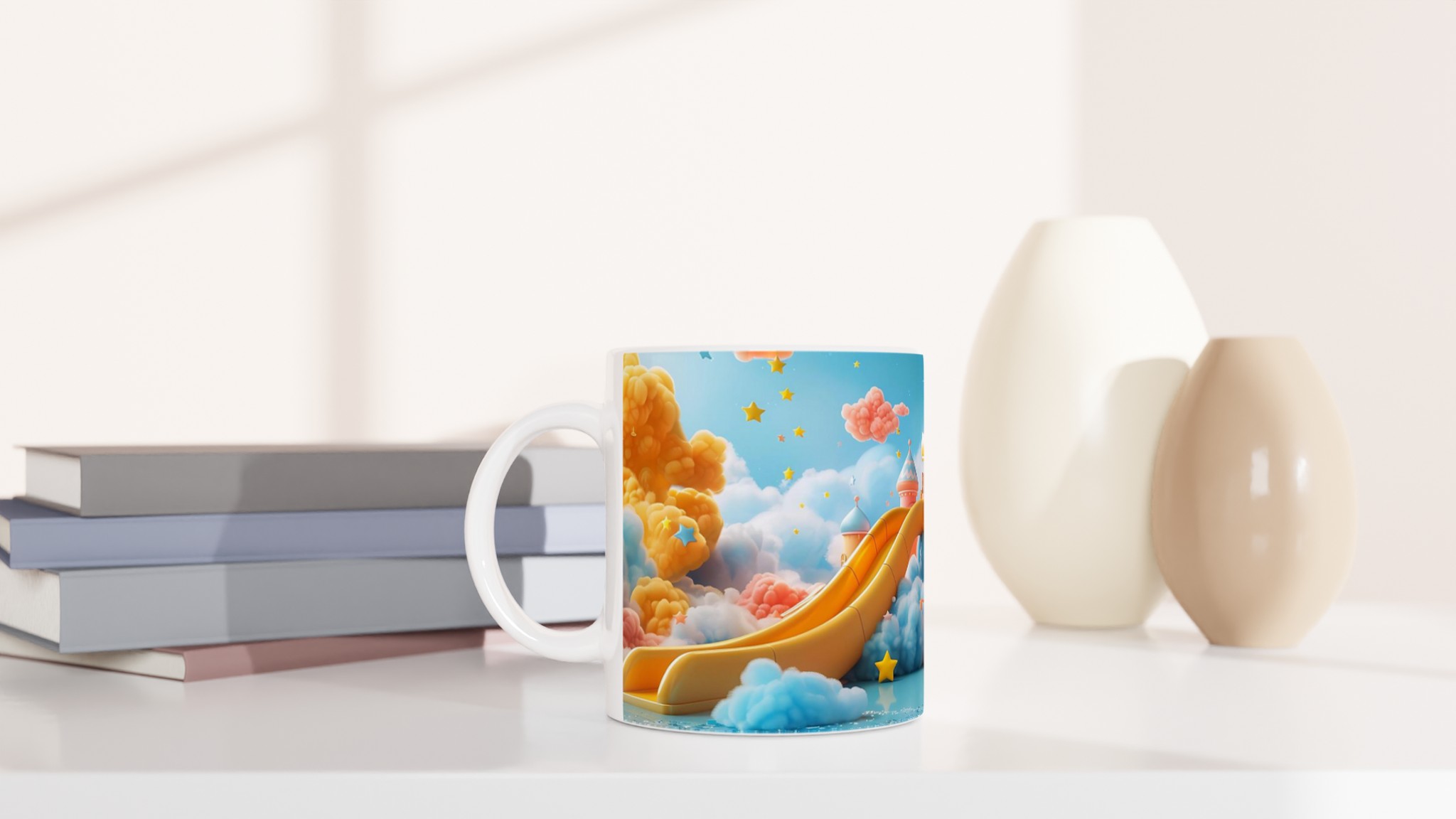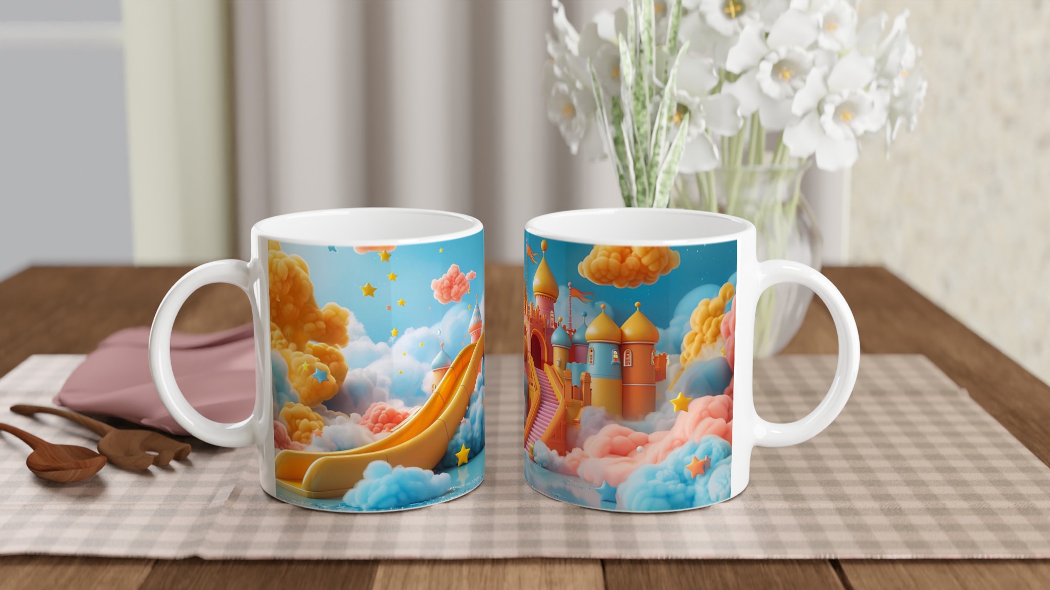 Stig in i en värld av fantasi med denna förtrollande keramiska mugg, inspirerad av lekfulla sagoslott och drömlika molnlandskap. Med sin mjuka pastellpalett och mysiga charm blir den snabbt din nya vardagsfavorit. Perfekt för morgonkaffet, kvällens varma choklad eller när du bara vill njuta av en kopp te medan du drömmer dig bort till ett molnslott.