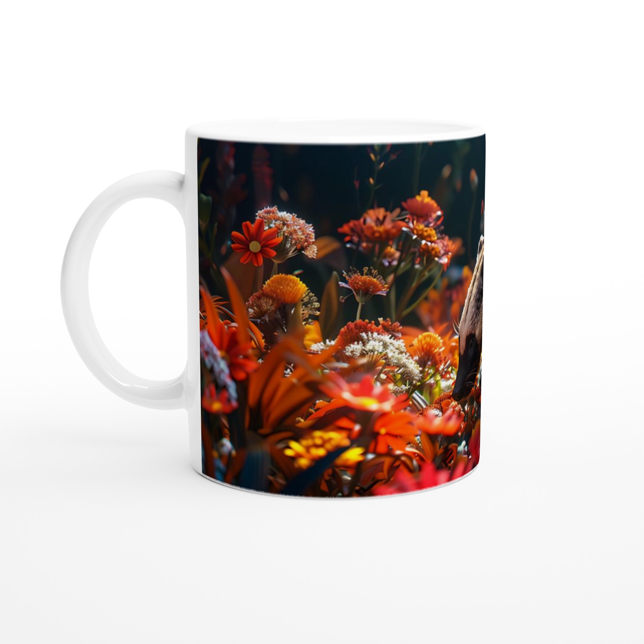 Inspirerad av djupa skogar och mystiska varelser, presenterar denna mugg en förtrollande bild av en grävling bland glödande höstblommor. Den rika färgpaletten och detaljrikedomen skapar en känsla av äventyr och stillhet, perfekt för naturälskaren. Den blanka vita ytan ger ett skarpt och levande tryck som verkligen sticker ut, oavsett om det är en personlig design, ett roligt citat eller en present till någon du tycker om.