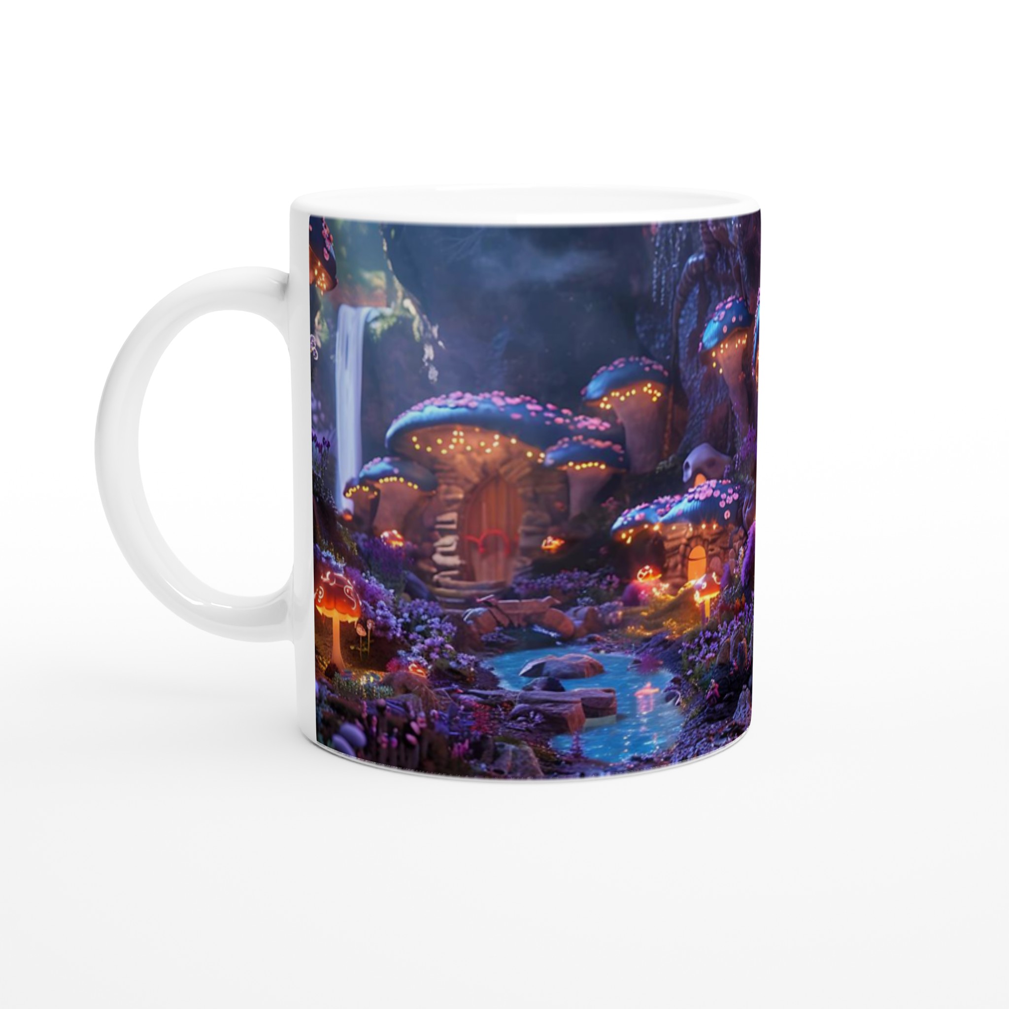 Stig in i en värld av förtrollning med denna magiska keramiska mugg, inspirerad av en hemlighetsfull skog fylld av lysande svamphus och gnistrande bäckar. Föreställ dig att du sippar på din favoritdryck, omsluten av den drömska atmosfären av lila blommor och varmt ljus. Denna mugg blir snabbt en vardagsfavorit, perfekt för morgonkaffet, kvällens varma choklad eller när du bara vill njuta av en kopp te och drömma dig bort.
