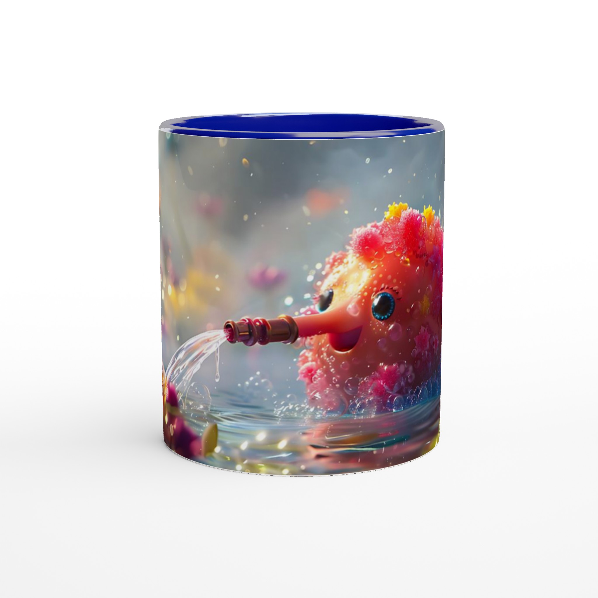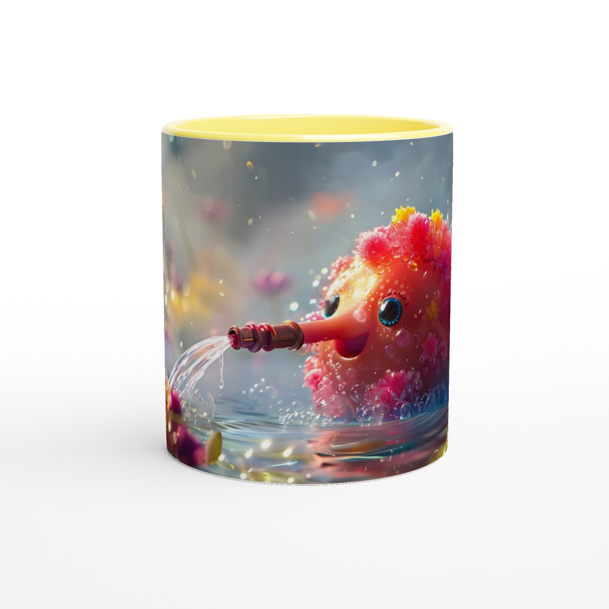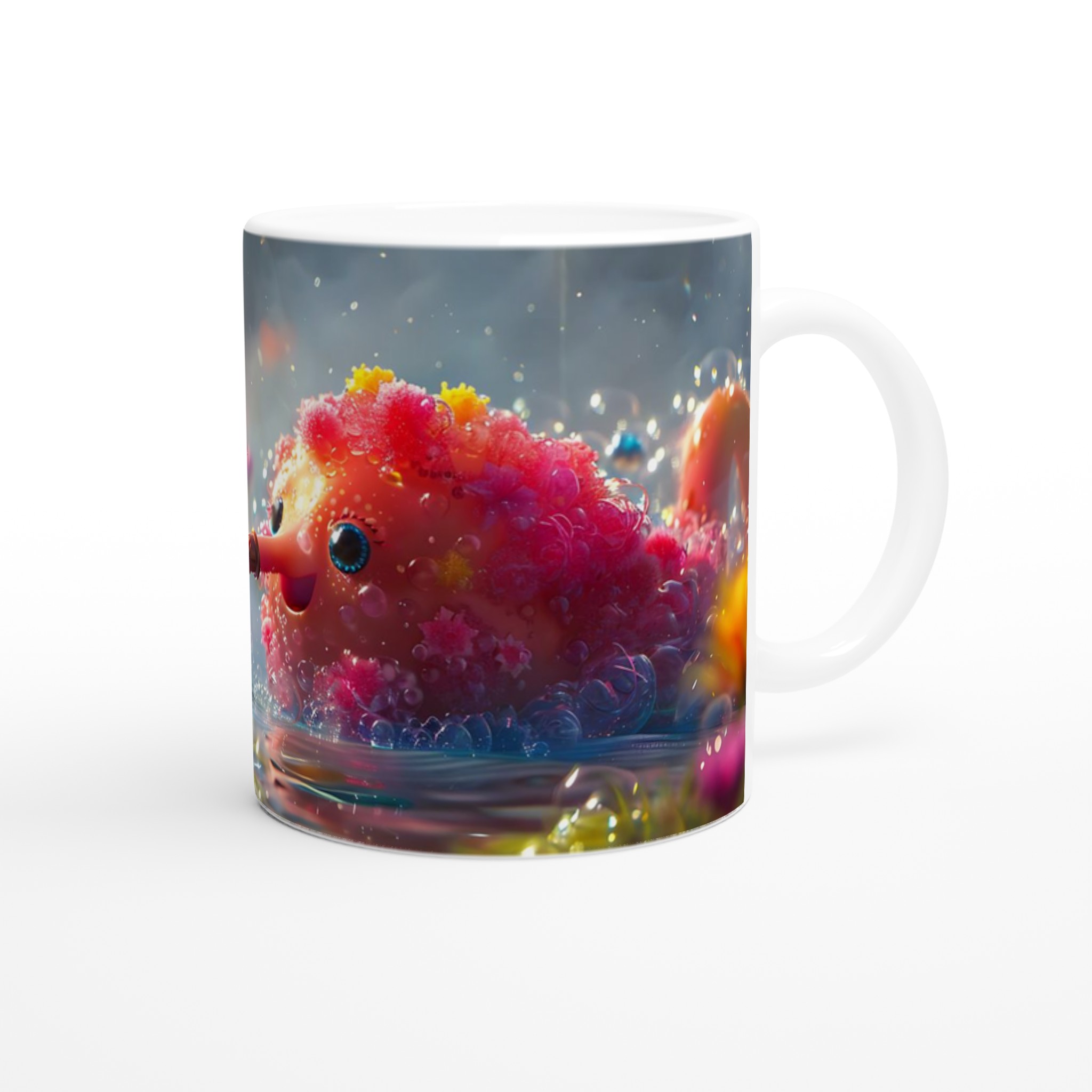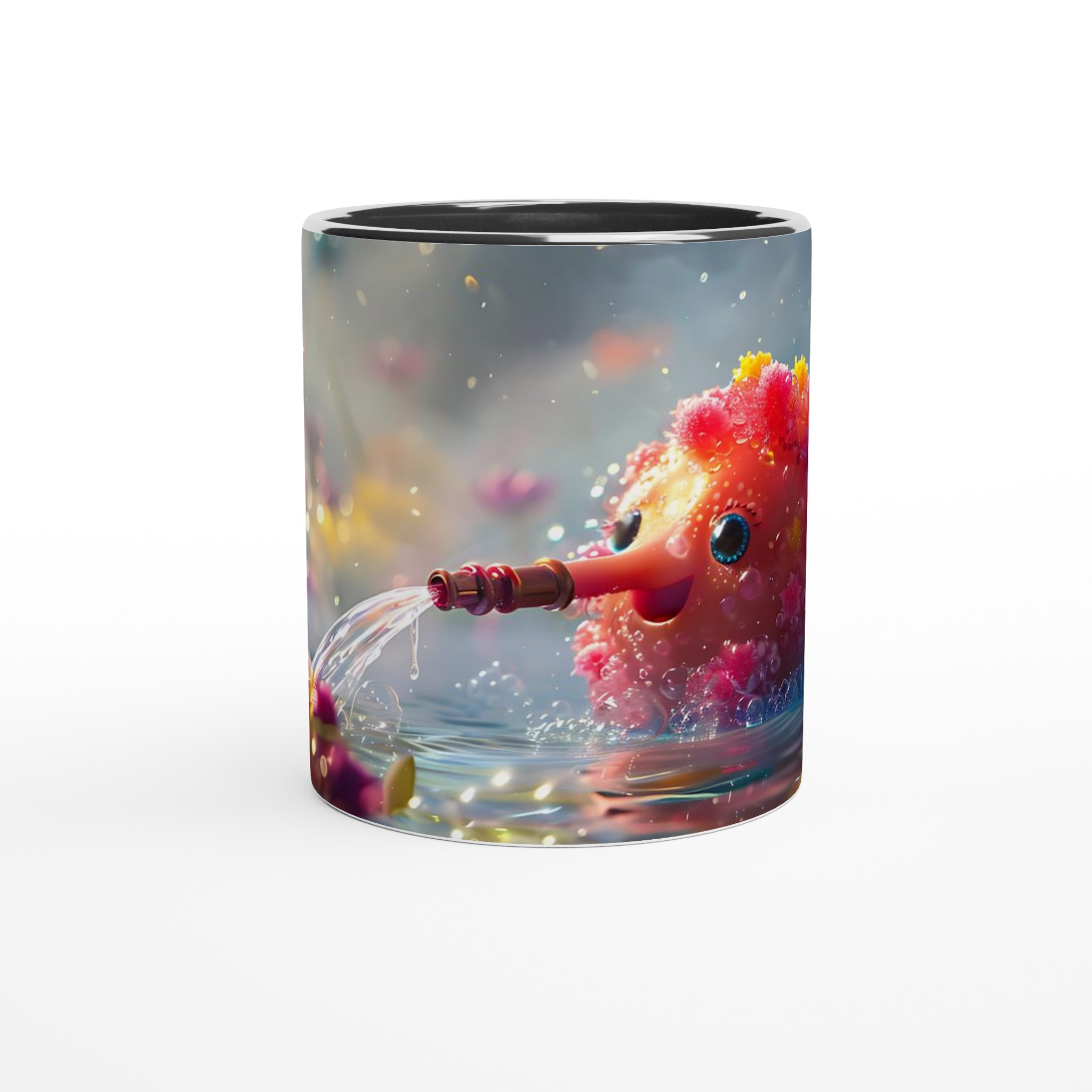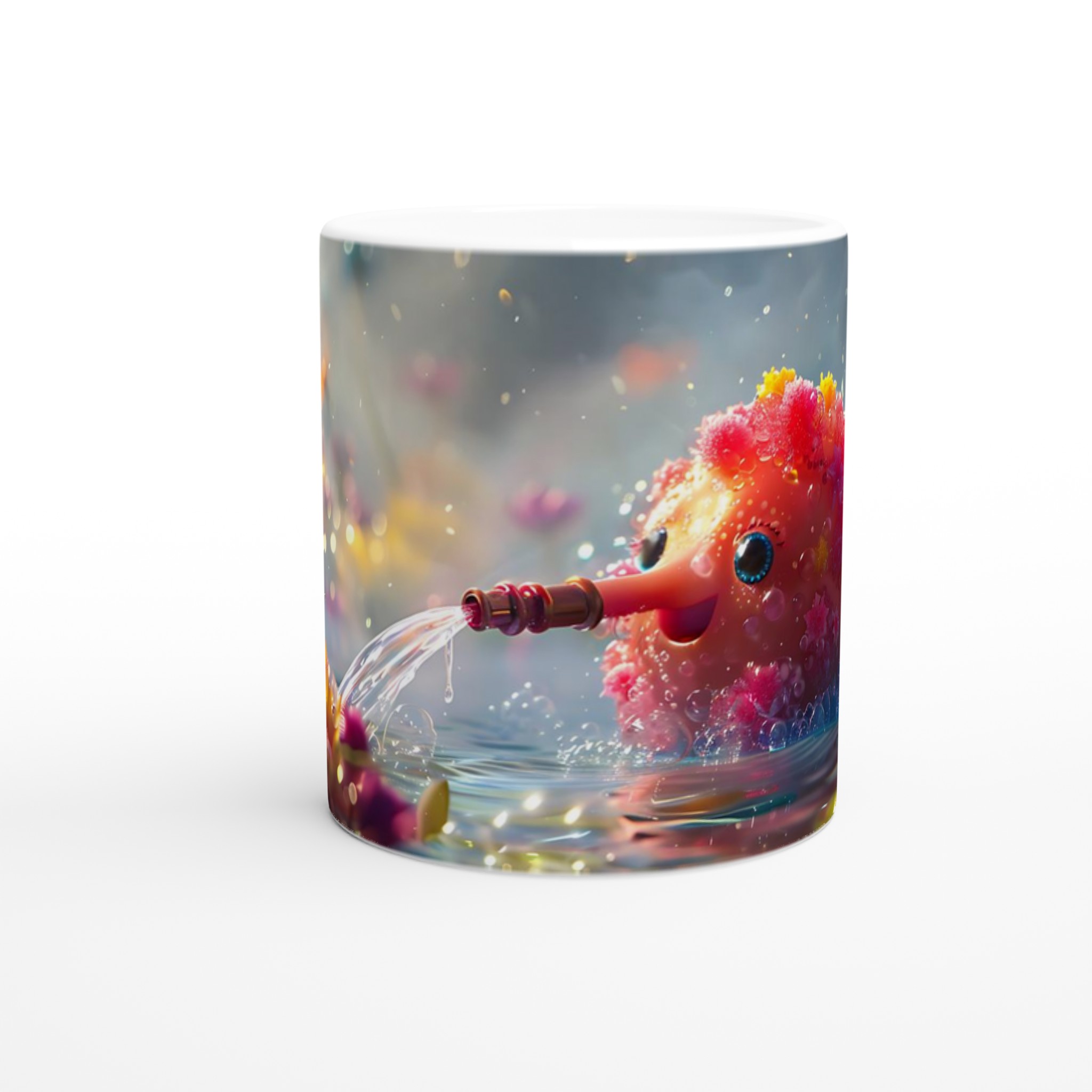 Låt dig förtrollas varje dag med denna charmiga keramikmugg som fångar en fantasifull och bubblande glädje! Inspirerad av bilden av en söt varelse som sprutar vatten bland glittrande blommor, förvandlar denna mugg dina dagliga dryckesstunder till ett minikalas. Den utstrålar en lekfull och positiv energi med sin unika design som framträder strålande på den blanka ytan.
