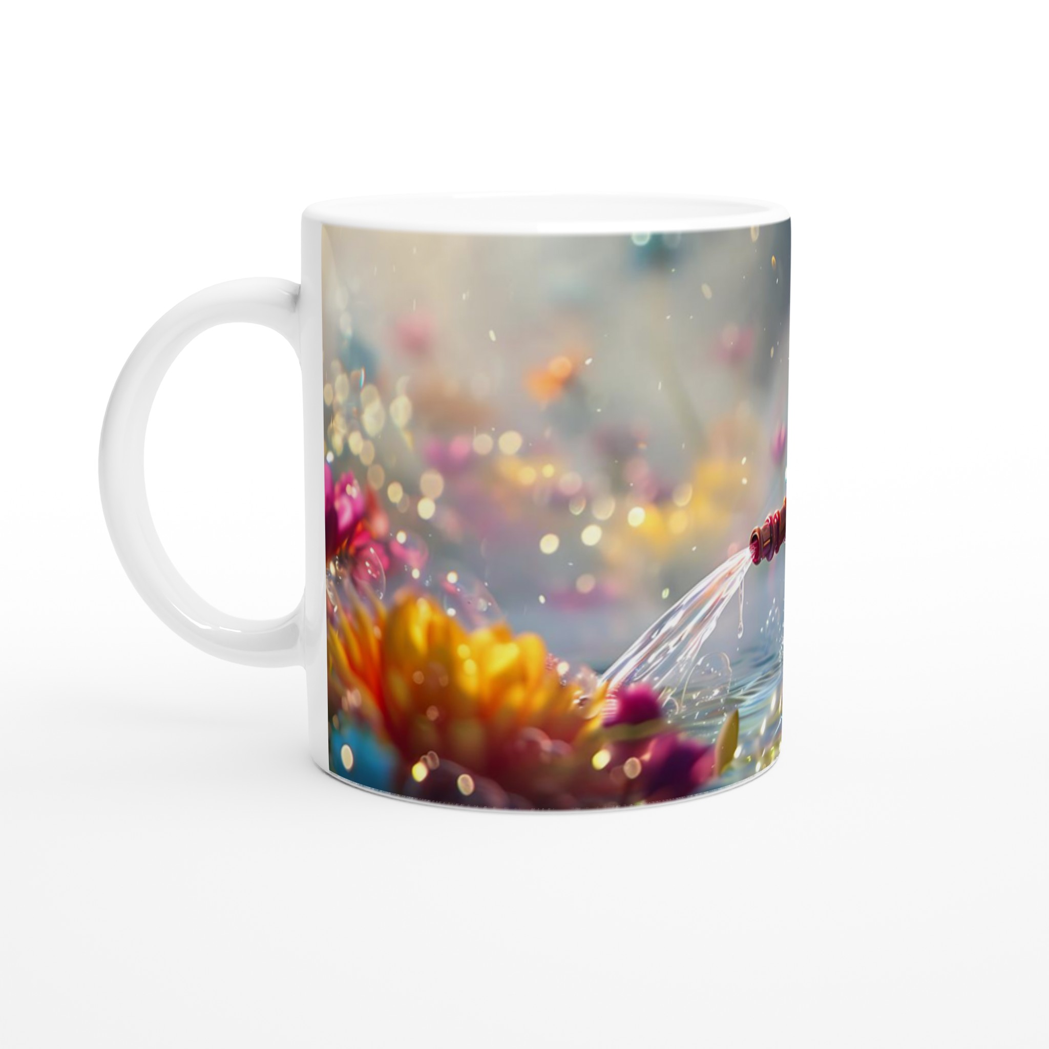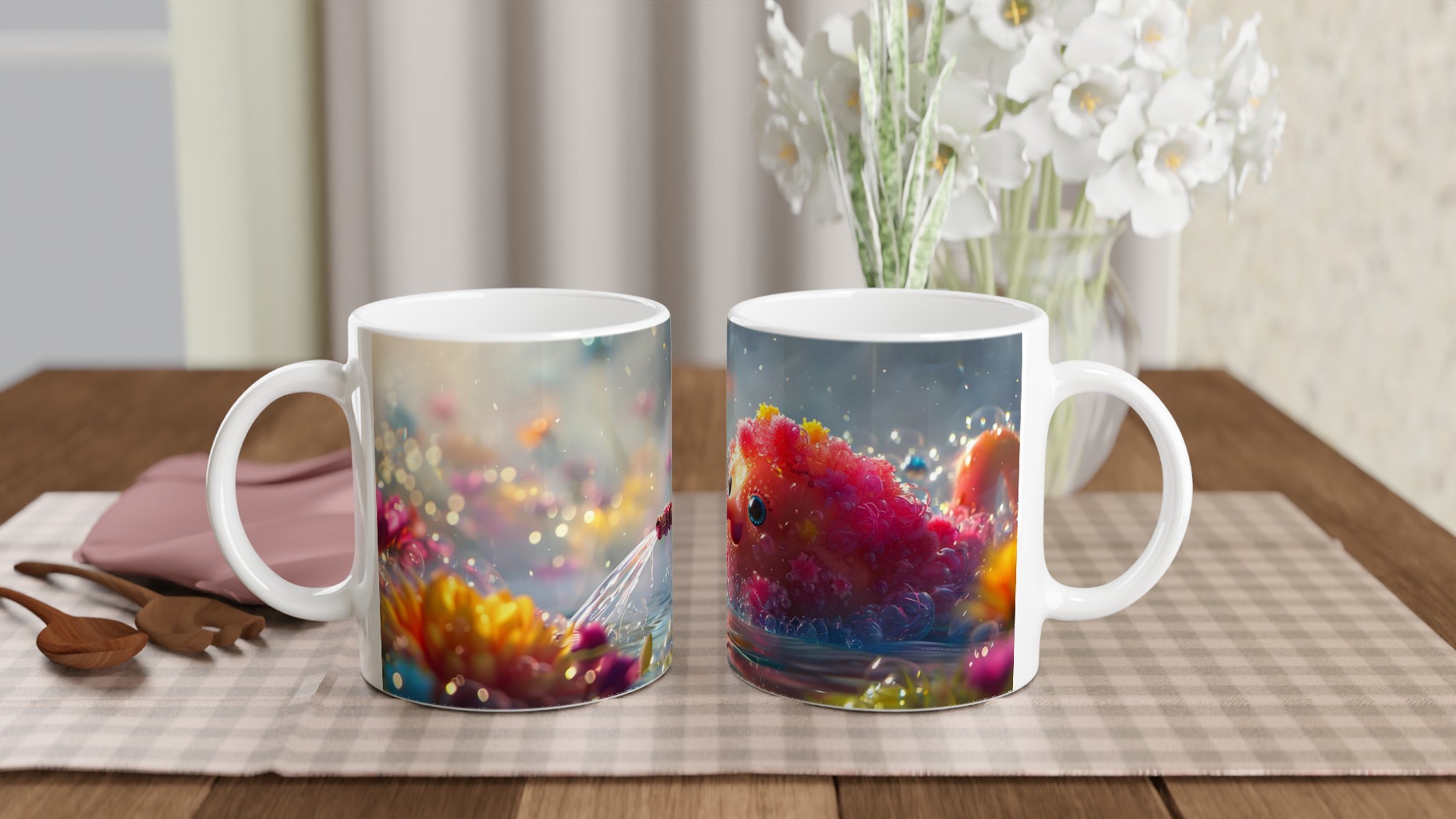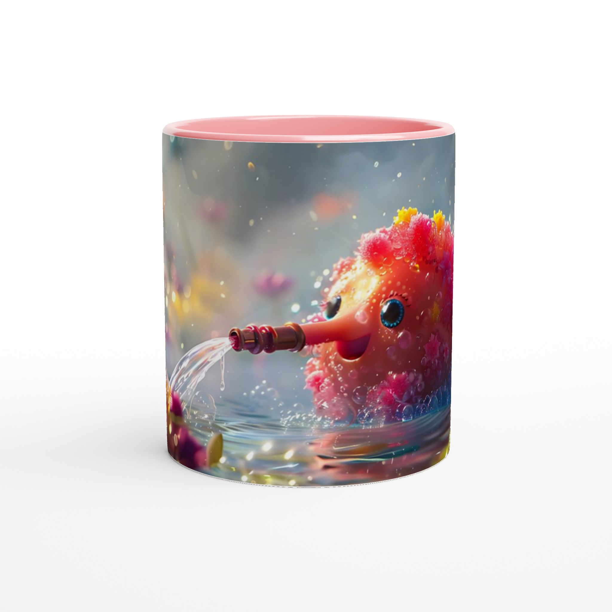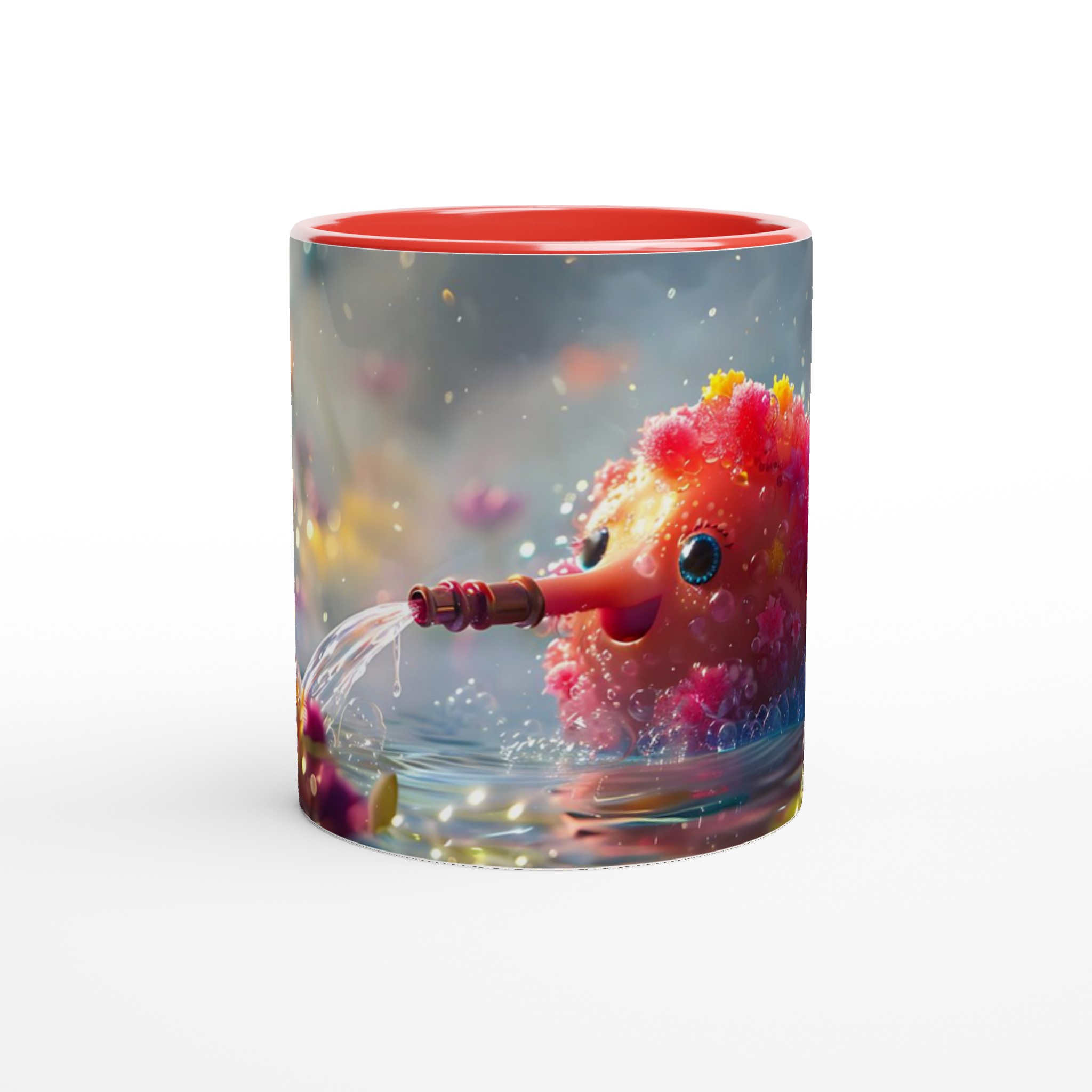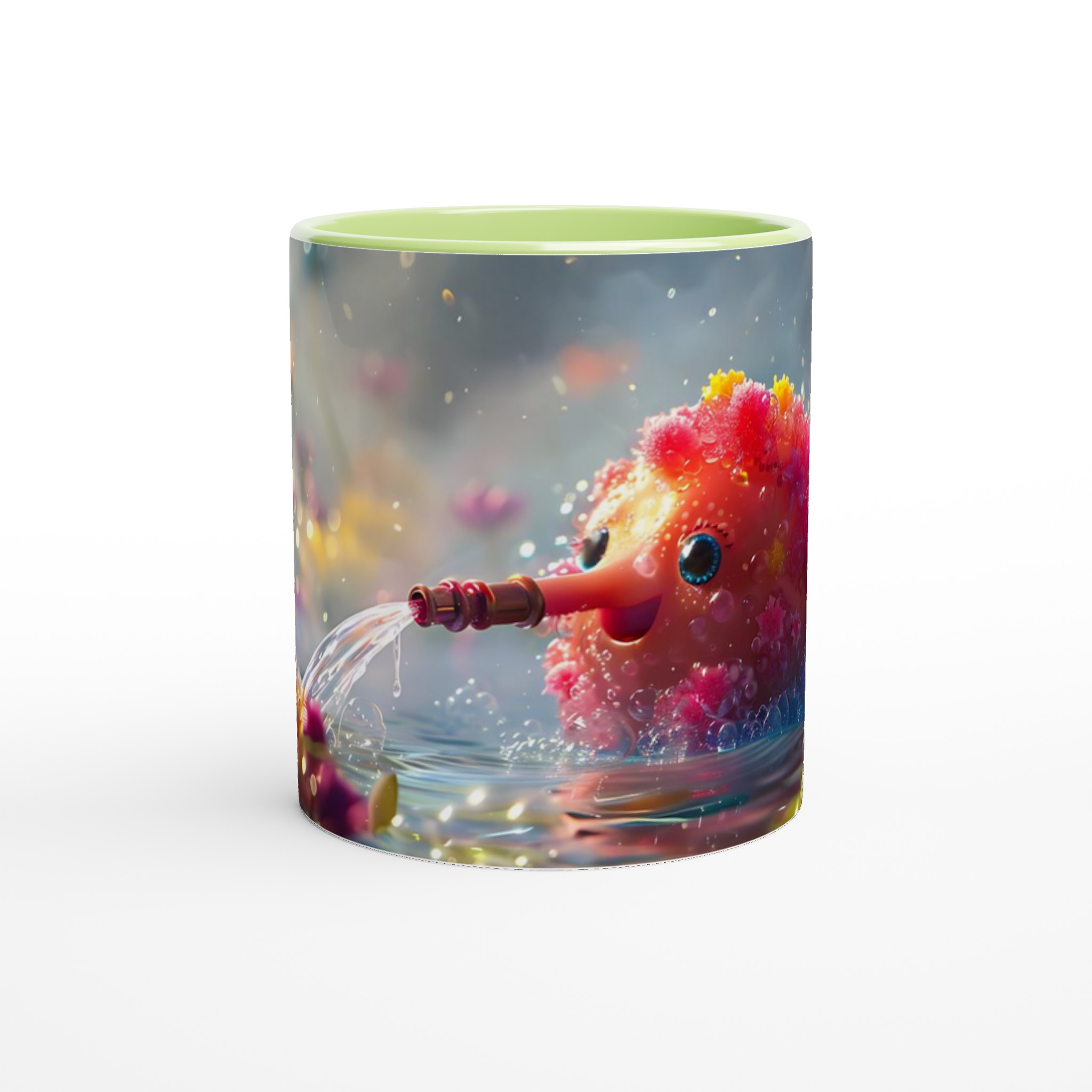 Låt dig förtrollas varje dag med denna charmiga keramikmugg som fångar en fantasifull och bubblande glädje! Inspirerad av bilden av en söt varelse som sprutar vatten bland glittrande blommor, förvandlar denna mugg dina dagliga dryckesstunder till ett minikalas. Den utstrålar en lekfull och positiv energi med sin unika design som framträder strålande på den blanka ytan.