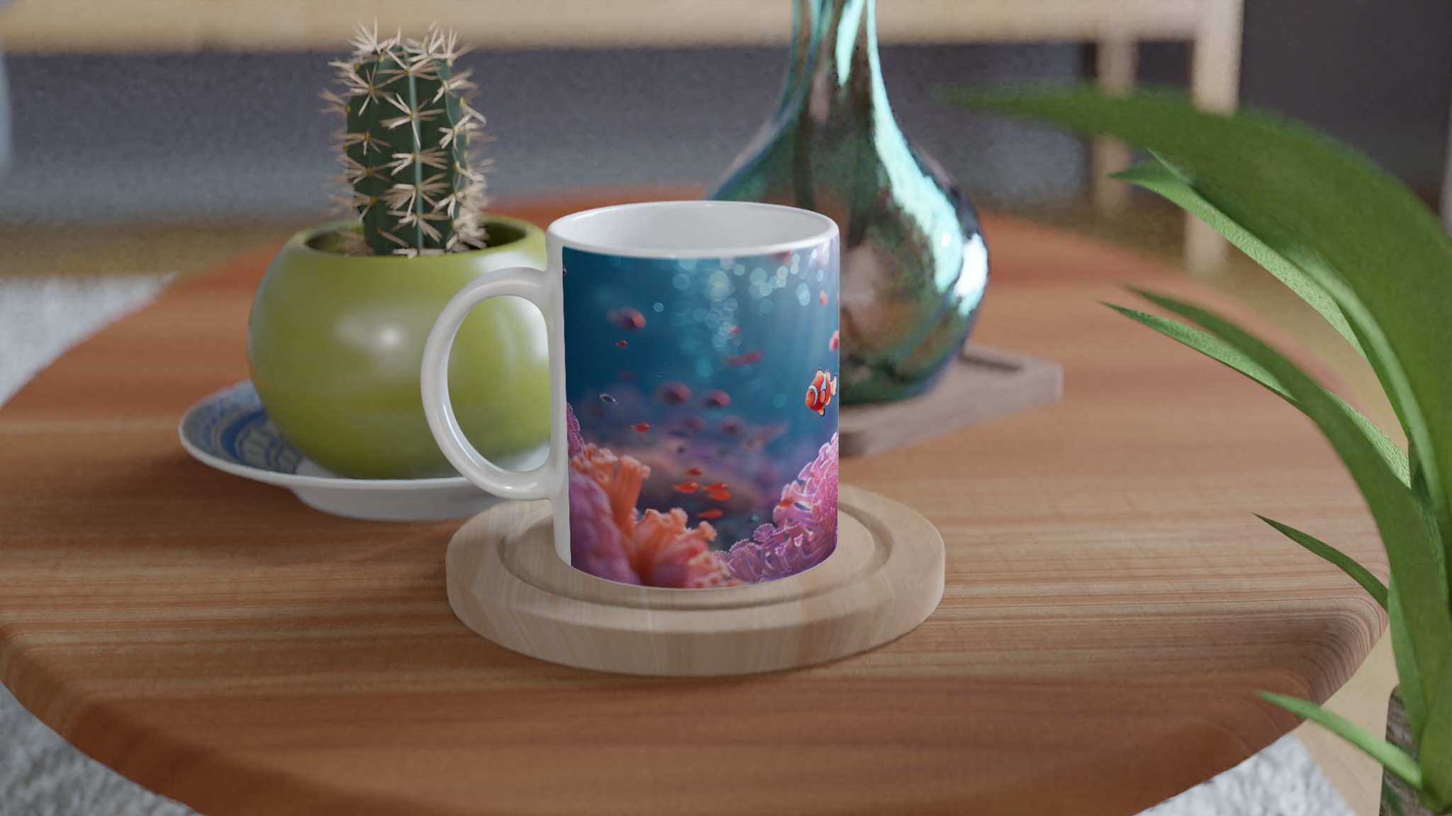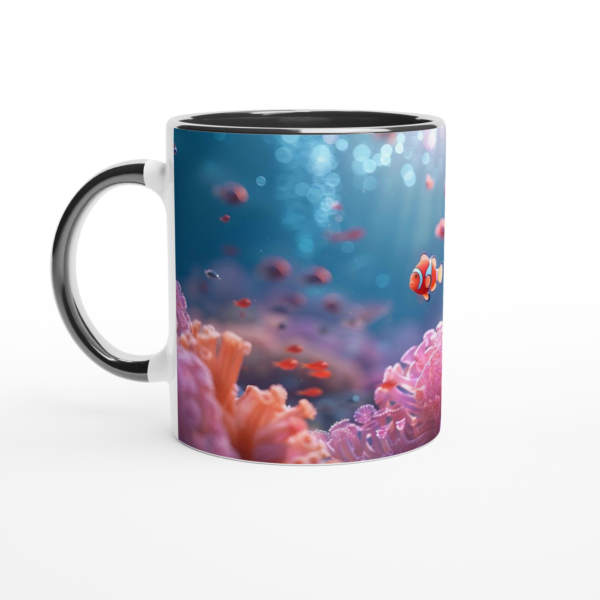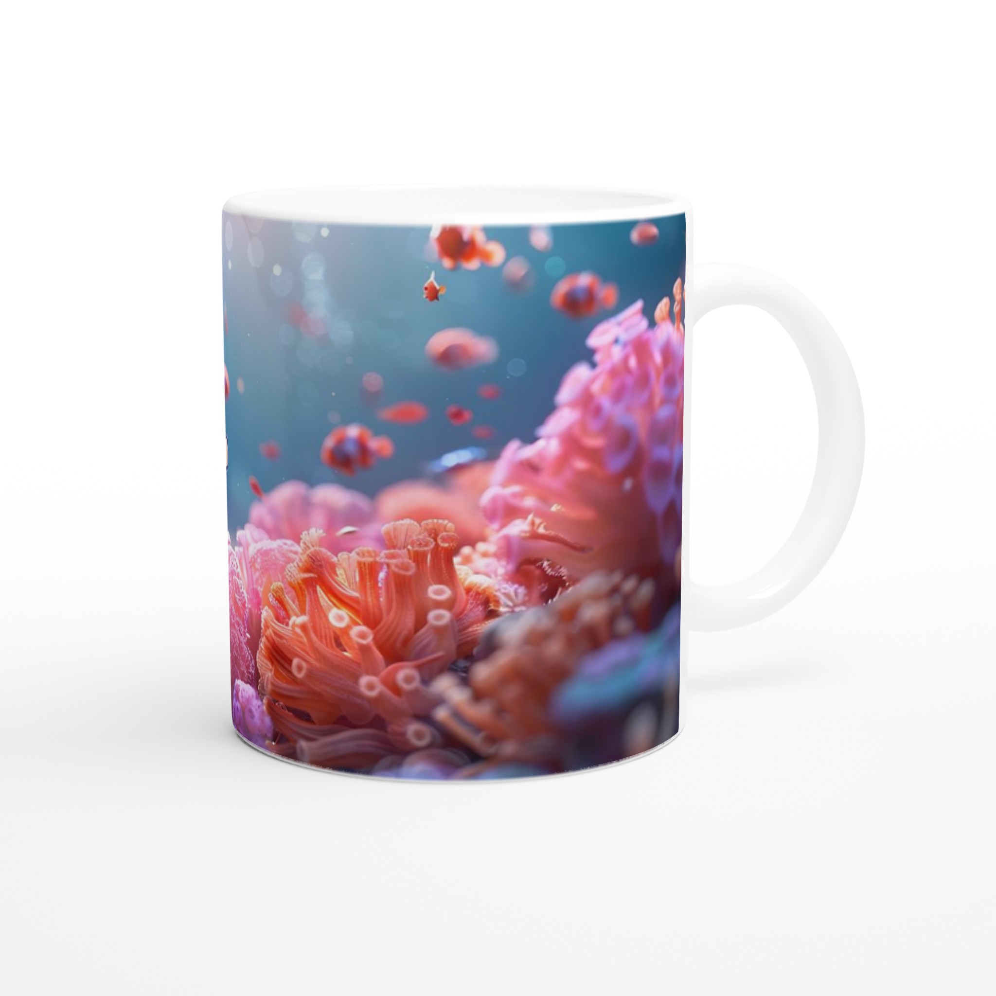 Fånga magin från havets djup med denna förtrollande keramiska mugg, prydd med ett levande undervattensmotiv. Låt dig svepas med av de simmande clownfiskarna och de korallfärgade anemonerna varje gång du njuter av din favoritdryck. Den här stilrena muggen blir snabbt en vardagsfavorit. Perfekt för morgonkaffet, kvällens varma choklad eller när du bara vill njuta av en kopp te. Den blanka ytan gör att trycken framhävs med klara och levande färger, som håller sig fina även efter många turer i mikron och diskmaskinen.