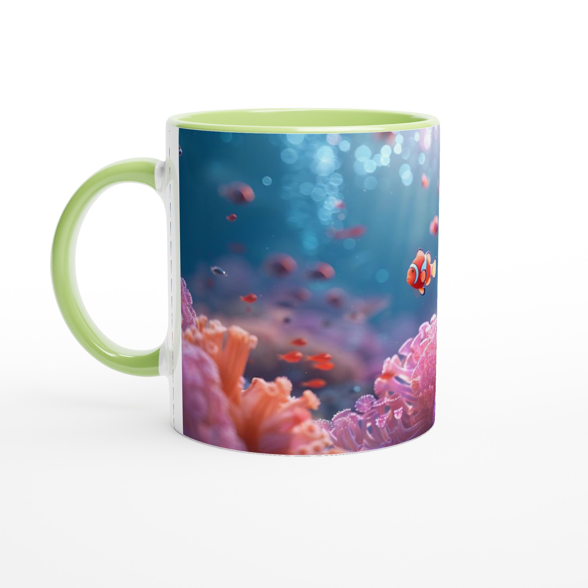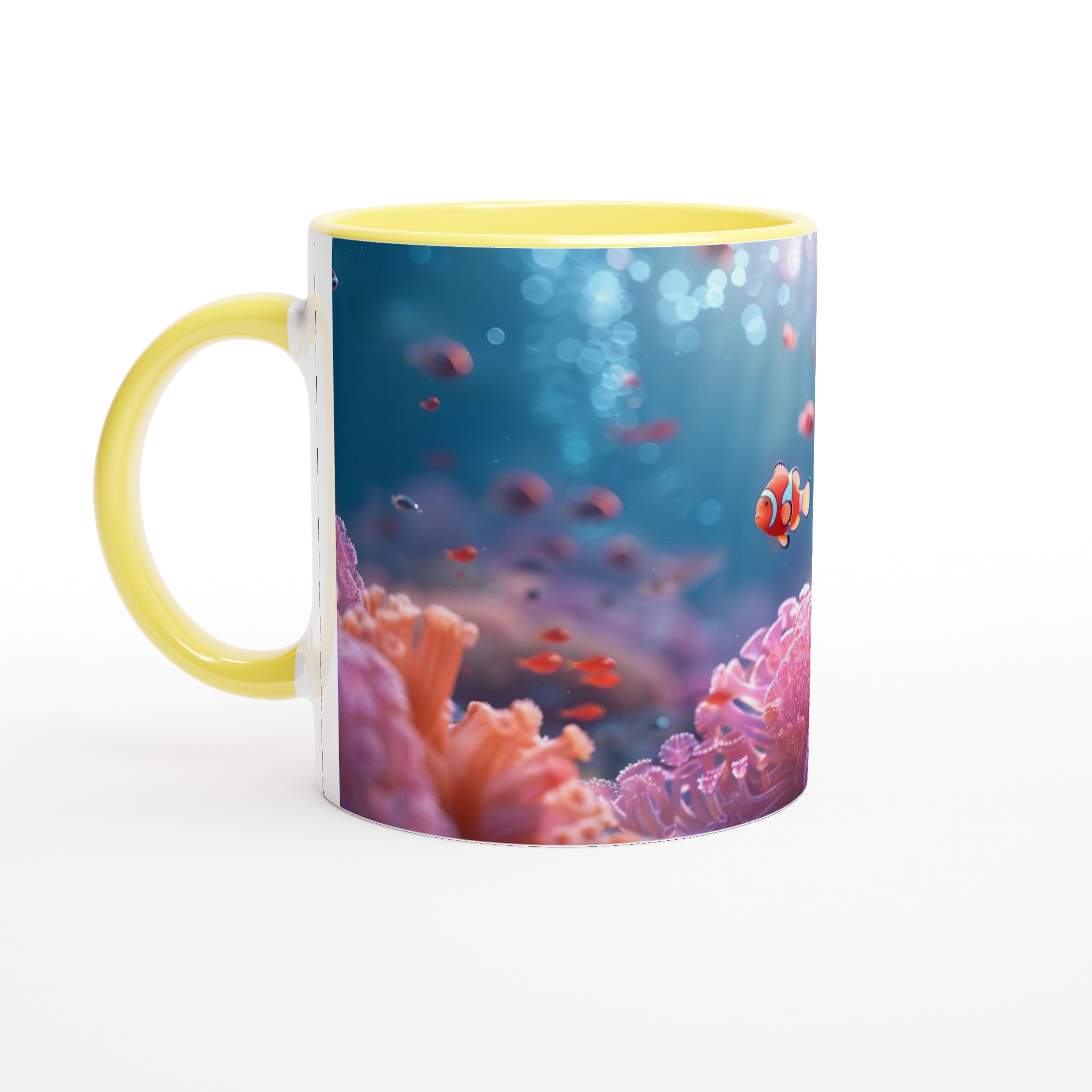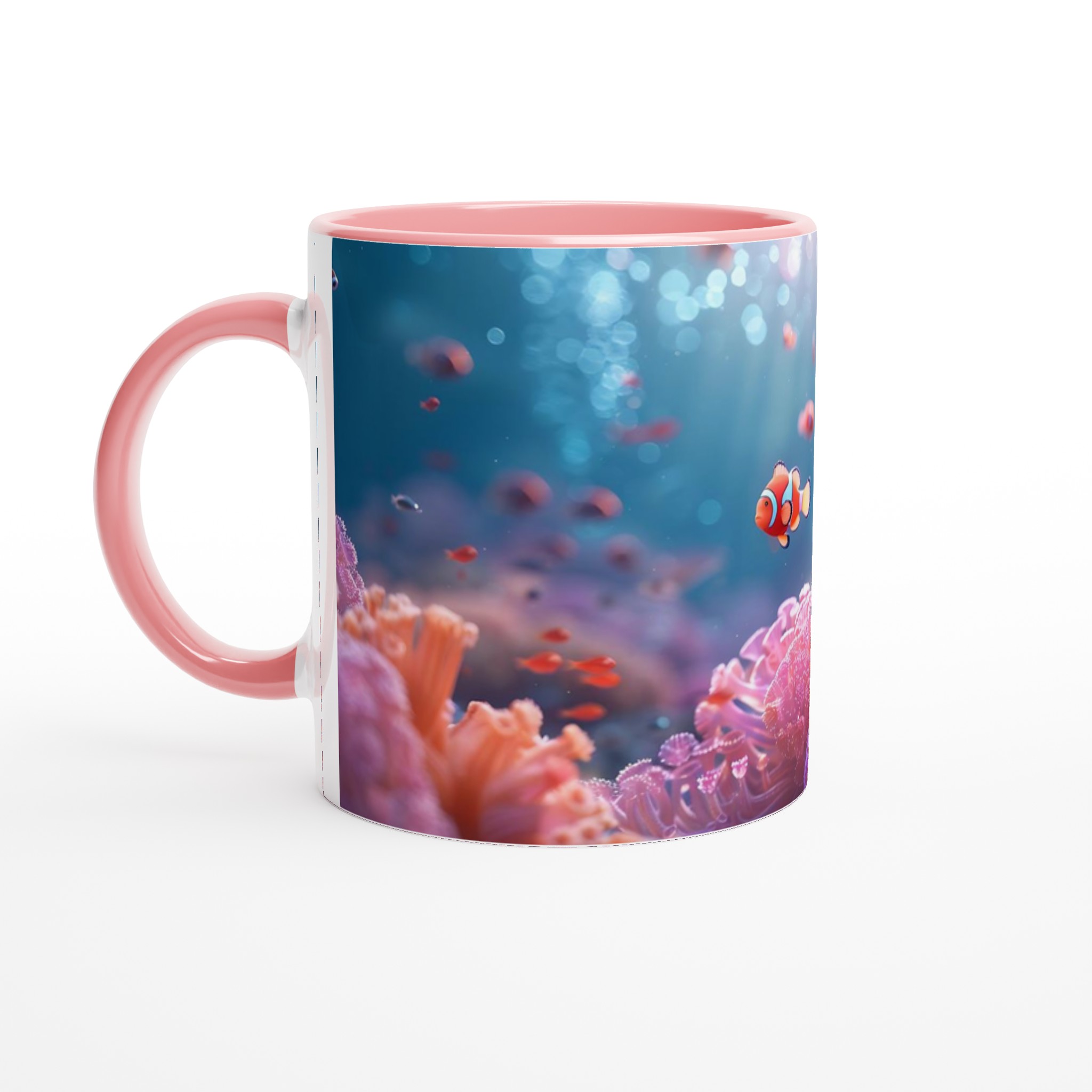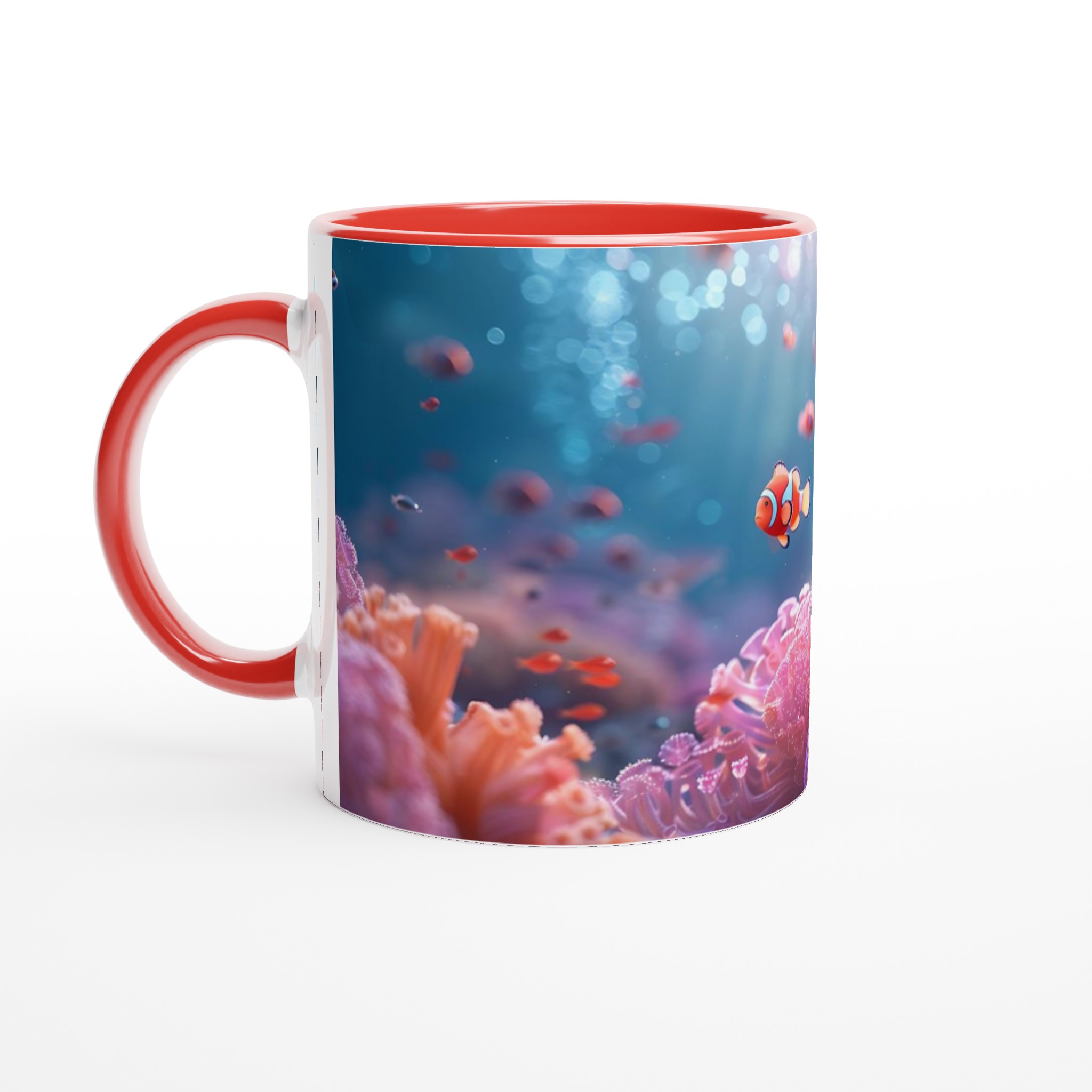 Fånga magin från havets djup med denna förtrollande keramiska mugg, prydd med ett levande undervattensmotiv. Låt dig svepas med av de simmande clownfiskarna och de korallfärgade anemonerna varje gång du njuter av din favoritdryck. Den här stilrena muggen blir snabbt en vardagsfavorit. Perfekt för morgonkaffet, kvällens varma choklad eller när du bara vill njuta av en kopp te. Den blanka ytan gör att trycken framhävs med klara och levande färger, som håller sig fina även efter många turer i mikron och diskmaskinen.