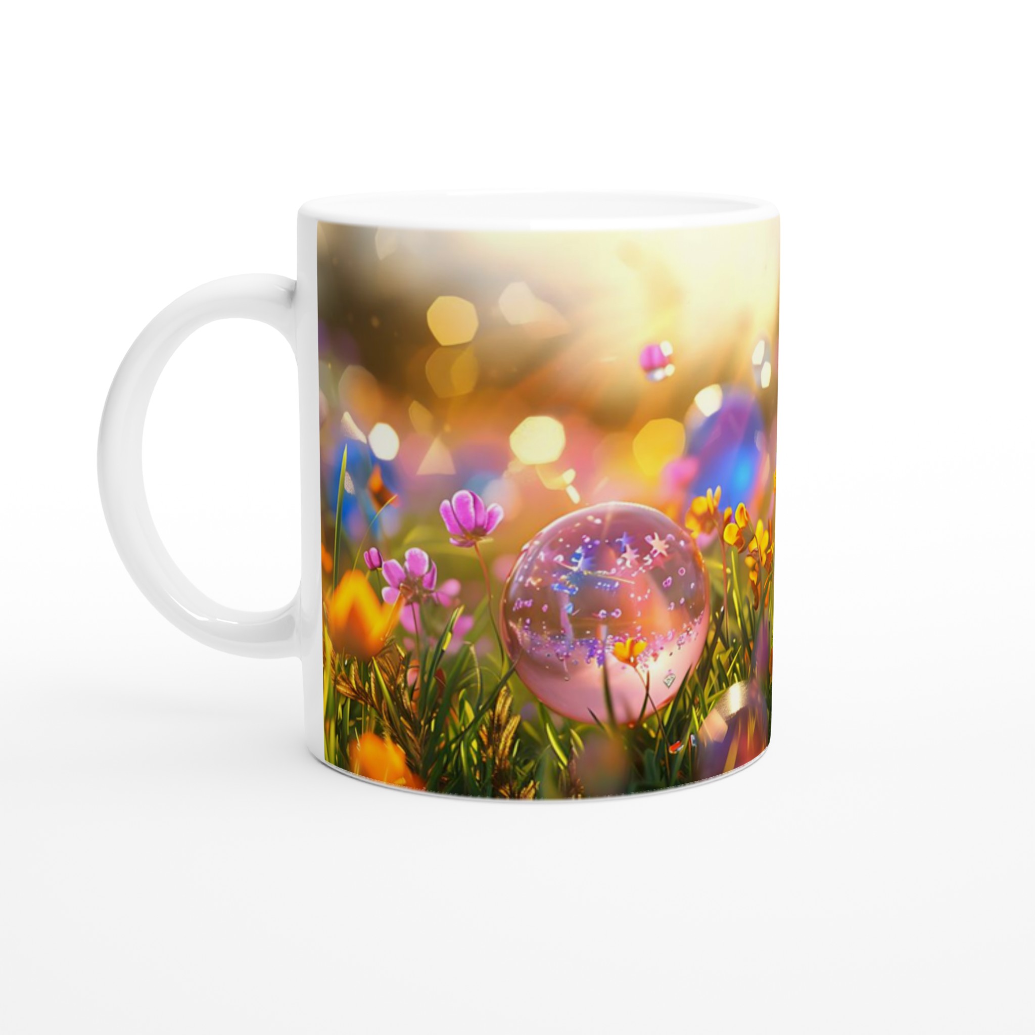 Föreställ dig en solig våräng, full av gnistrande färg och förtrollande bubblor. Vår keramikmugg fångar den lekfulla magin med sin förmåga att förvandla varje klunk till en fest för sinnena. Den blanka ytan ger ett skarpt och levande tryck, oavsett om det är en personlig design, ett roligt citat eller en present till någon du tycker om.