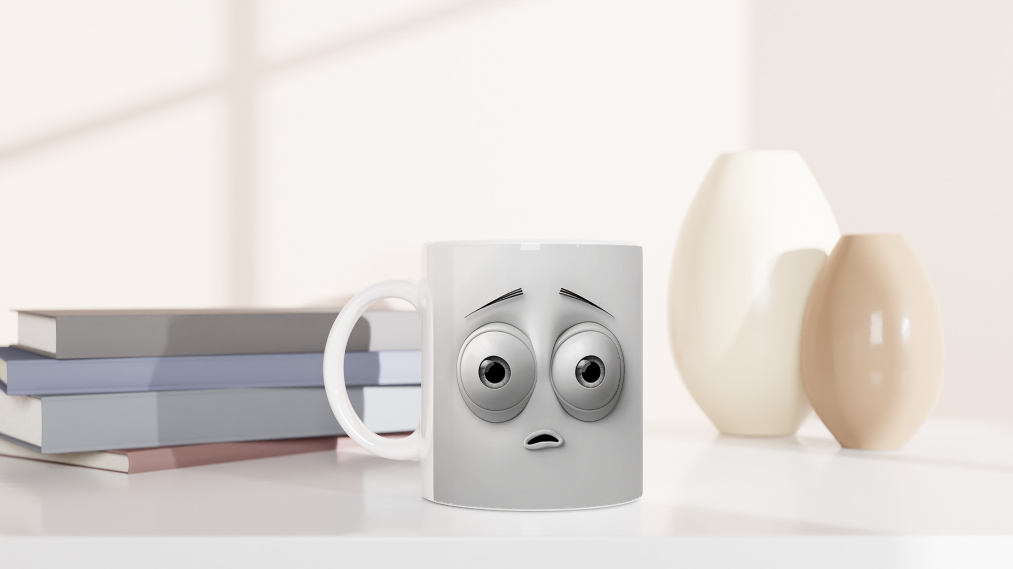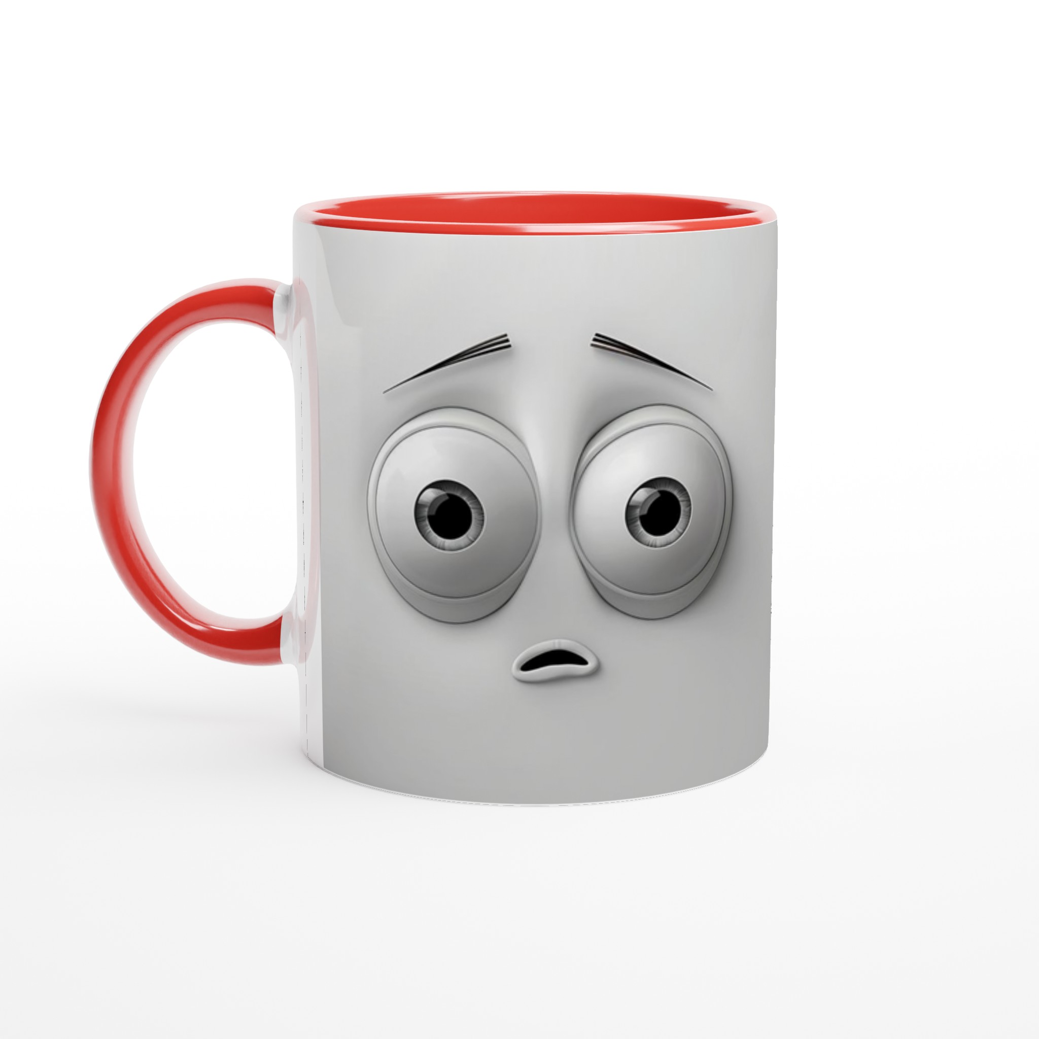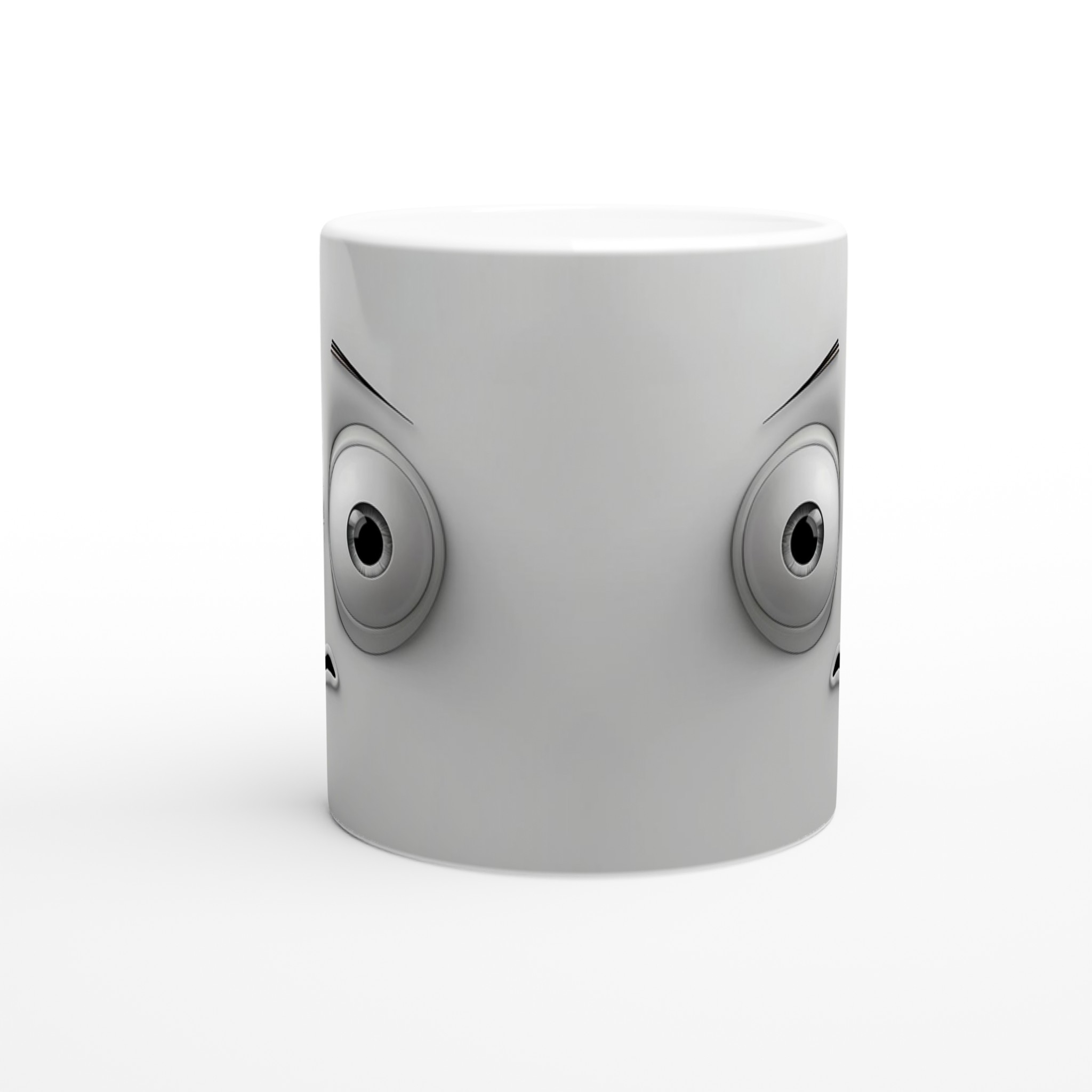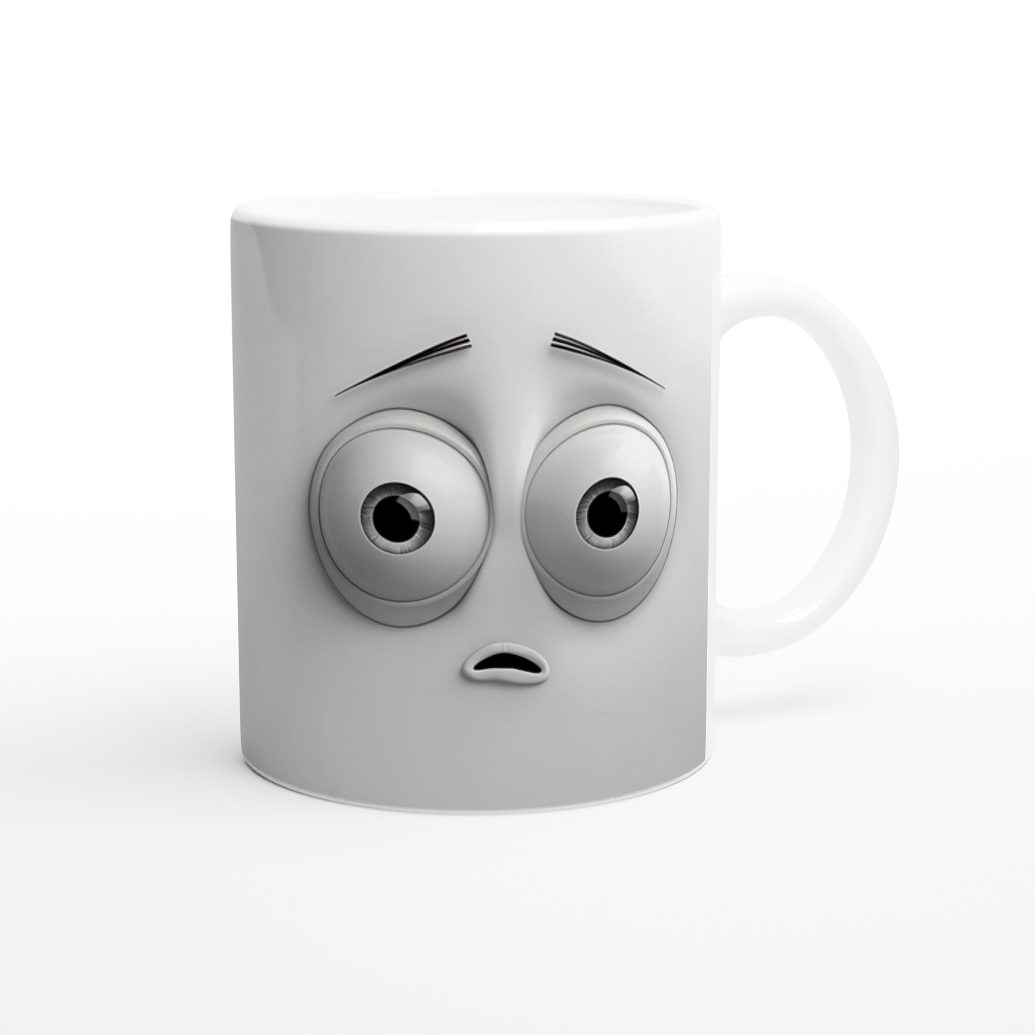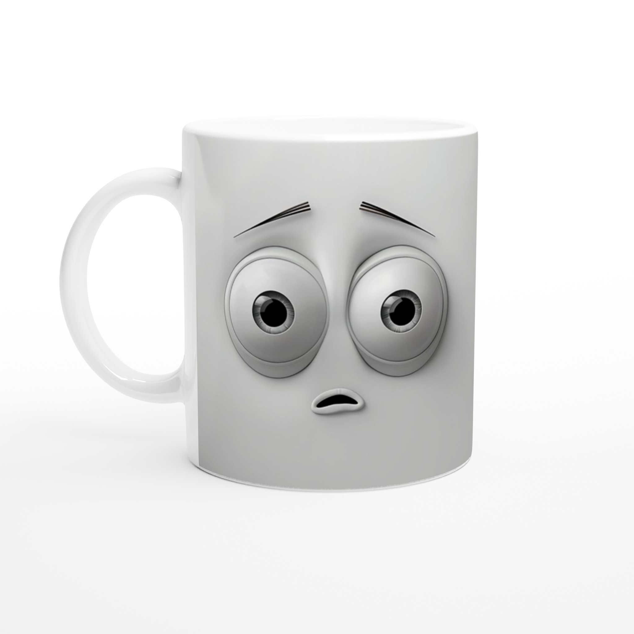 Denna lekfulla mugg fångar ögonblicket av förvåning med en charmig 3D-ansiktsdesign som garanterat väcker ett leende. Den blanka vita ytan ger ett skarpt och levande tryck som verkligen sticker ut, oavsett om det är en personlig design, ett roligt citat eller en present till någon du tycker om.