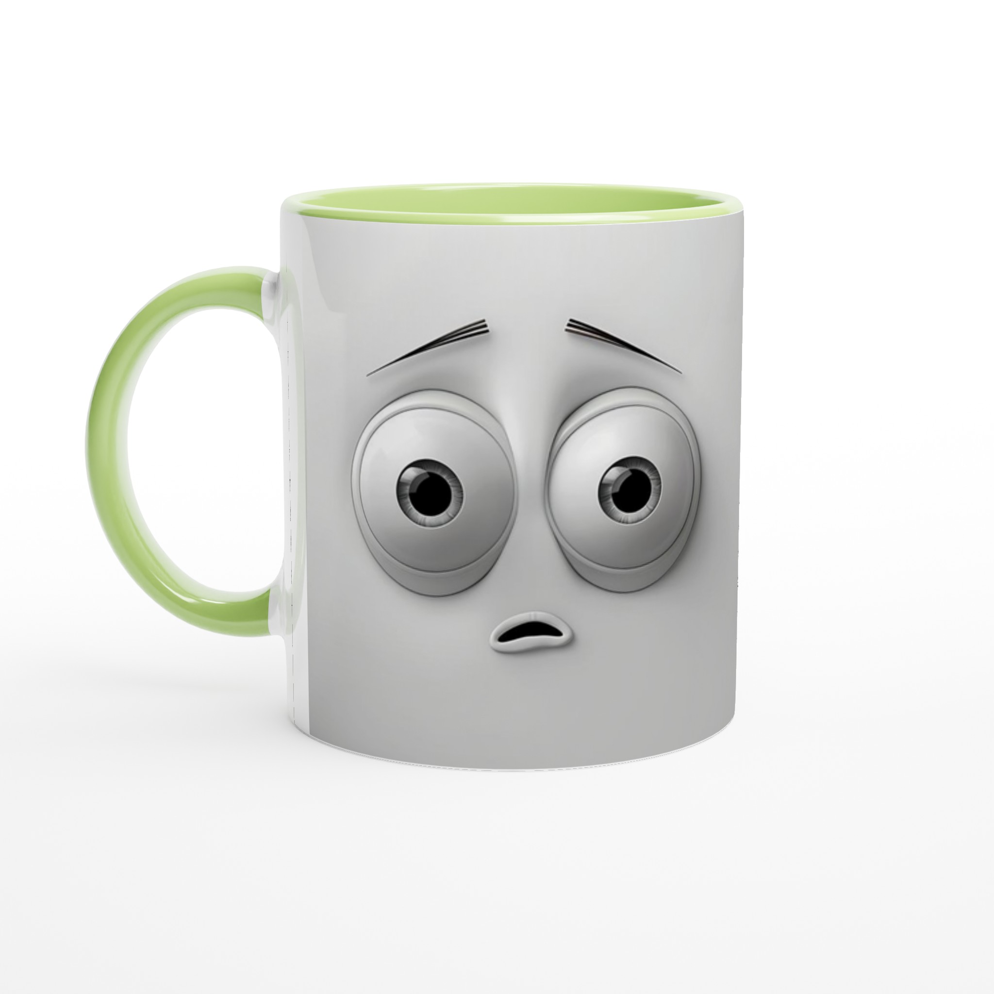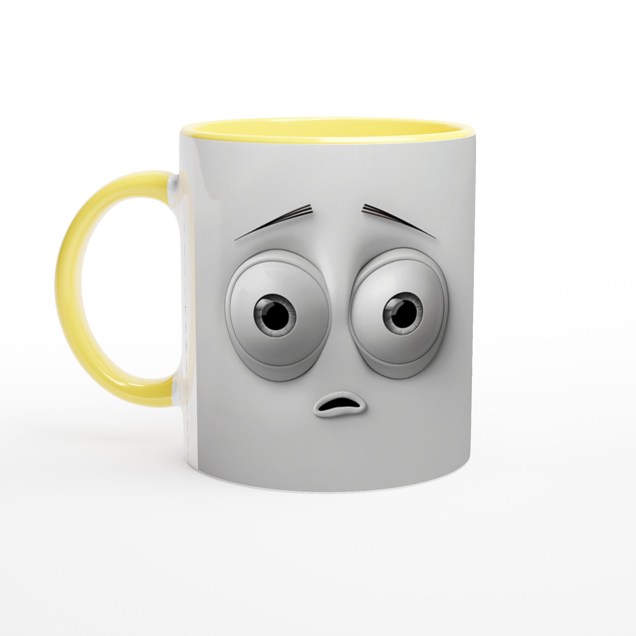 Gör den verkligen till din egen genom att välja bland en palett av livfulla färger som kompletterar det förvånade ansiktet. Välj mellan klassisk Ceramic White, solig Ceramic Yellow, söt Ceramic Pink, lugn Ceramic Green, passionerad Ceramic Red, elegant Ceramic Black eller djup Ceramic Blue. Uttryck din personlighet och beställ din unika mugg idag!