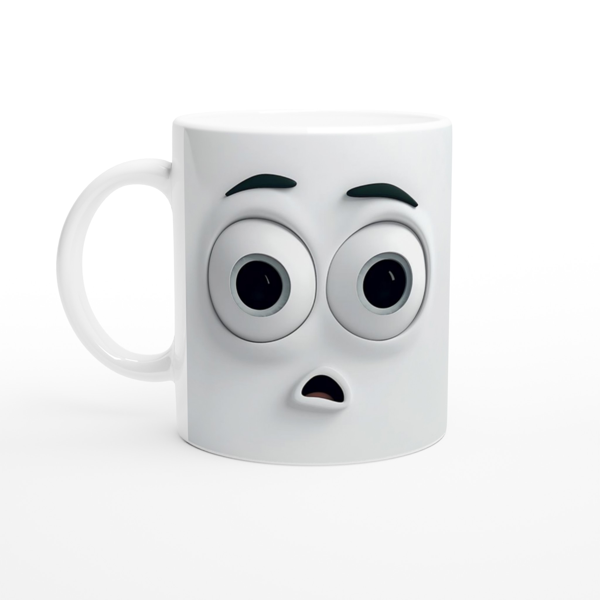 Förvånade Ögon Keramisk Mugg – Vit 11oz, Hållbar & Diskmaskinssäker – Välj bland 7 Livfulla Färger!