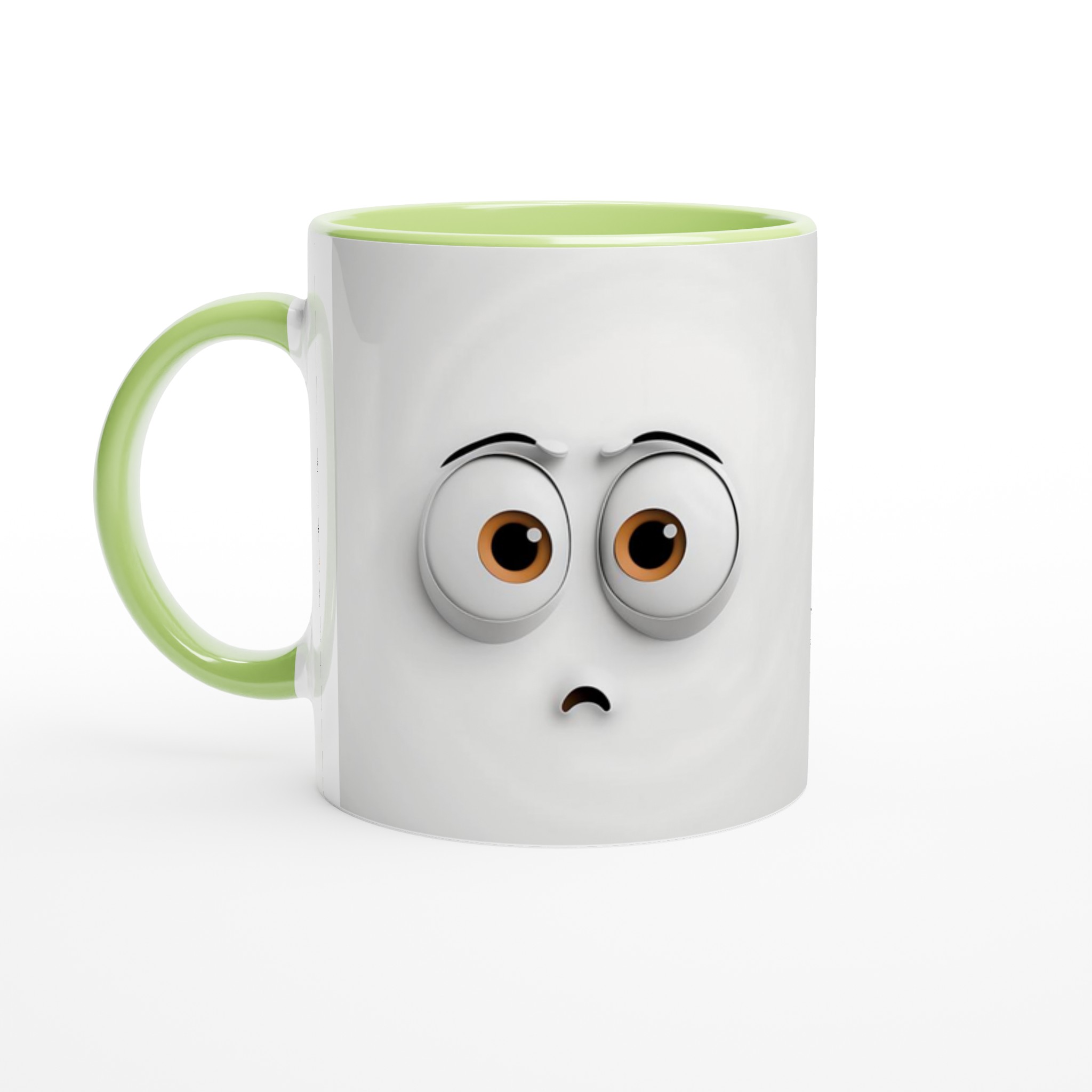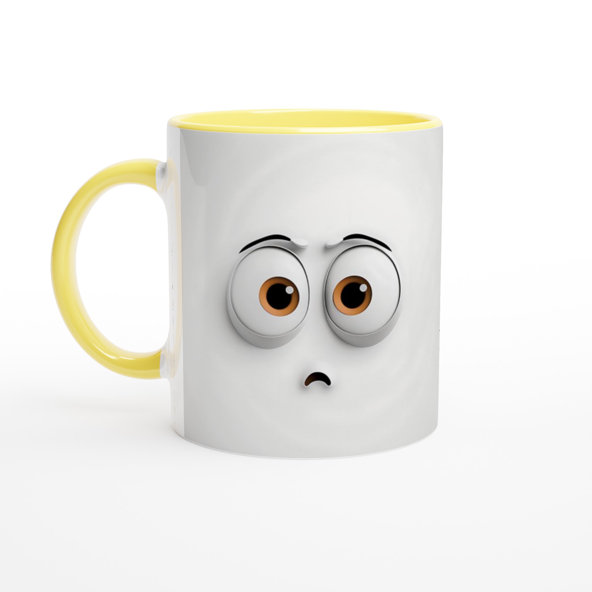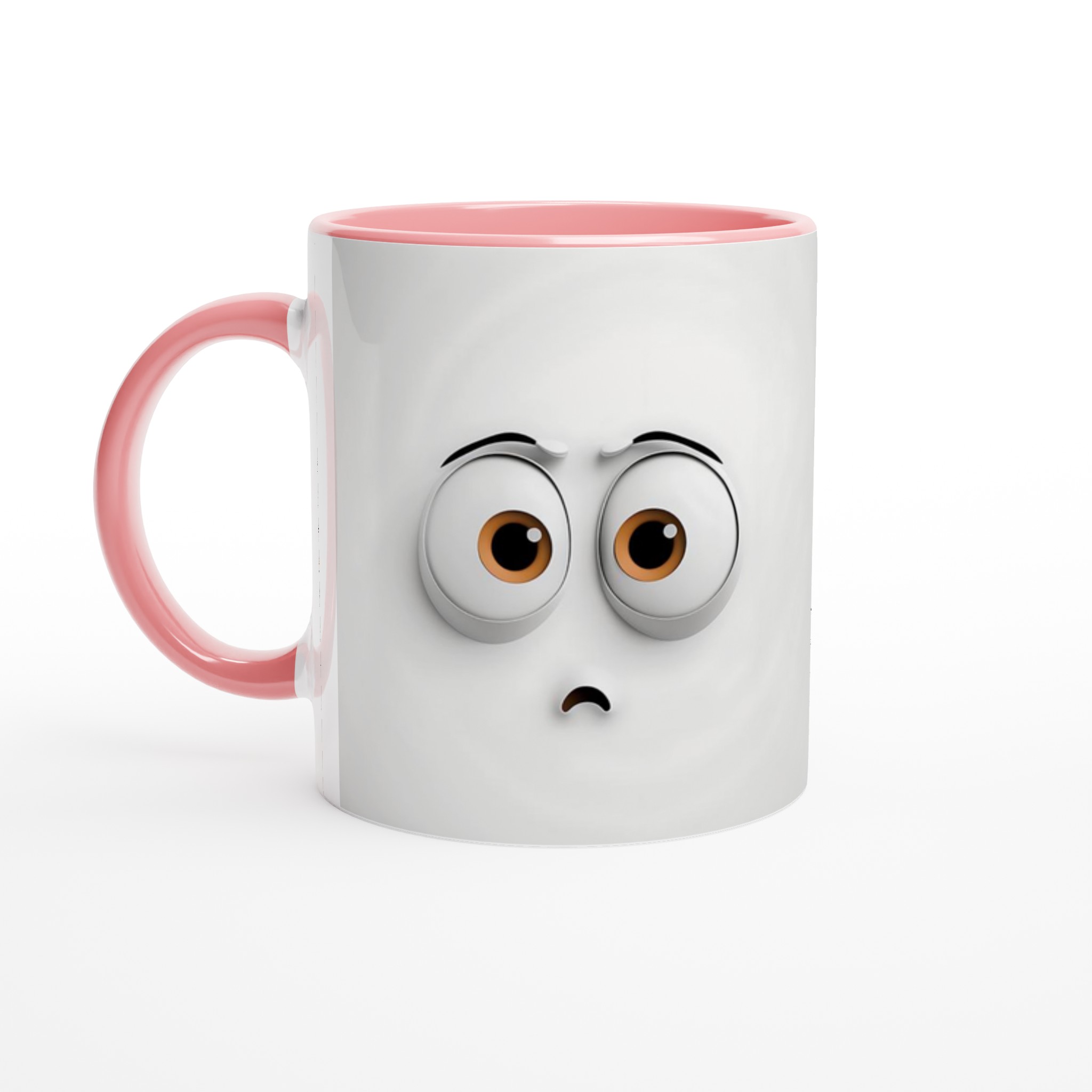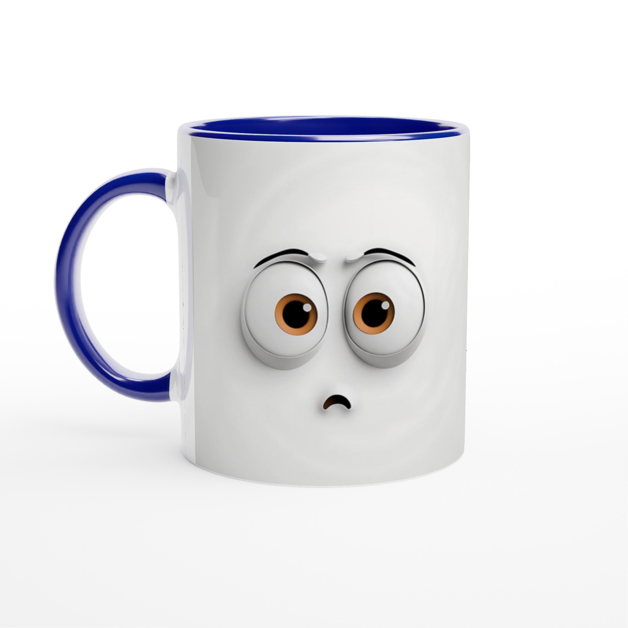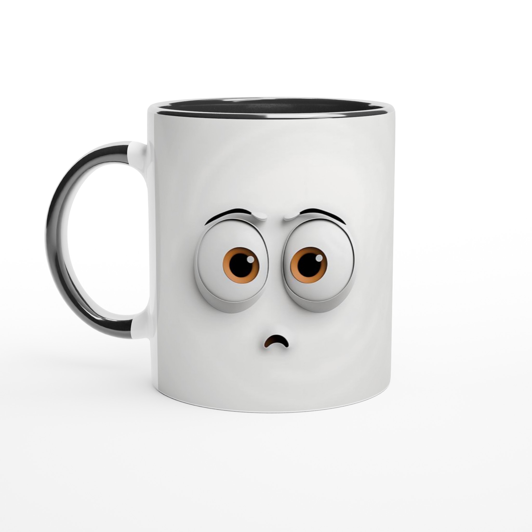 Denna charmiga mugg, prydd med ett par stora, förvånade tecknade ögon och en liten ’oops’-mun, kommer garanterat att väcka leenden vid varje användning. Den blanka vita ytan ger ett skarpt och levande tryck som verkligen sticker ut, oavsett om det är en personlig design, ett roligt citat eller en present till någon du tycker om. Perfekt för dem som älskar humor och unika detaljer i vardagen!