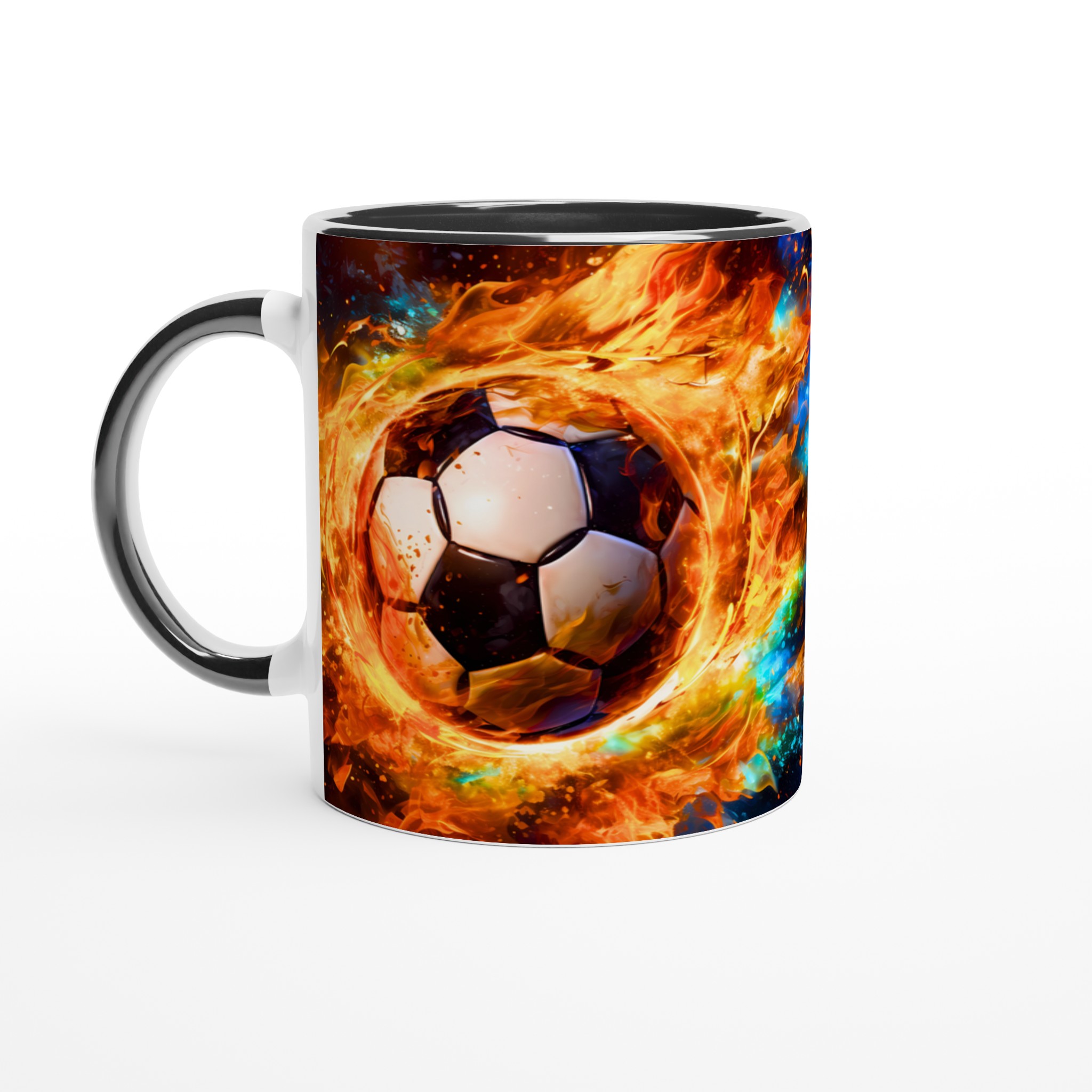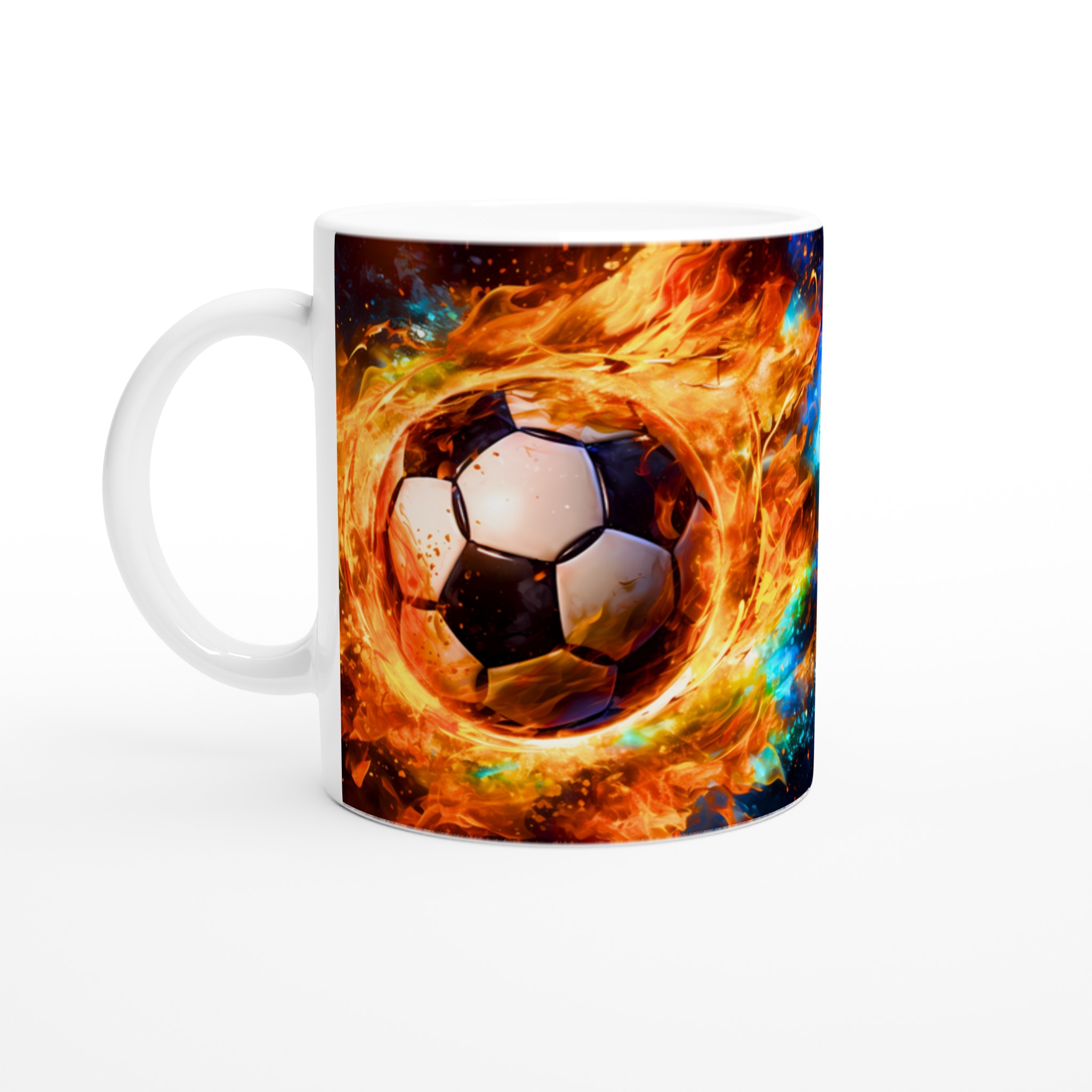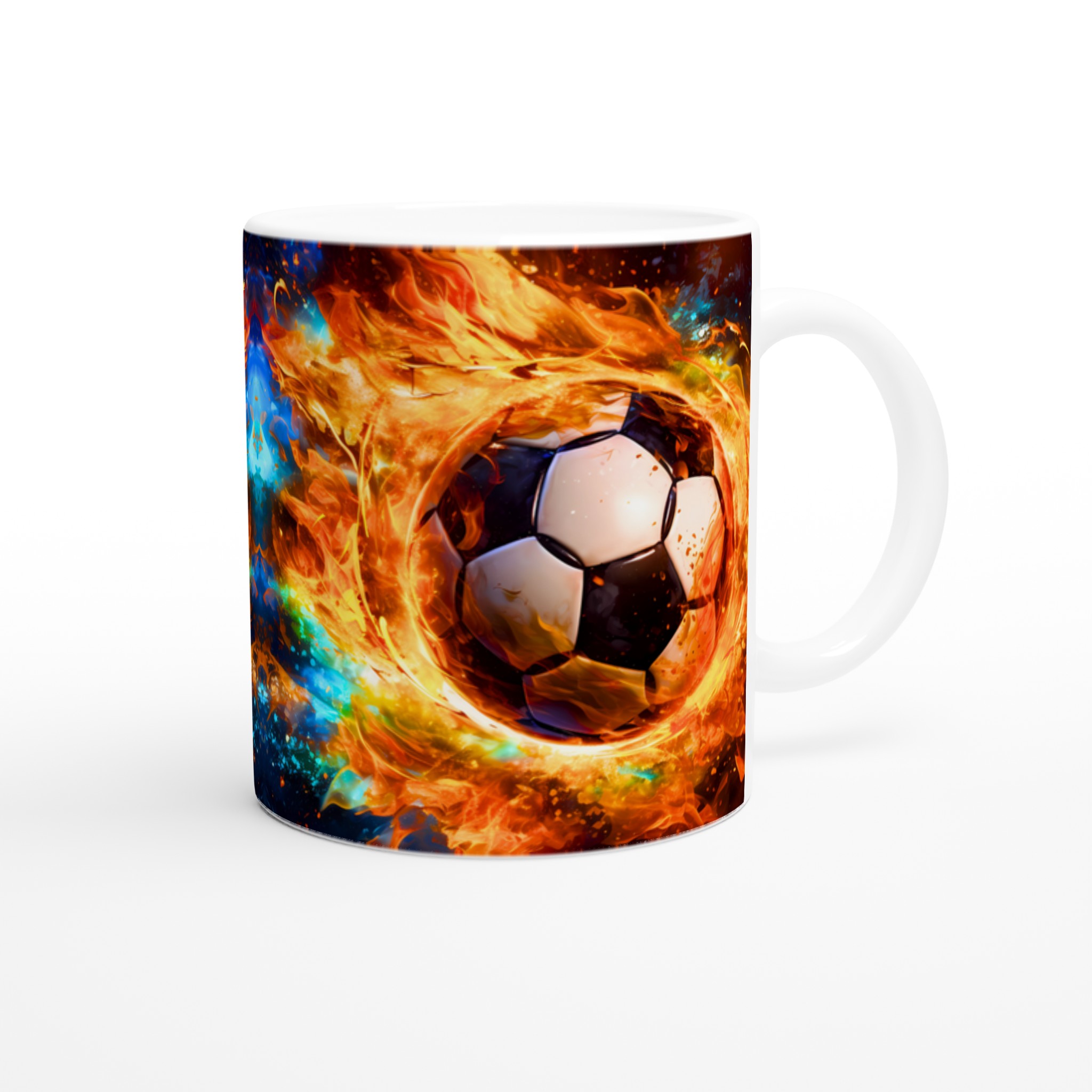 Tänd passionen för spelet med vår dynamiska keramiska mugg, med ett uppslukande tryck av en fotboll i eld och lågor. Denna mugg är perfekt för alla sportälskare och blir snabbt en vardagsfavorit, oavsett om du laddar upp inför matchen med morgonkaffet, varvar ner med en varm choklad efter en spännande dag, eller bara vill njuta av en kopp te medan du drömmer om nästa stjärnskott.