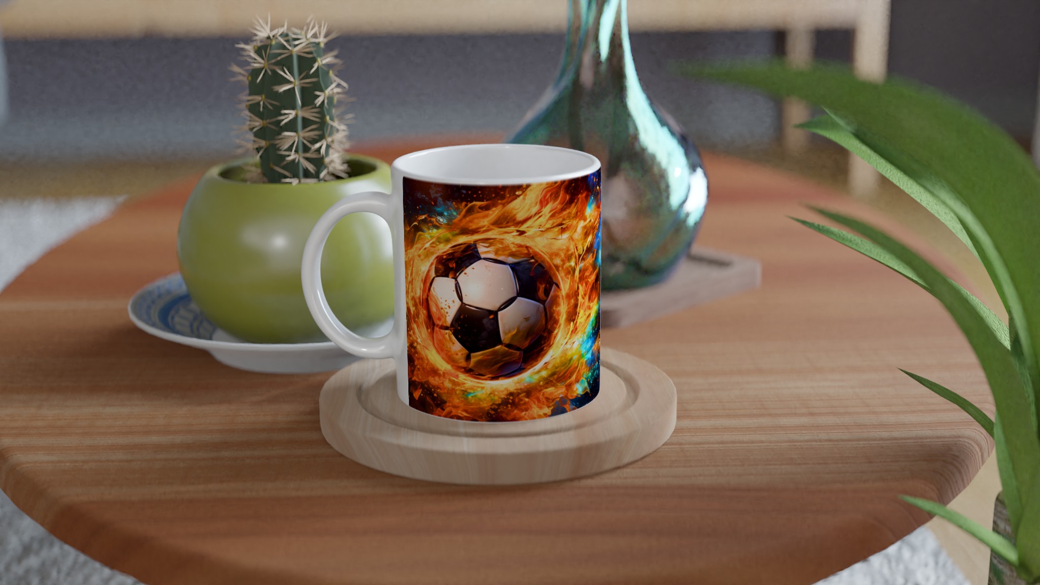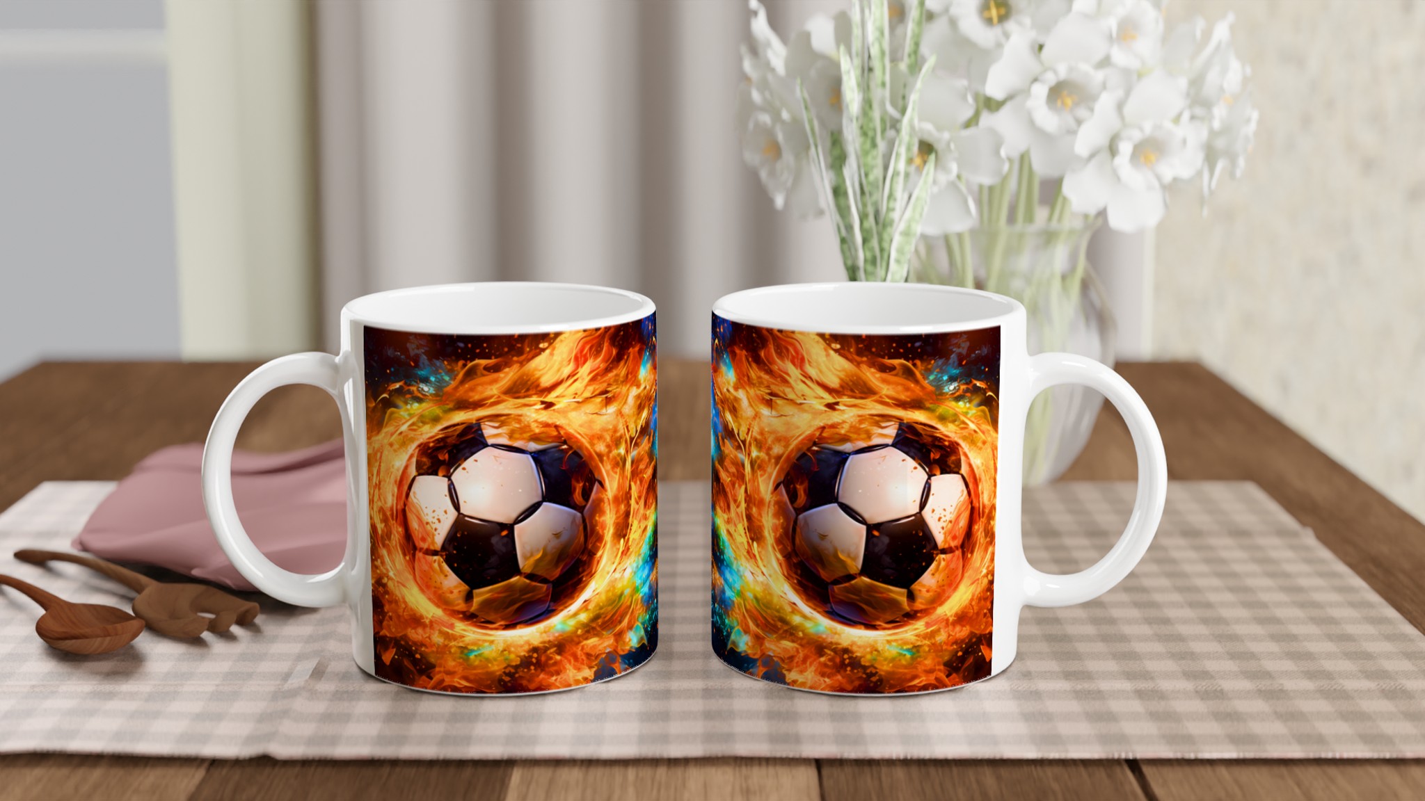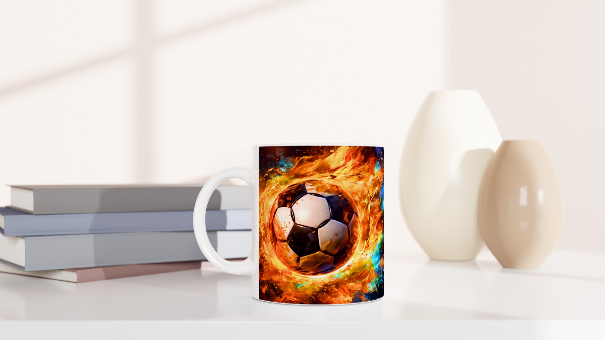 Tänd passionen för spelet med vår dynamiska keramiska mugg, med ett uppslukande tryck av en fotboll i eld och lågor. Denna mugg är perfekt för alla sportälskare och blir snabbt en vardagsfavorit, oavsett om du laddar upp inför matchen med morgonkaffet, varvar ner med en varm choklad efter en spännande dag, eller bara vill njuta av en kopp te medan du drömmer om nästa stjärnskott.