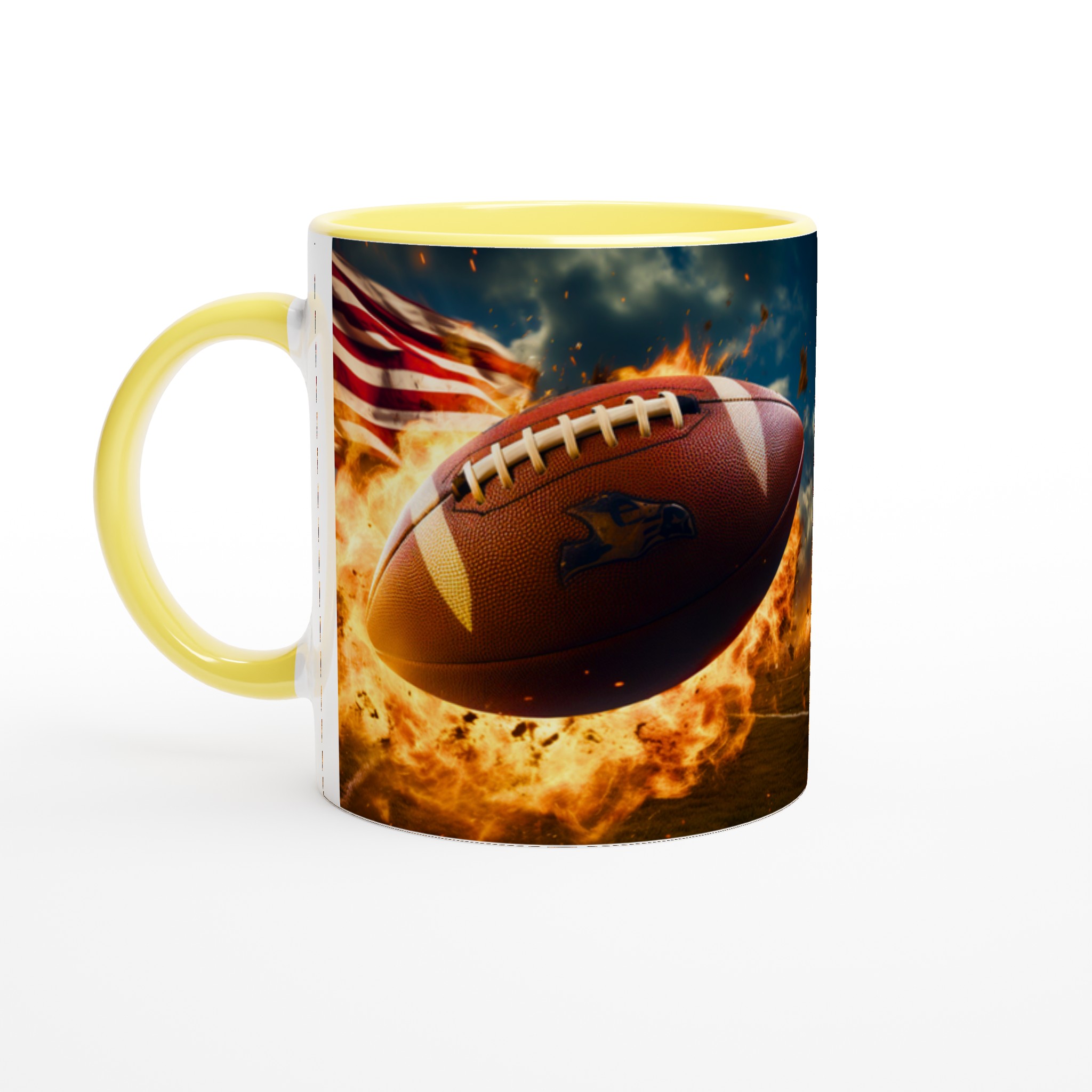 Tänd elden för din favorit sport med denna dynamiska keramiska mugg! Den här muggen är mer än bara en kopp; den är en hyllning till spelets intensitet, perfekt för den sanna fotbollsälskaren. Oavsett om du laddar upp inför matchdagen med ditt morgonkaffe, firar en seger med varm choklad, eller bara drömmer om touchdowns med en kopp te, kommer denna mugg att påminna dig om spänningen på planen.