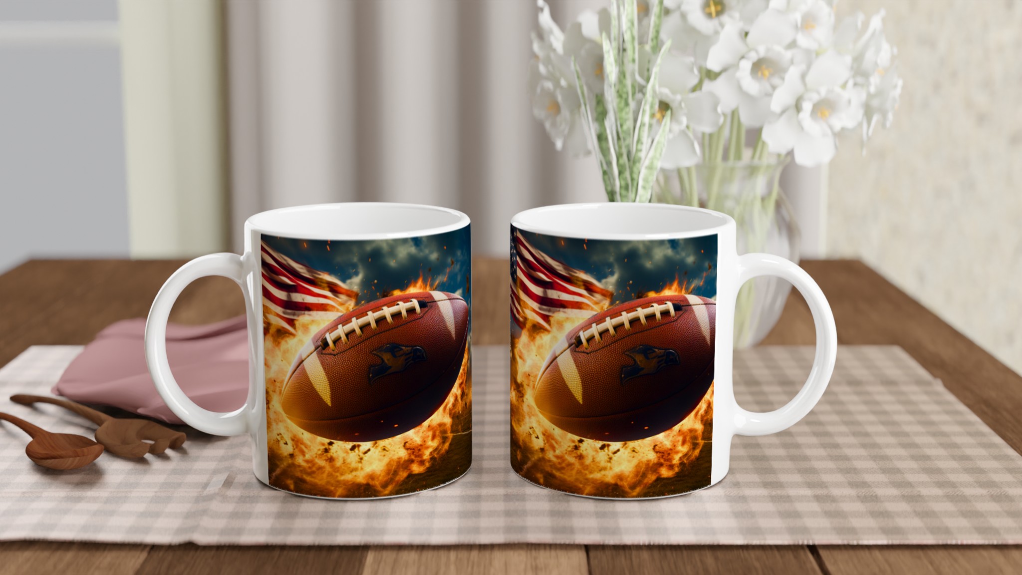 Den blanka ytan får det flammande trycket med en amerikansk fotboll och USA-flaggan att framhävas med klara och levande färger, som håller sig fina även efter många turer i mikron och diskmaskinen. En perfekt present för att visa din kärlek till sporten, till familj, vänner eller kollegor som delar din passion. Det är en enkel, men otroligt personlig gåva som alltid kommer till användning.