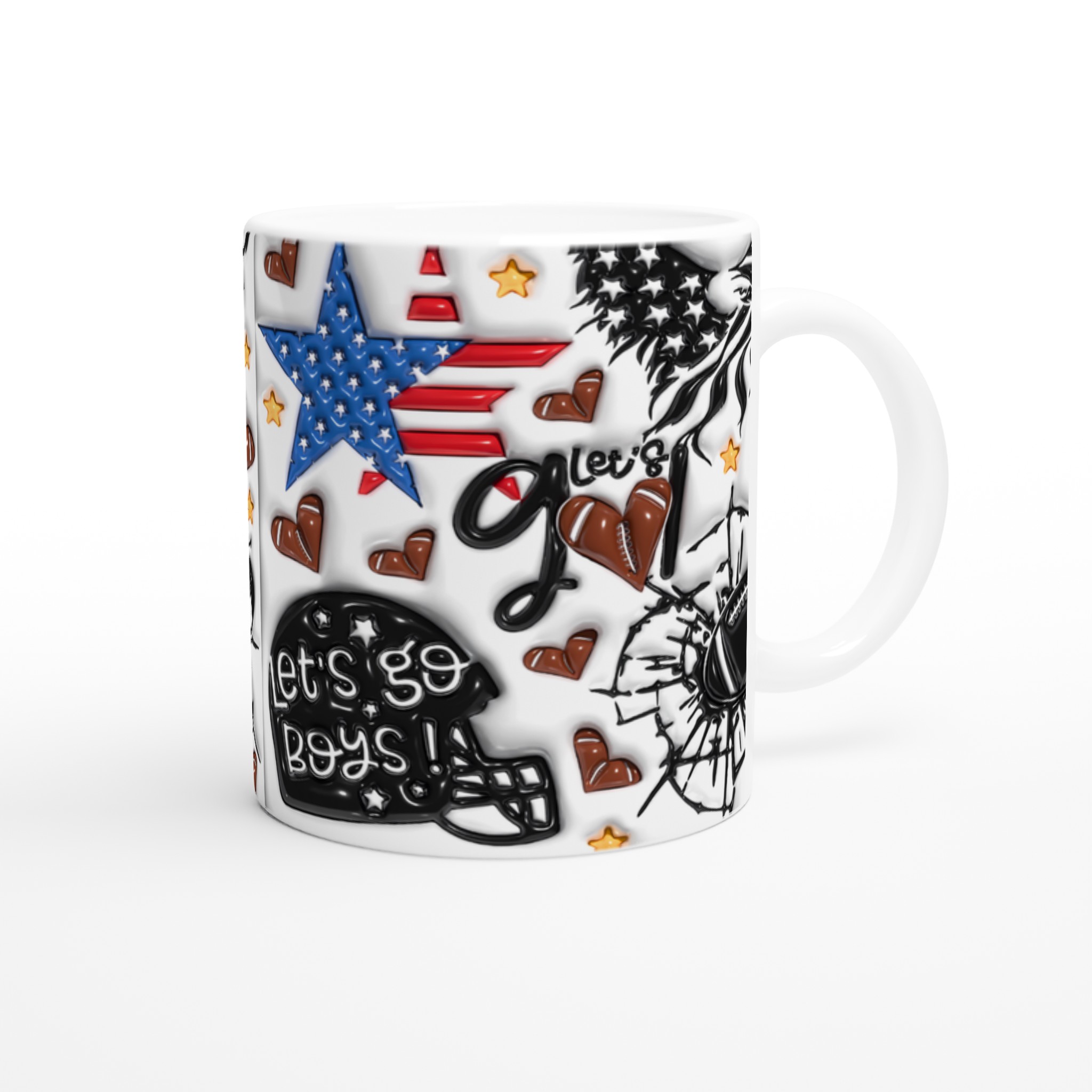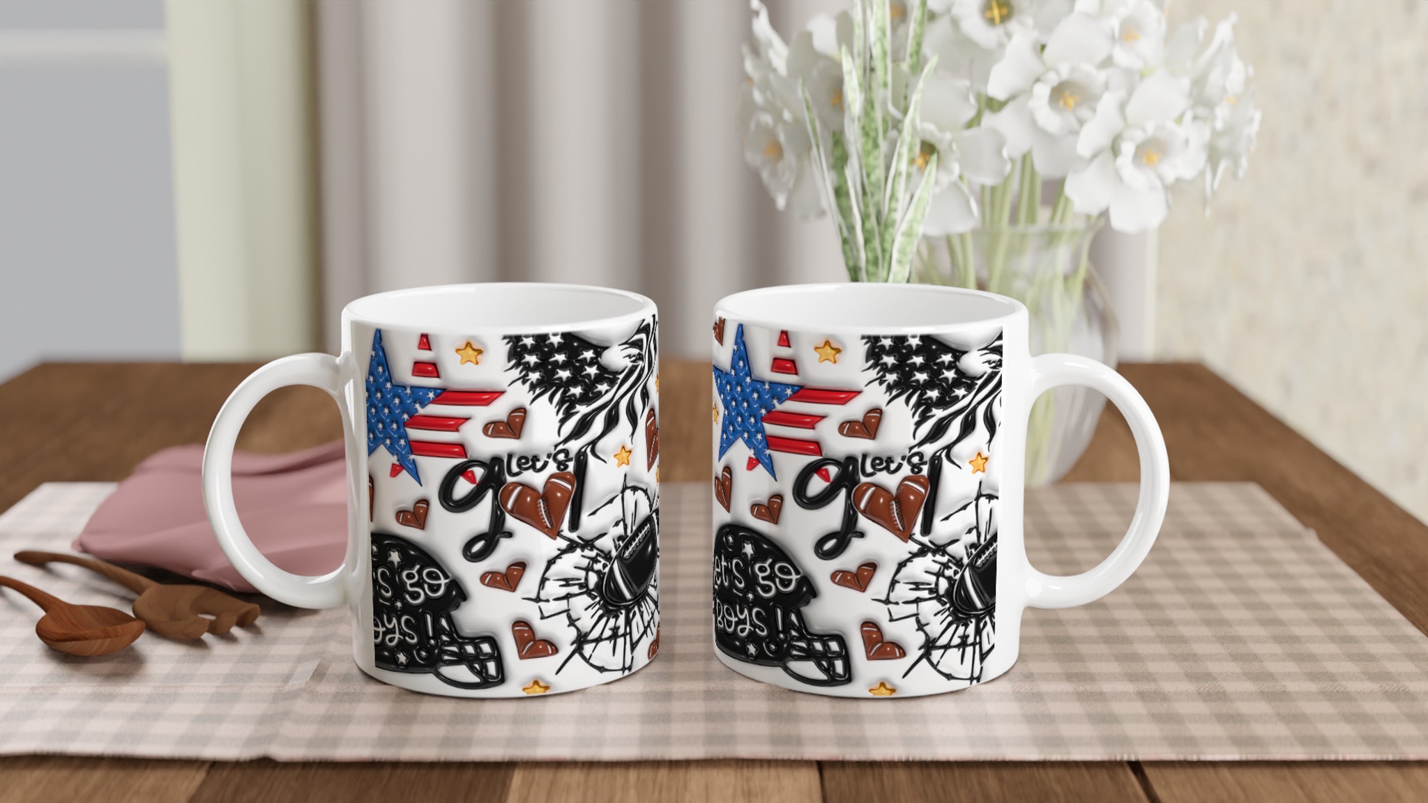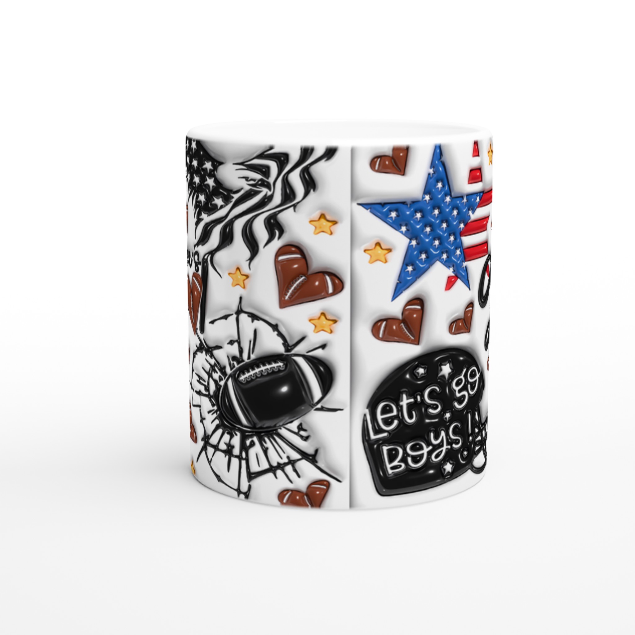 Visa ditt lags kärlek med den här stilrena keramiska muggen som snabbt blir en vardagsfavorit. Perfekt för morgonkaffet inför matchdagen, kvällens varma choklad när du hejar fram ditt lag, eller när du bara vill njuta av en kopp te medan du firar segern. Den blanka vita ytan gör att trycken, som inkluderar de glänsande ”Let’s Go Boys!”-hjälmen, ”Let’s Go Girl!”-texten och de hjärtformade fotbollarna, framhävs med klara och levande färger, som håller sig fina även efter många turer i mikron och diskmaskinen.